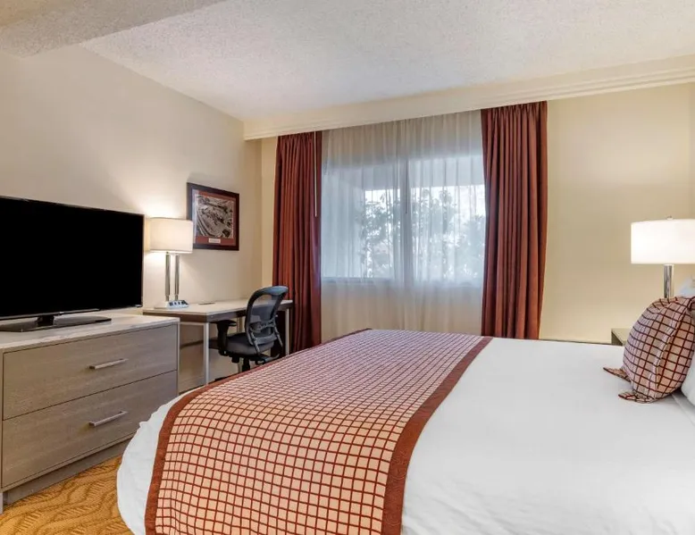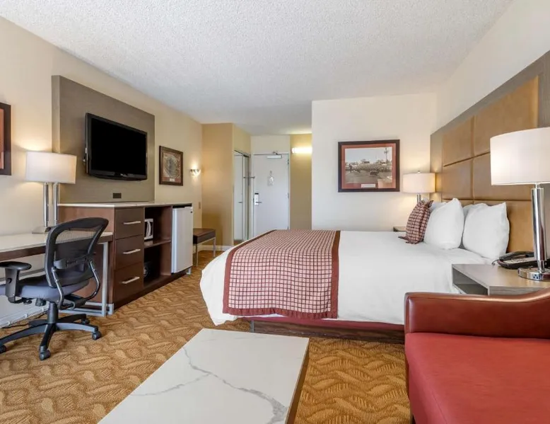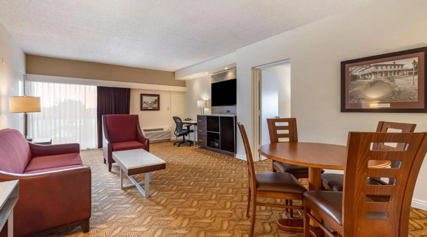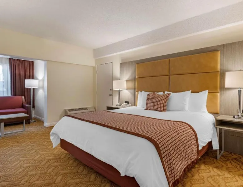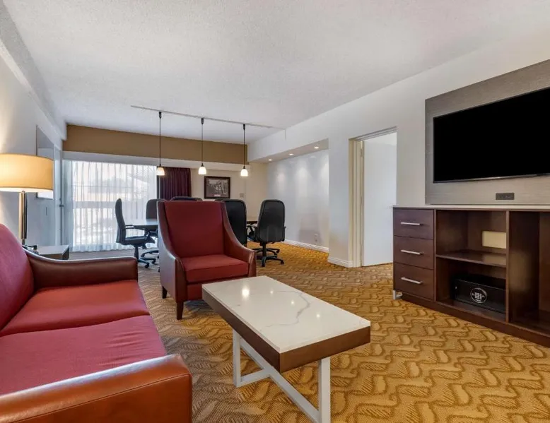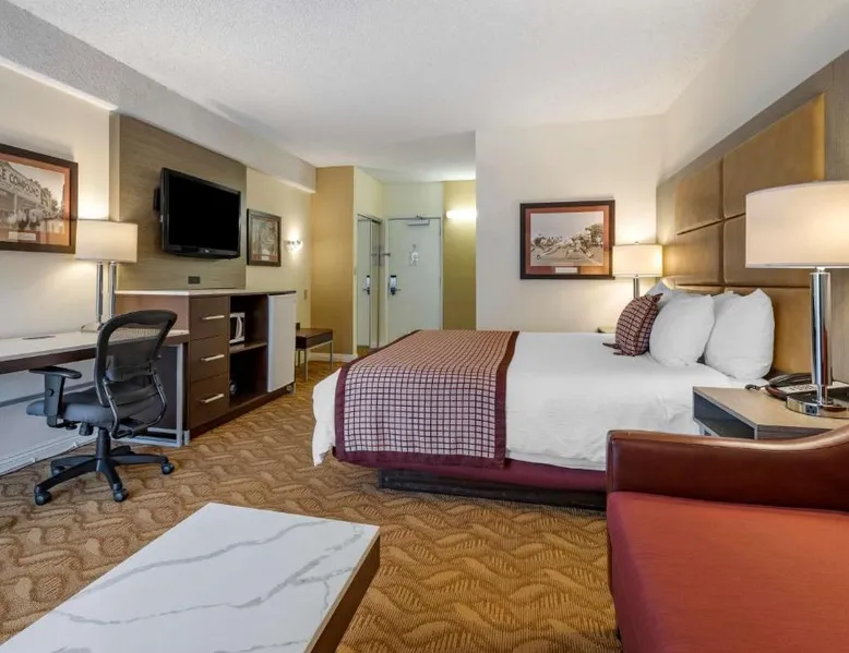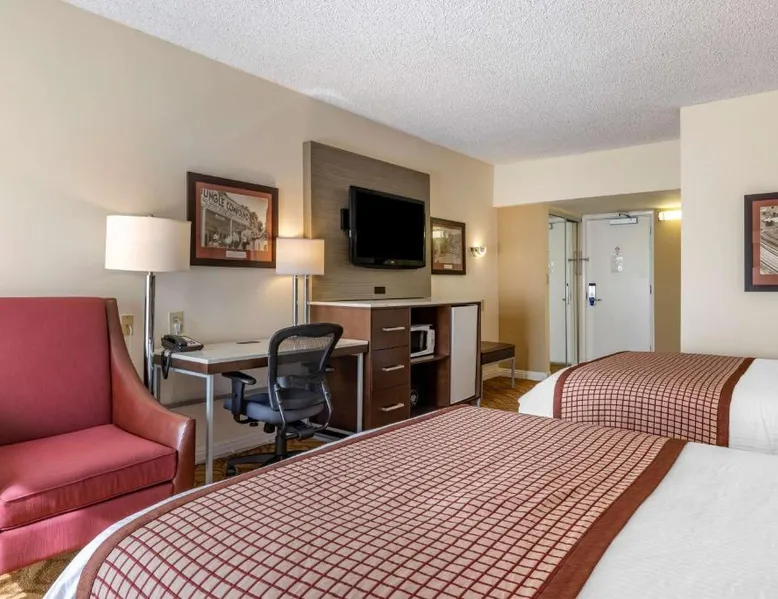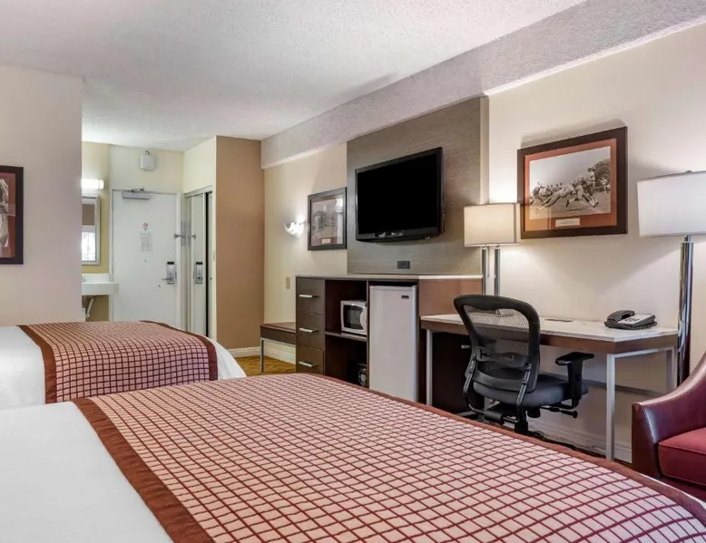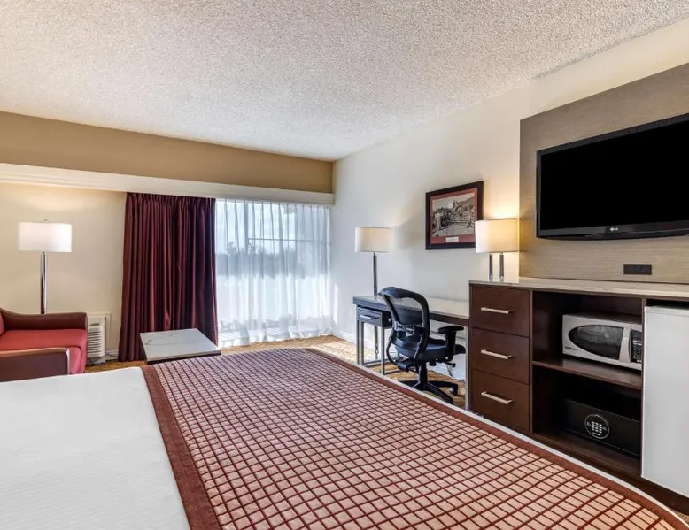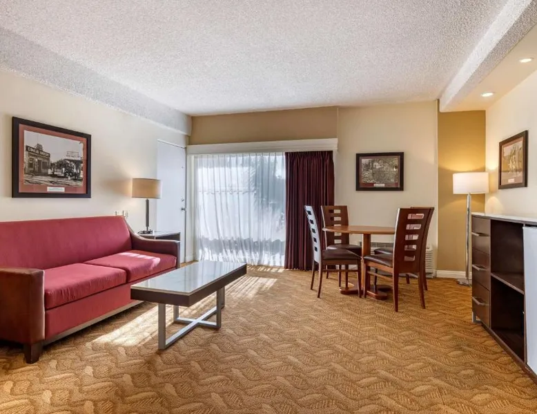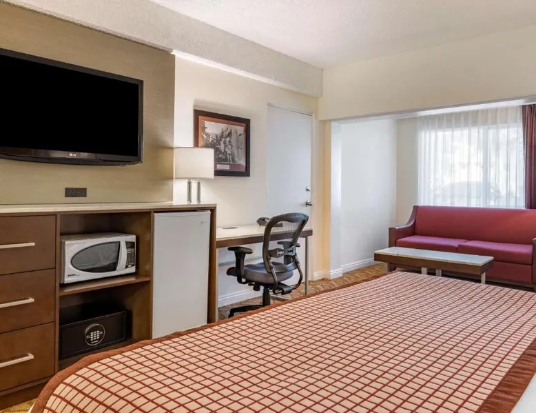Located at the base of the Santa Monica Mountains, this California hotel offers an outdoor pool and rooms with balconies. An on-site restaurant is also available to guests. Standard room amenities include a refrigerator, cable TV and a DVD player with free movie rentals. Thousand Oaks Best Western also provides a work desk and select rooms offer a seating area. Best Western Thousand Oaks Inn has a business center on site and provides free access to a nearby gym. Guests can relax in the hotel’s library or in the garden courtyard. Open for breakfast, lunch and dinner, Camboni Italian Restaurant & Bar is located at this hotel. Ronald Reagan Presidential Library and Camarillo Premium Outlets Mall are 15 minutes' drive from this hotel. Leo Carillo State Beach is within 30 minutes’ drive away. This quadruple room is air-conditioned and has a flat-screen TV with cable channels, a tea and coffee maker and heating. The unit has 2 beds.