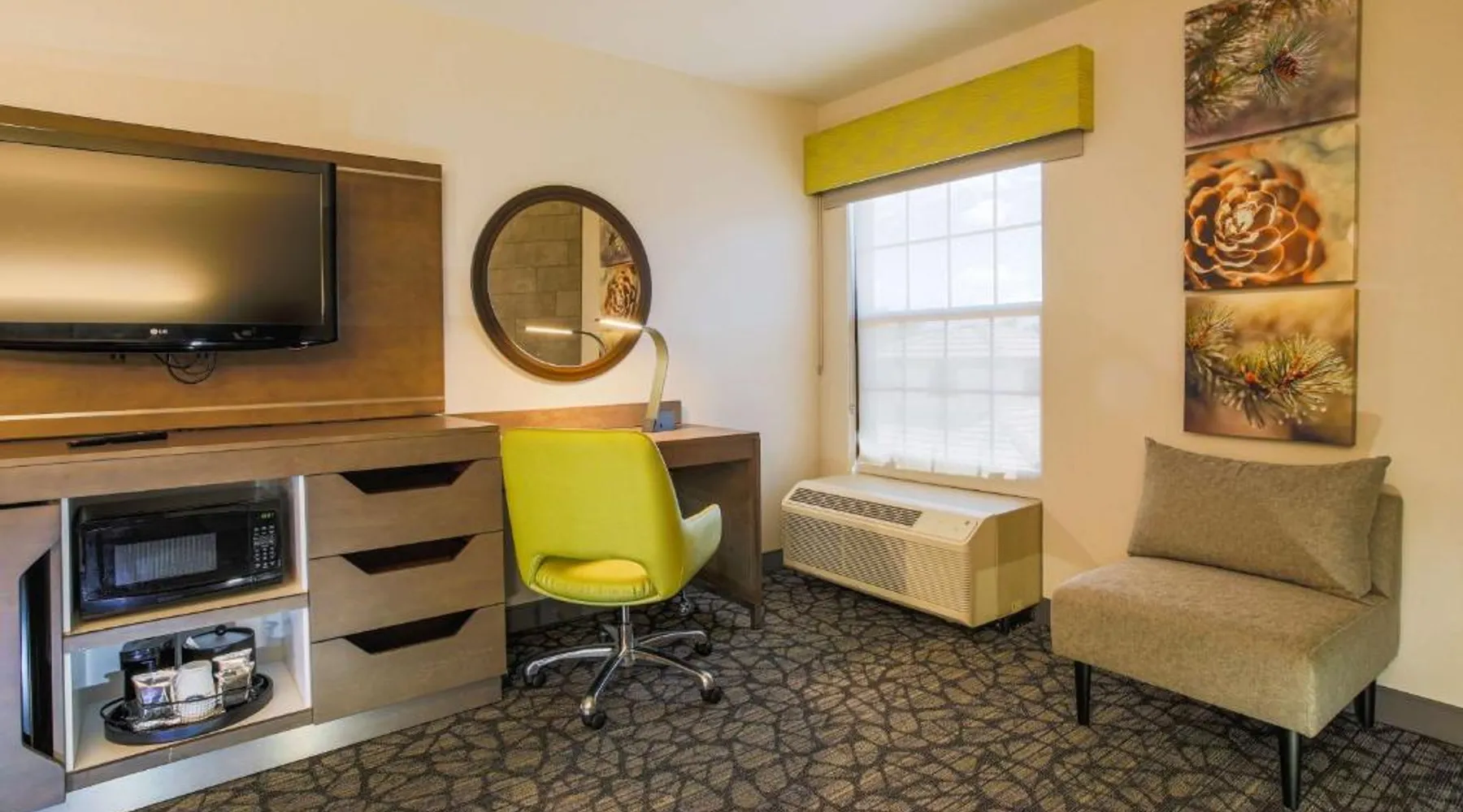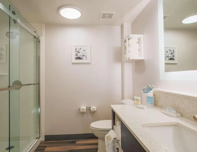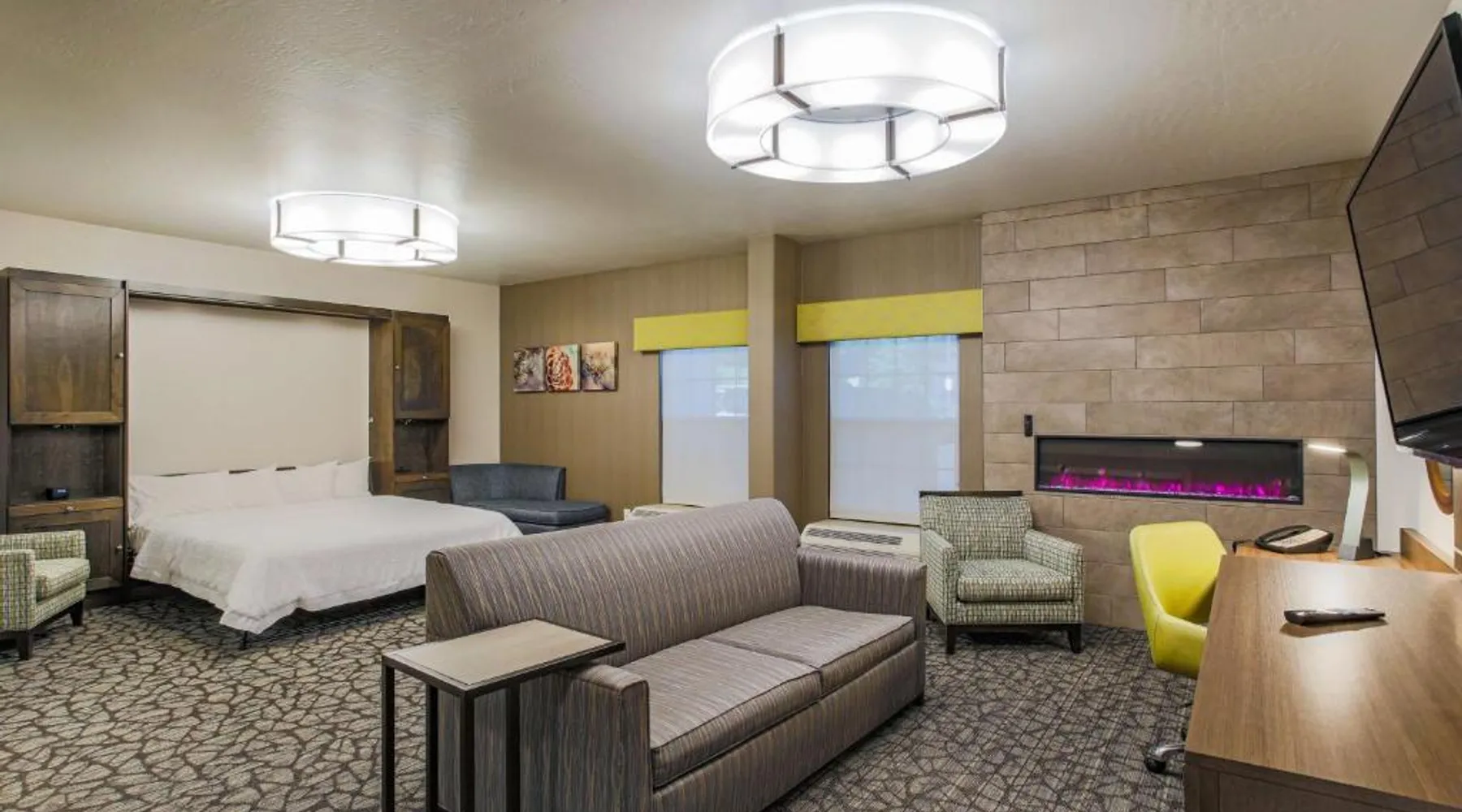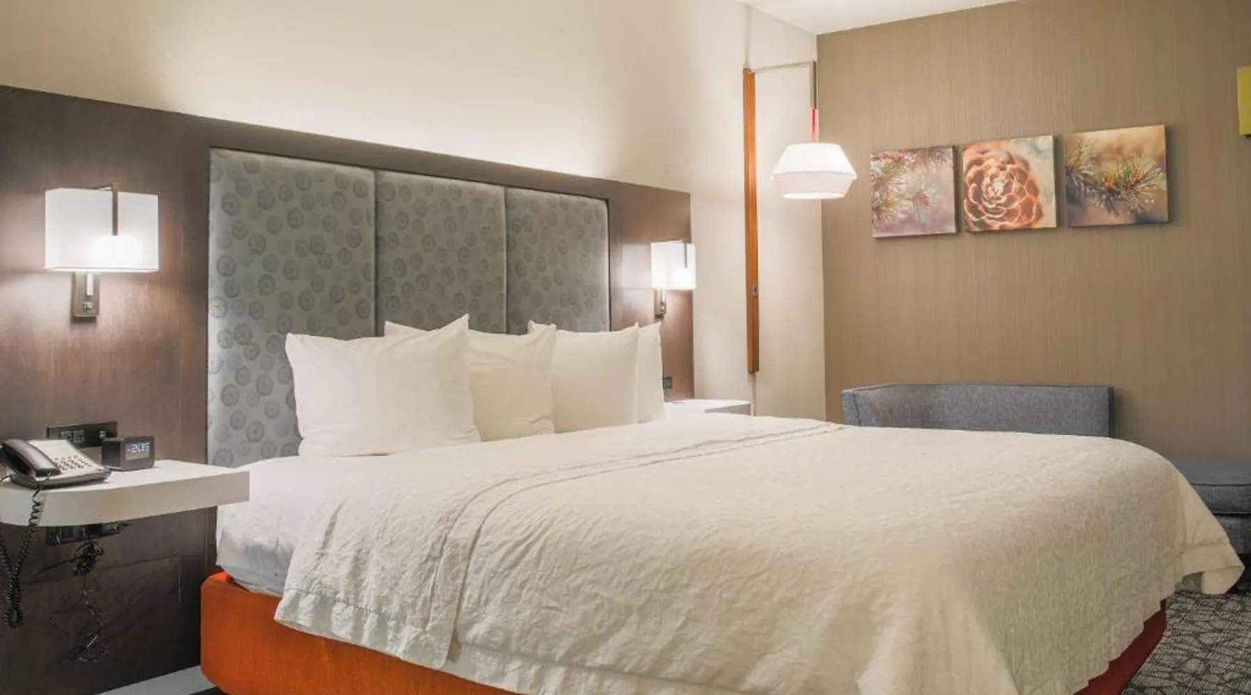 Minutes from Buckey Casino and historic downtown Prescott, this Arizona hotel provides a free daily hot breakfast as well as spacious guest rooms featuring signature Cloud Nine beds. Each room at Hampton Inn Prescottincludes a flat-screen TV with satellite channels, a microwave and a small refrigerator. A private bathroom with a hairdryer is also included. On-site at the Hampton Inn Prescott, guests can work out in the fitness center or relax in the indoor pool and hot tub. The hotel also provides on-site laundry facilities. Popular attractions, including Montezuma Castle and Tuzigoot National Monument are within driving distance of the Prescott Hampton Inn. Prescott Gateway Mall along with the Phippen Museum of Art is also easily accessible. Offering a a flat-screen cable TV with satellite channels, this room also provides an private bathroom. Tea and coffee-making facilities are provided.