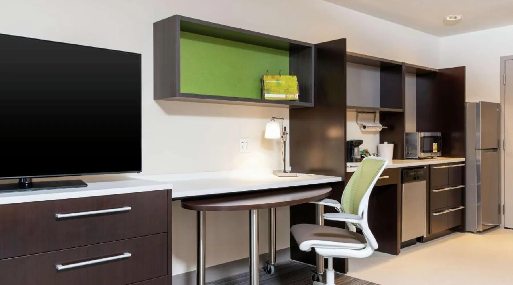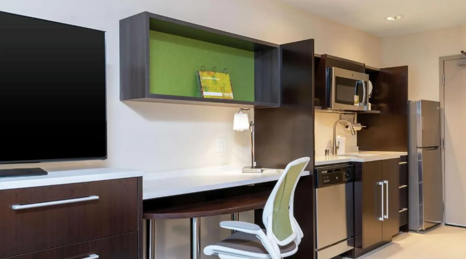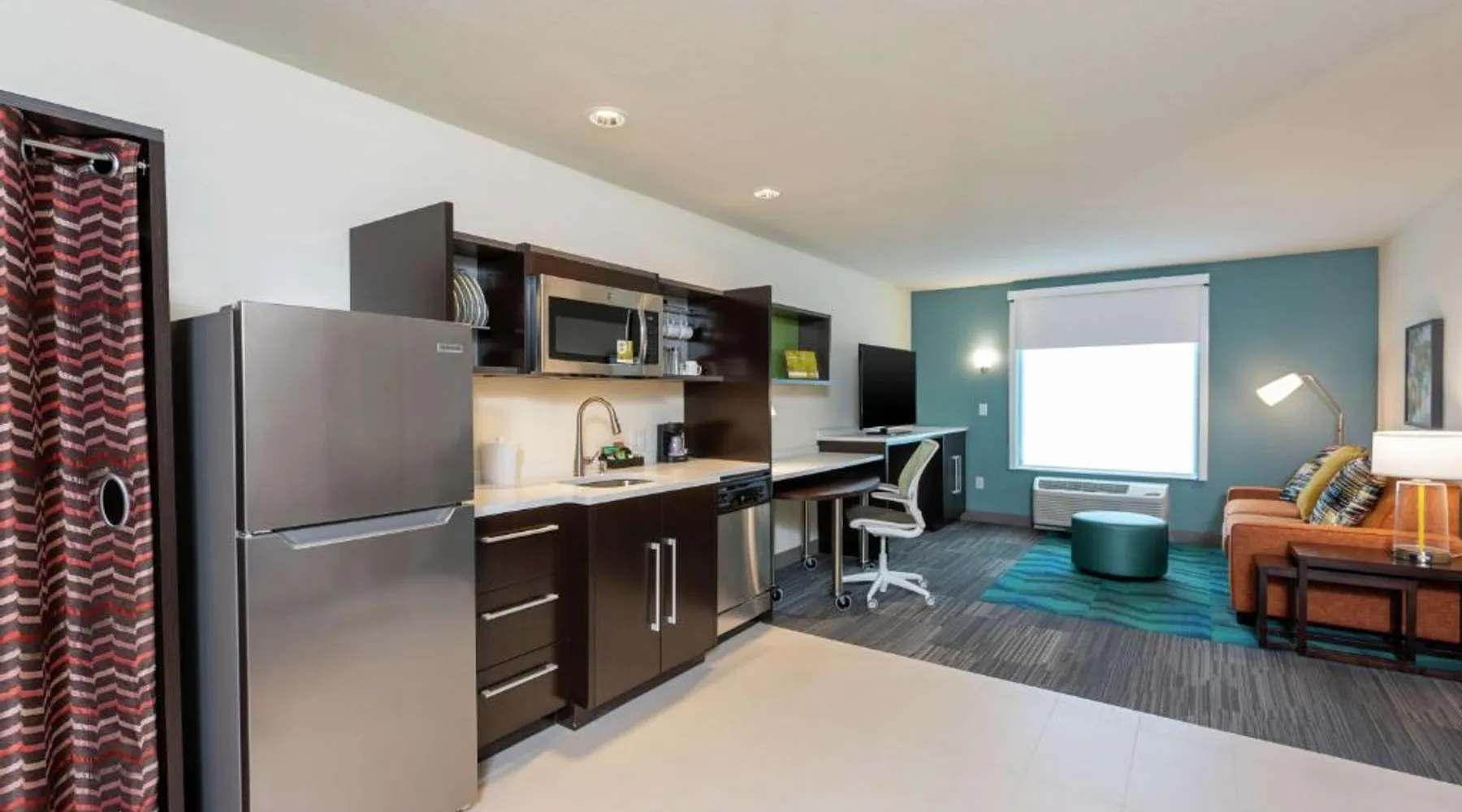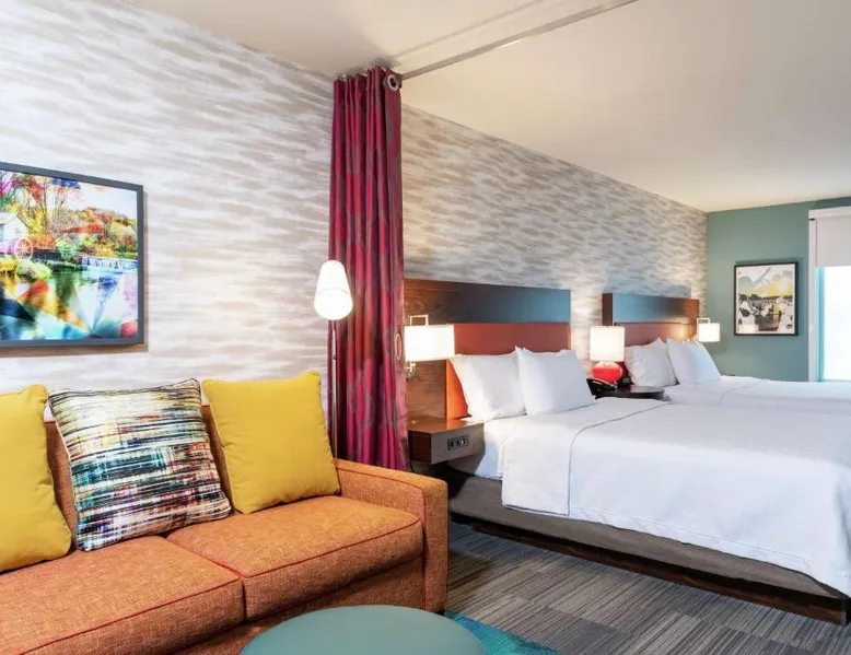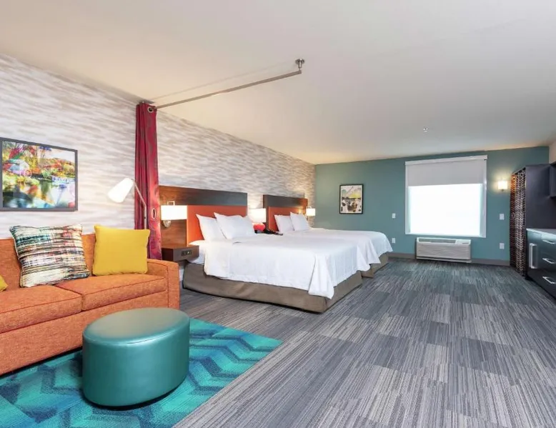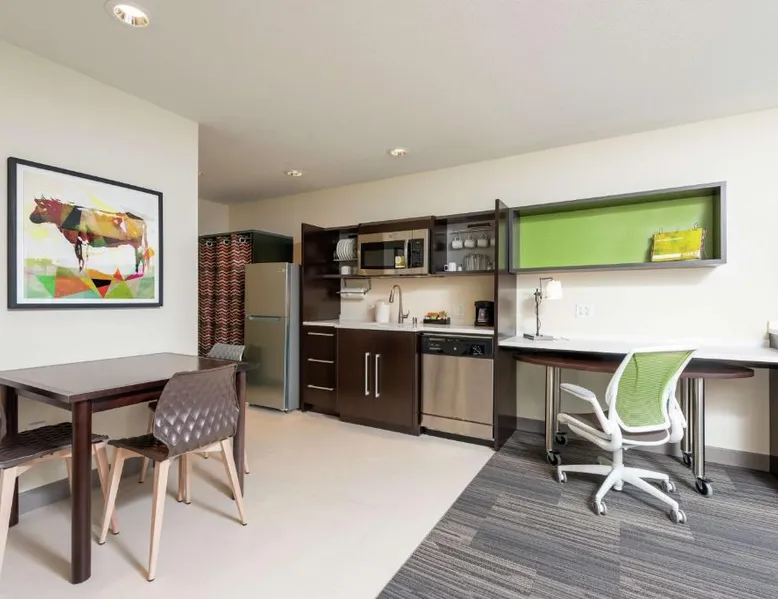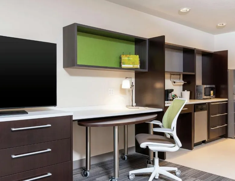 Comfortable Accommodations: Home2 Suites By Hilton Appleton, Wi in Appleton offers family rooms with air-conditioning, free WiFi, and amenities such as a sofa bed, refrigerator, and microwave. Each room includes a kitchen with a dishwasher, toaster, and kitchenware. Leisure Facilities: Guests can enjoy a saltwater and indoor swimming pool, outdoor fireplace, fitness room, and outdoor seating area. Additional amenities include a minimarket, business area, and barbecue facilities. Dining Options: A buffet breakfast is served with fresh pastries and fruits. The hotel also provides free on-site parking and a 24-hour front desk. Location and Attractions: Located 2.5 mi from Outagamie County Regional Airport, the hotel is near Fox Cities Stadium (2.4 mi), The History Museum at the Castle (4.3 mi), and Lawrence University (5 mi). Other attractions include EAA AirVenture Museum (23 mi) and National Railroad Museum (31 mi). The studio features a seating area, air conditioning and a tea and coffee maker. The unit has 1 bed.