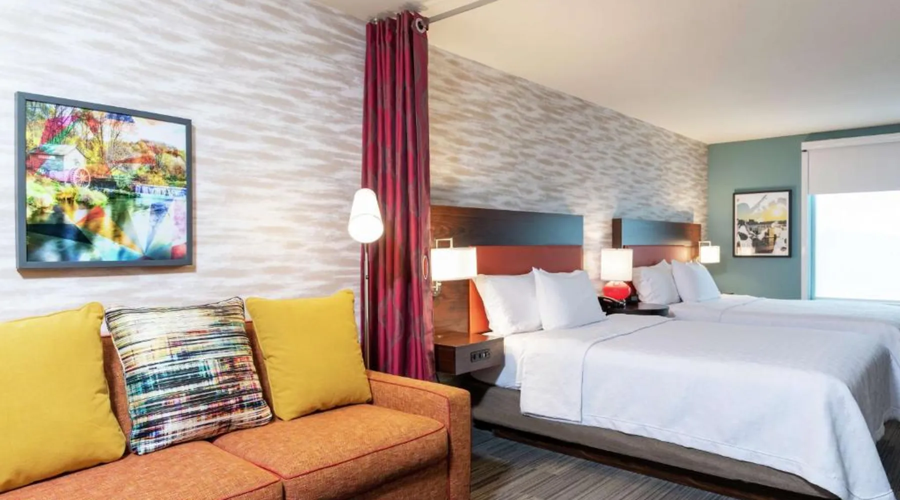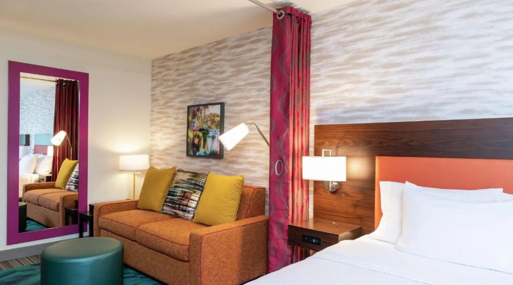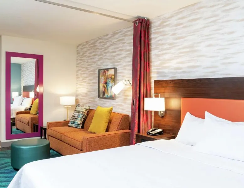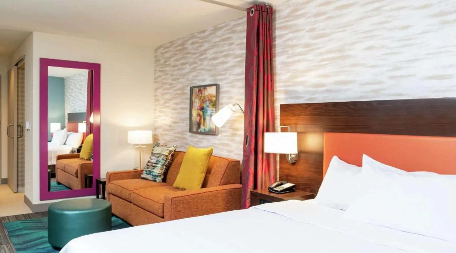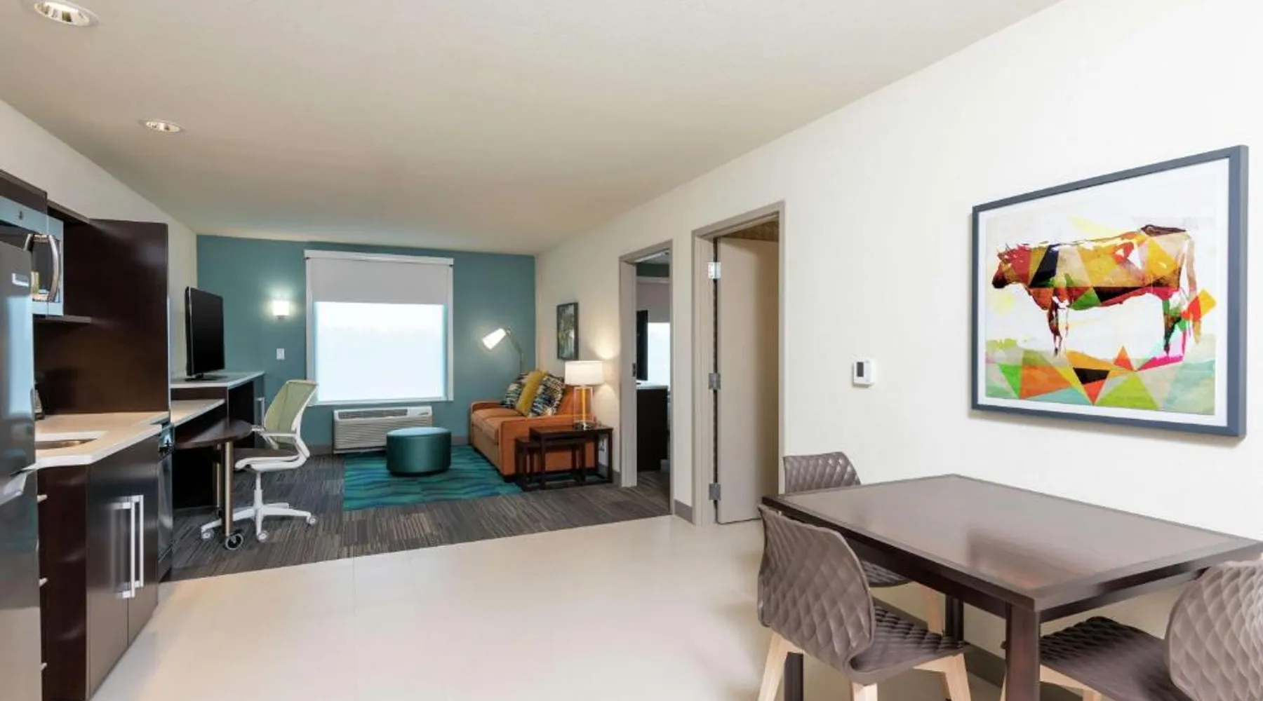 Comfortable Accommodations: Home2 Suites By Hilton Appleton, Wi in Appleton offers family rooms with air-conditioning, free WiFi, and amenities such as a sofa bed, refrigerator, and microwave. Each room includes a kitchen with a dishwasher, toaster, and kitchenware. Leisure Facilities: Guests can enjoy a saltwater and indoor swimming pool, outdoor fireplace, fitness room, and outdoor seating area. Additional amenities include a minimarket, business area, and barbecue facilities. Dining Options: A buffet breakfast is served with fresh pastries and fruits. The hotel also provides free on-site parking and a 24-hour front desk. Location and Attractions: Located 2.5 mi from Outagamie County Regional Airport, the hotel is near Fox Cities Stadium (2.4 mi), The History Museum at the Castle (4.3 mi), and Lawrence University (5 mi). Other attractions include EAA AirVenture Museum (23 mi) and National Railroad Museum (31 mi). The studio features a seating area, air conditioning and a tea and coffee maker. The unit has 1 bed.