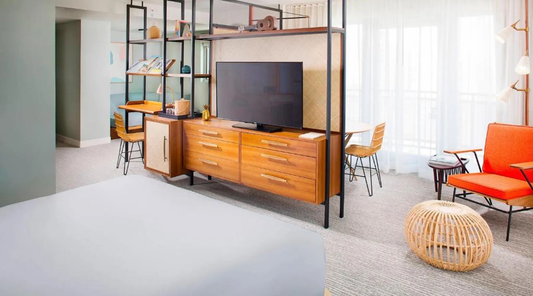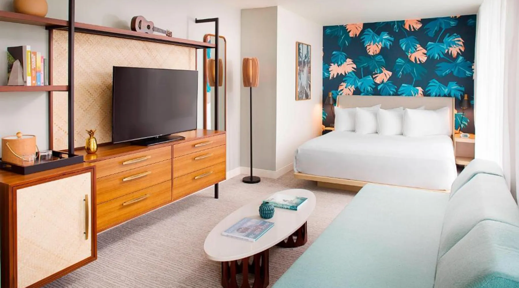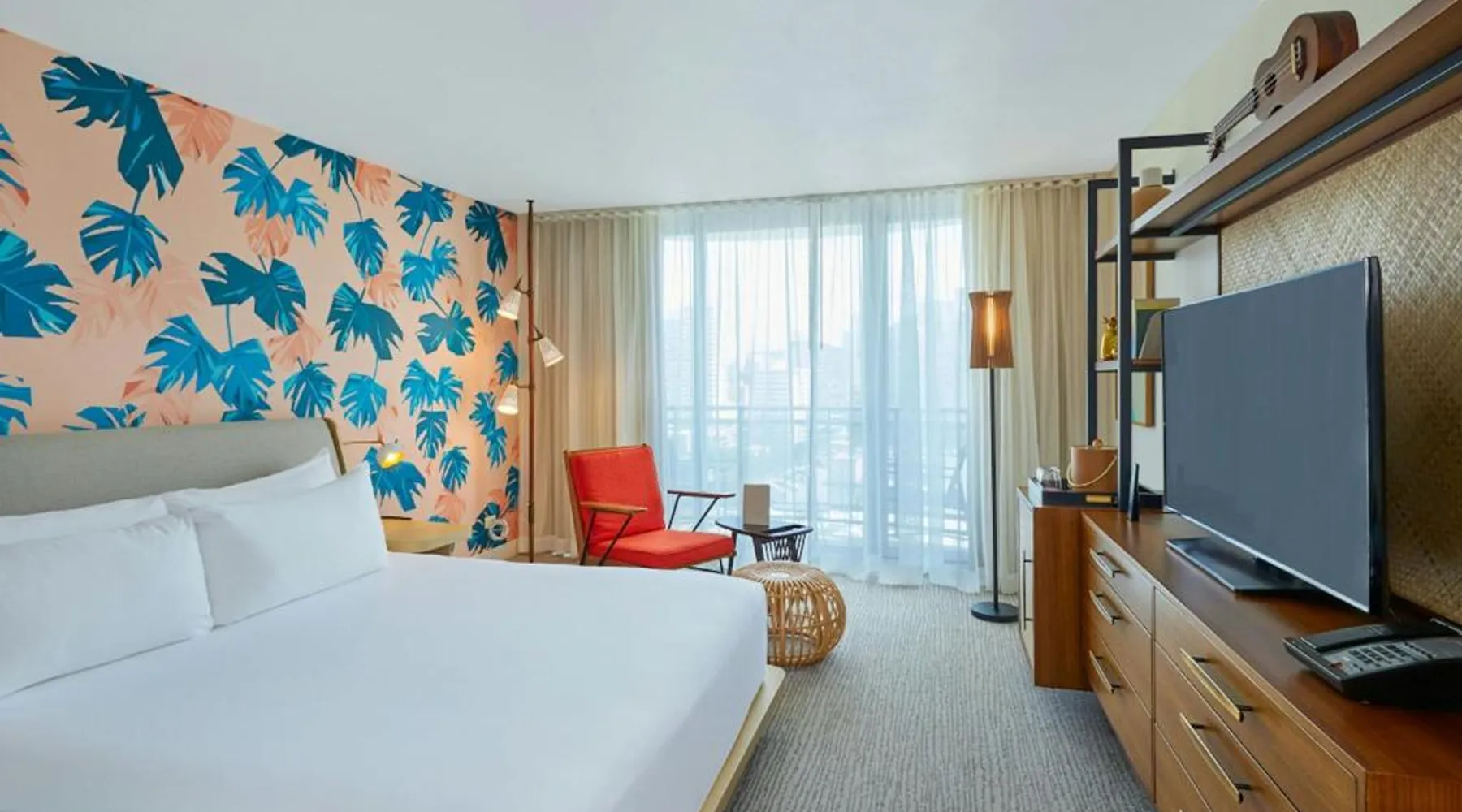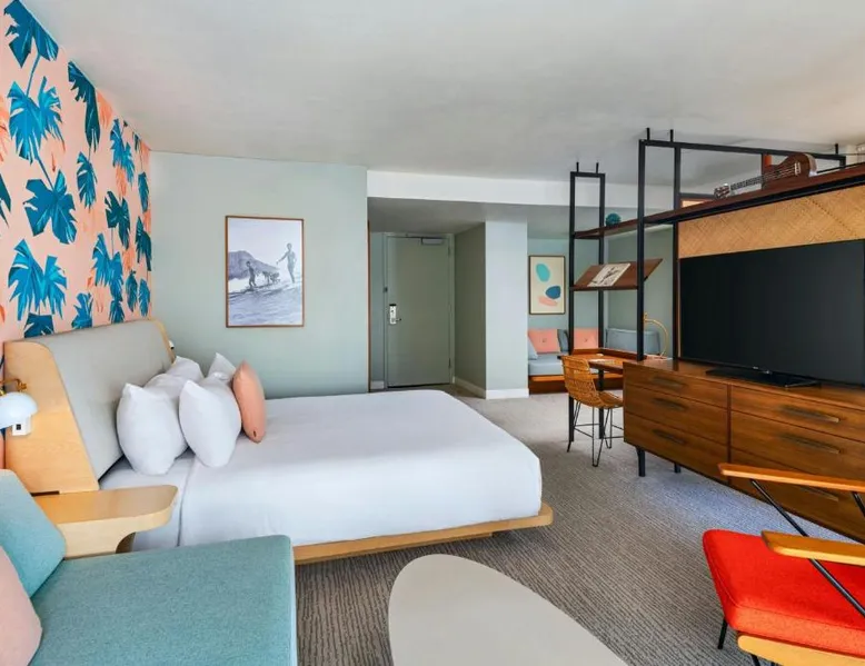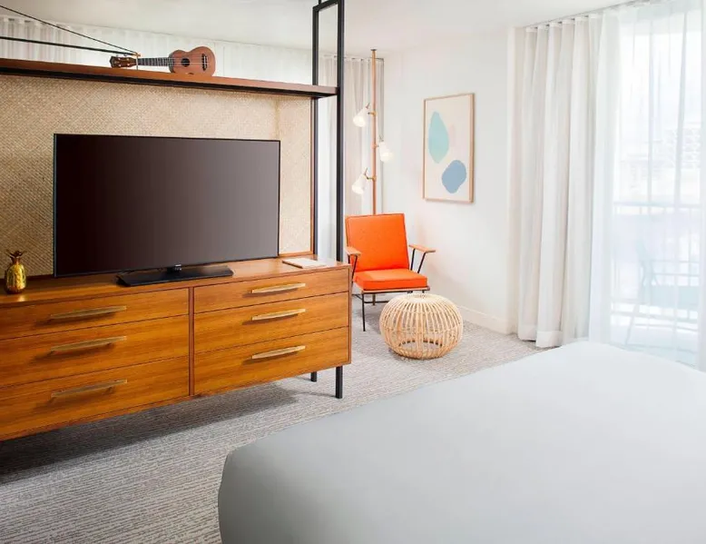 Located within 5 minutes' walk of Waikiki Beach and the Royal Hawaiian Center, The Laylow Waikiki, Autograph Collection is a mid-century modern hotel located 3 mi from Diamond Head Crater Hike. Guests can also enjoy a welcome amenity. The rooms include a smart TV and WiFi. The Laylow Waikiki, Autograph Collection provides guests with a swimming pool, a restaurant, and an activity desk. The property offers nightly entertainment and complimentary shaved Hawaiian ice poolside. Guests are also ideally placed within walking distance to many points of interest. Beautiful beaches and endless recreational activities as well as the International Market Place, filled with shops, cafes and restaurants, are seconds away. Honolulu International Airport is only 20 minutes' drive from The Laylow Waikiki, Autograph Collection The air-conditioned suite has 1 bedroom and 1 bathroom with a shower and a hairdryer. This wheelchair accessible suite features a tea and coffee maker, a seating area with a flat-screen TV and a roll-in shower. The unit has 1 bed.