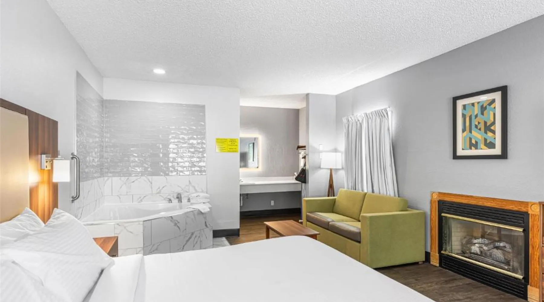 Located in the heart of a German alpine-inspired, this motel features a continental breakfast and heated outdoor pool. The Chattahoochee River is 10 minutes’ walk away. A small refrigerator, microwave, and cable TV are included in all rooms at Best Western. Select rooms include a spa bath as well. Free property-wide WiFi allows guests to stay in touch with friends and family between hikes through nearby Unicoi State Park 3 miles away. Free on-site parking and vending machines are available. Chattahoochee National Forest and Yonah Mountain, also known as Bear Mountain, are within 8 miles from the property. Yonah Mountain Vineyards are 4 miles away. This double room features a fireplace. The unit has 1 bed.