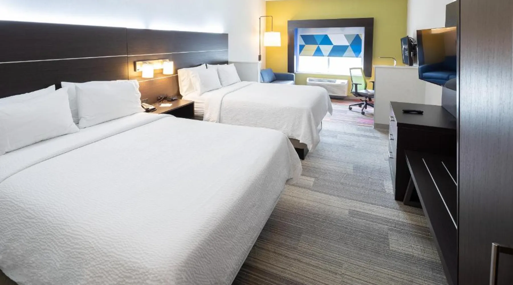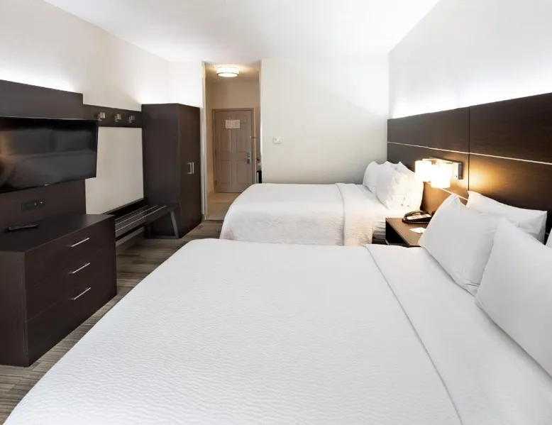 Comfortable Accommodations: Holiday Inn Express & Suites Chicago West - St Charles by IHG in Saint Charles offers rooms with air-conditioning, work desks, and free WiFi. Each room includes a TV, wardrobe, and bath with shower facilities. Facilities and Services: Guests can enjoy a fitness center, indoor swimming pool, and lounge. Additional amenities include a minimarket, 24-hour front desk, business area, and free on-site private parking. Convenient Location: Located 24 mi from Chicago O'Hare International Airport, the hotel is near attractions such as Batavia Depot Museum (6.8 mi) and Brookfield Zoo (28 mi). Guests appreciate the room cleanliness, convenient location, and comfortable rooms. The spacious air-conditioned suite features a flat-screen TV, a wardrobe, tumble dryer and a carpeted floor. The unit has 2 beds.