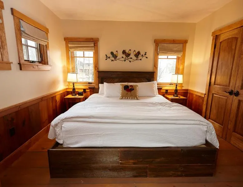 Comfortable Accommodations: Seesaw's Lodge in Peru offers family rooms with private bathrooms, balconies, and garden or mountain views. Each room includes air-conditioning, a kitchenette, and free WiFi. Dining and Leisure: The family-friendly restaurant serves American and international cuisines with vegetarian, vegan, gluten-free, and dairy-free options. Guests can relax on the sun terrace, enjoy the garden, or unwind in the hot tub. Additional amenities include an outdoor fireplace, games room, and bar. Activities and Location: Located 33 mi from Rutland State Airport, the inn is near Stratton Mountain (11 mi), Mount Equinox (8.1 mi), and Emerald Lake State Park (9.9 mi). Activities available include fishing, skiing, canoeing, hiking, and cycling. Highly rated by guests. Guests will have a special experience as this double room features a hot tub and a fireplace. This air-conditioned double room is consisted of of a flat-screen TV with streaming services, a private bathroom as well as a terrace with garden views. The unit has 1 bed.