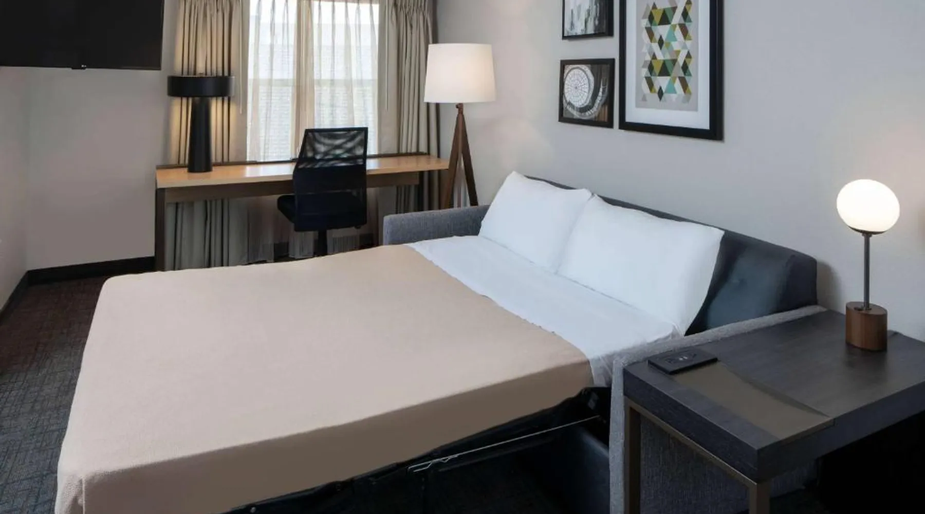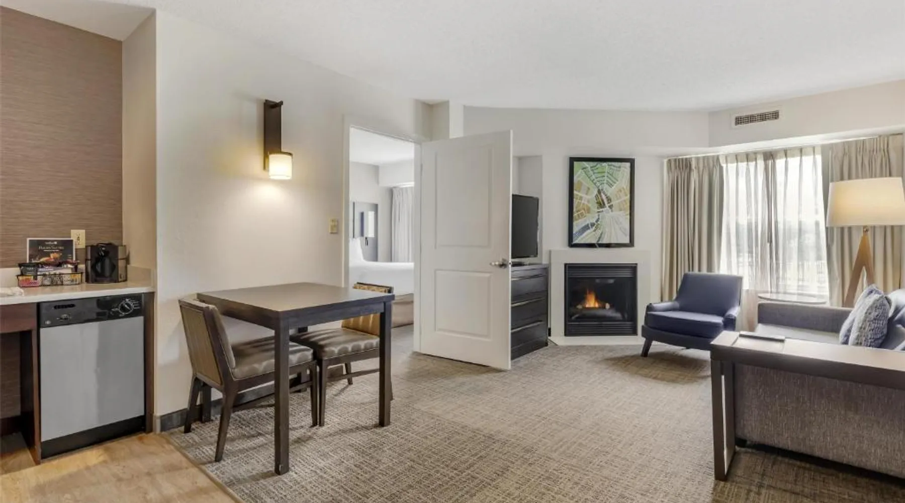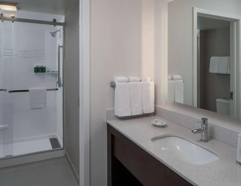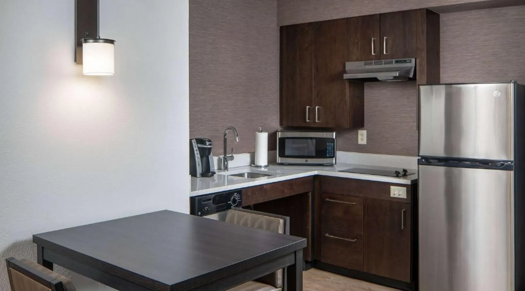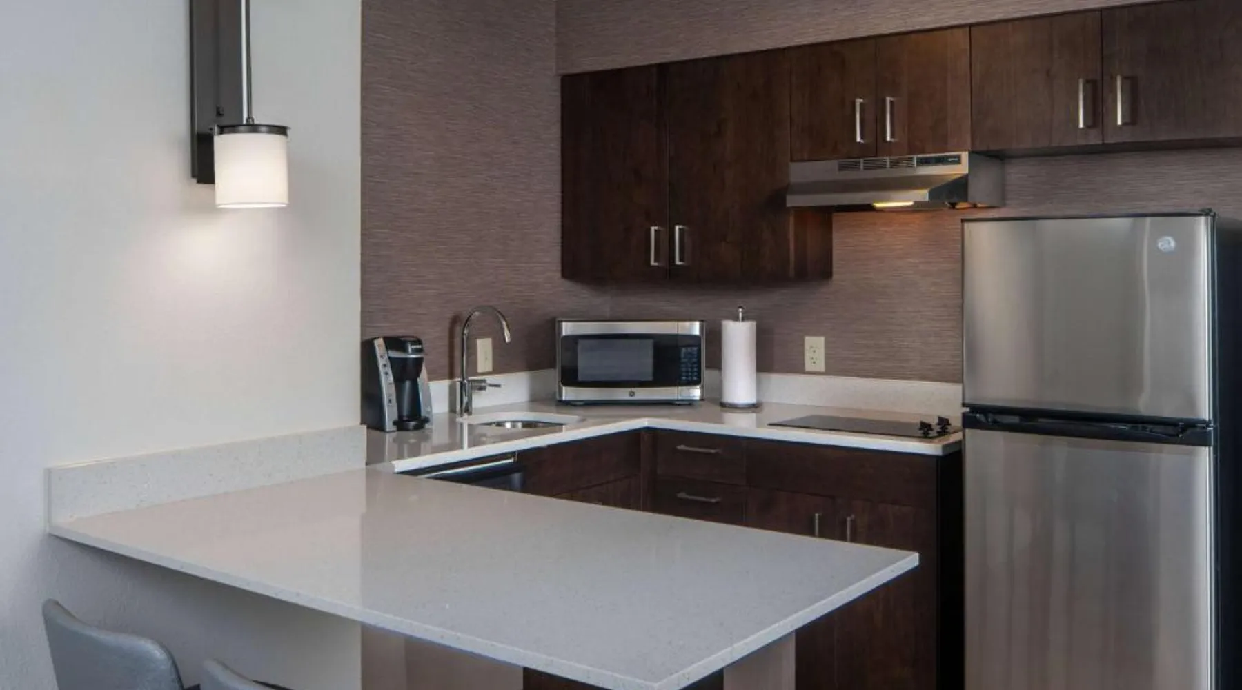 Comfortable Accommodations: Sonesta ES Suites Fairfax Fair Lakes in Fairfax offers family rooms with kitchenettes, private bathrooms, and free WiFi. Each room includes air-conditioning, a refrigerator, and a TV. Exceptional Facilities: Guests can enjoy a fitness center, sun terrace, tennis court, and outdoor fireplace. Additional amenities include a lounge, outdoor seating area, and picnic spots. Delicious Breakfast: A buffet breakfast is served daily, featuring warm dishes, fresh pastries, pancakes, cheese, fruits, and juice. Convenient Location: Located 8.1 mi from Washington Dulles International Airport, the hotel is near attractions such as the Air Force Memorial (19 mi) and Lincoln Memorial (21 mi). Guests appreciate the convenient location and room cleanliness. The triple room's kitchen, which has a refrigerator and a tea and coffee maker, is available for cooking and storing food. The unit has 2 beds.