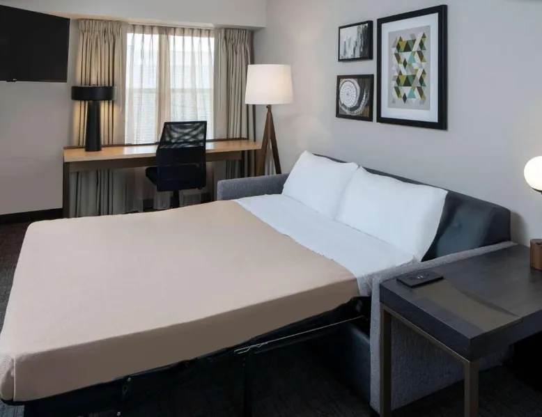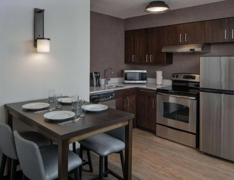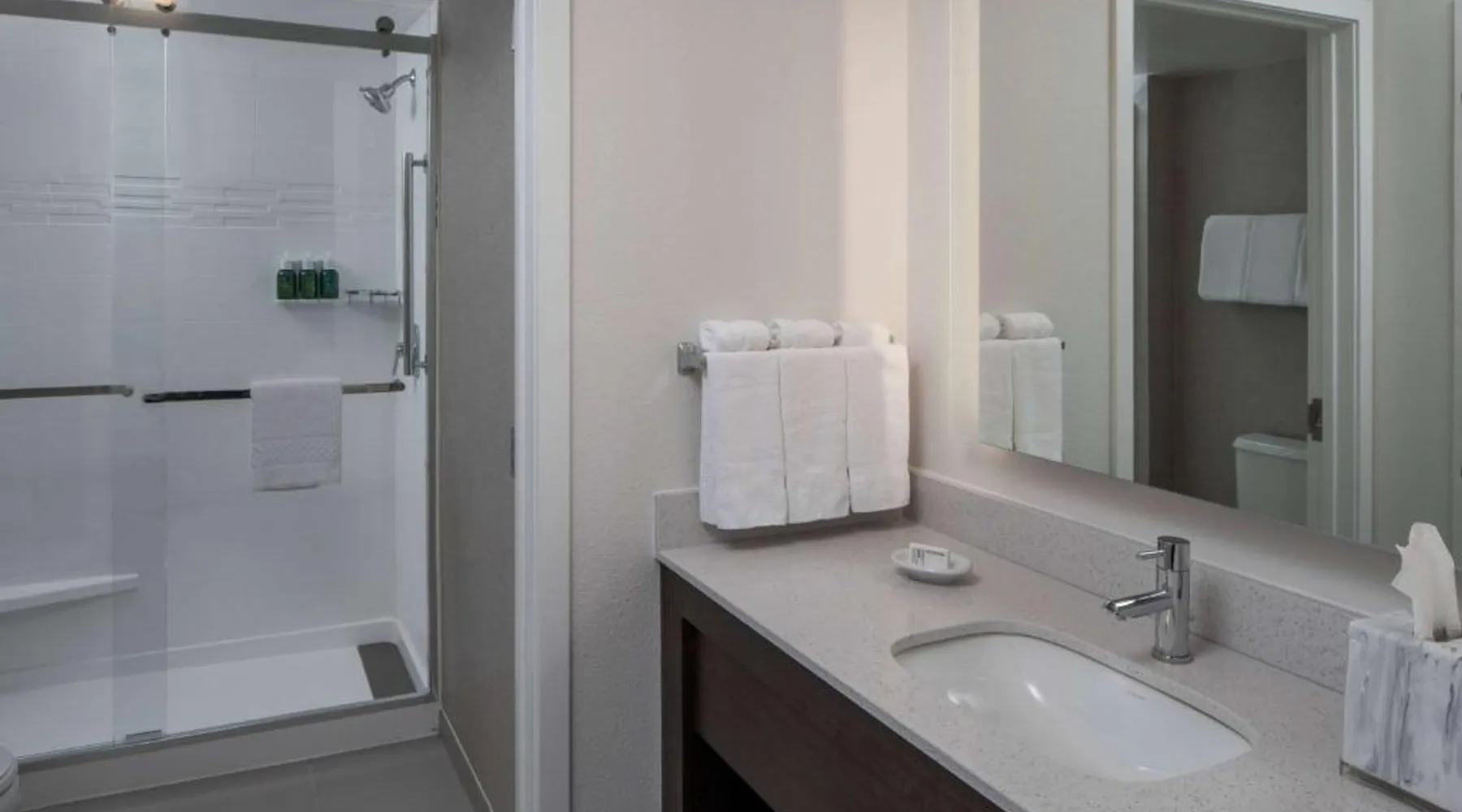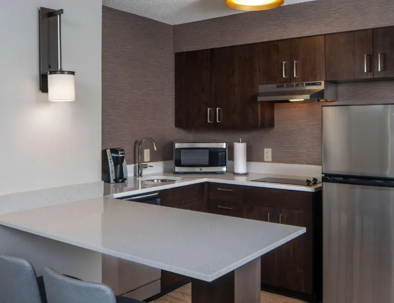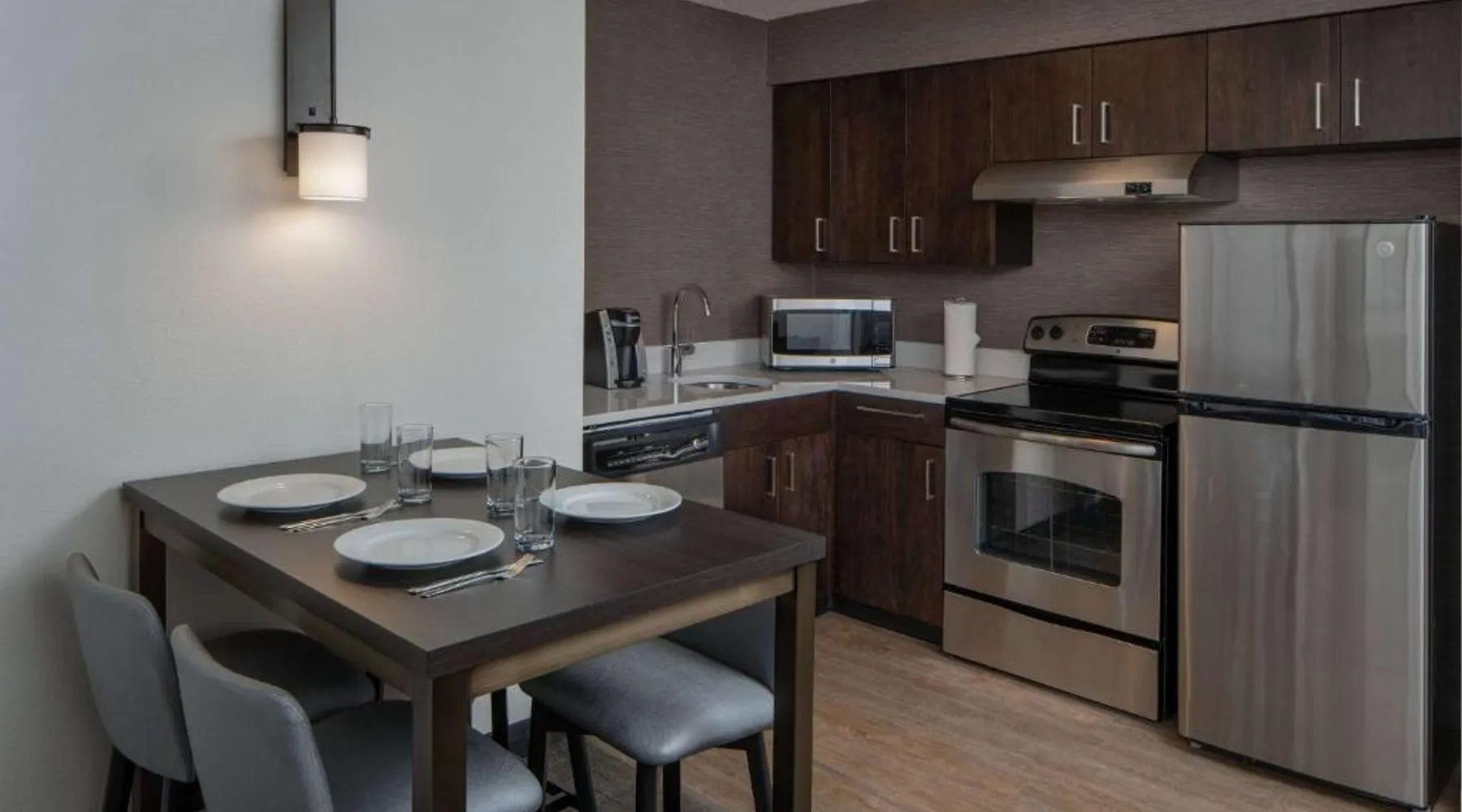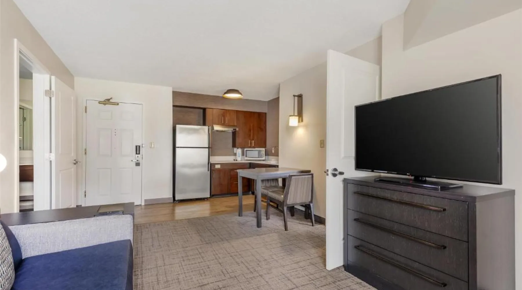 Comfortable Accommodations: Sonesta ES Suites Fairfax Fair Lakes in Fairfax offers family rooms with kitchenettes, private bathrooms, and free WiFi. Each room includes air-conditioning, a refrigerator, and a TV. Exceptional Facilities: Guests can enjoy a fitness center, sun terrace, tennis court, and outdoor fireplace. Additional amenities include a lounge, outdoor seating area, and picnic spots. Delicious Breakfast: A buffet breakfast is served daily, featuring warm dishes, fresh pastries, pancakes, cheese, fruits, and juice. Convenient Location: Located 8.1 mi from Washington Dulles International Airport, the hotel is near attractions such as the Air Force Memorial (19 mi) and Lincoln Memorial (21 mi). Guests appreciate the convenient location and room cleanliness. The triple room's kitchen, which has a refrigerator and a tea and coffee maker, is available for cooking and storing food. The unit has 2 beds.