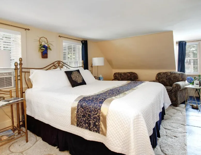 Historic Setting: Inn On Main in Yarmouth Port offers a recently renovated adults-only bed and breakfast experience within a historic building. Guests enjoy garden views and a private outdoor fireplace. Comfortable Accommodations: Rooms feature air-conditioning, private bathrooms, and modern amenities. Additional comforts include bathrobes, streaming services, and free toiletries. Delicious Breakfast: A variety of breakfast options are available, including American, full English/Irish, vegetarian, vegan, gluten-free, and kosher. Fresh dishes include warm items, juice, pancakes, cheese, and fruits. Local Attractions: Located 2.5 mi from Cape Cod Gateway Airport, the property is near Hallet's (3-minute walk) and Captain Bangs Hallet House (0.7 mi). Activities such as windsurfing, canoeing, cycling, diving, and snorkeling are available. Offering free toiletries and bathrobes, this double room includes a private bathroom with a shower and a hairdryer. This double room has air conditioning, flat-screen TV with streaming services, garden views, as well as chocolate for guests. The unit has 1 bed.