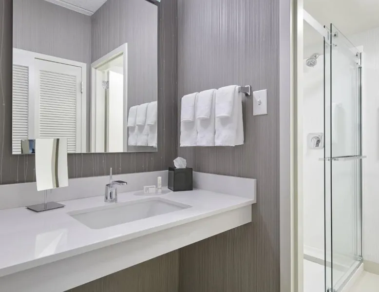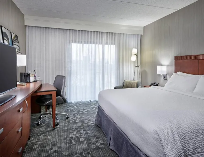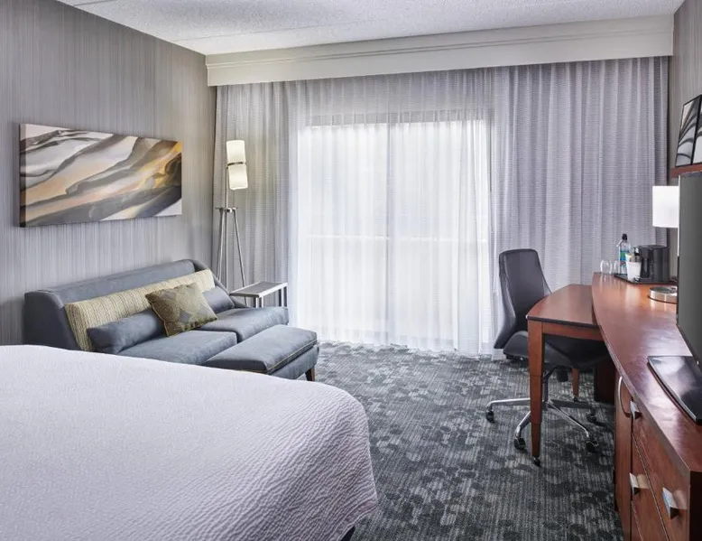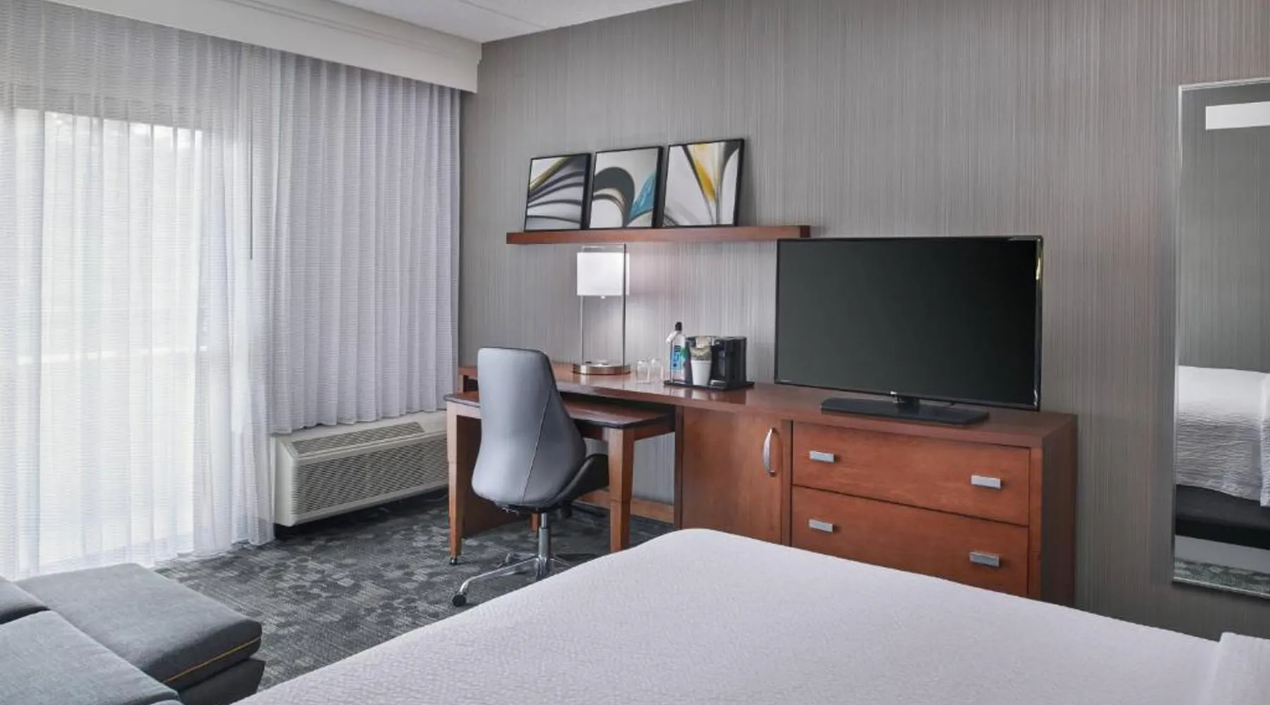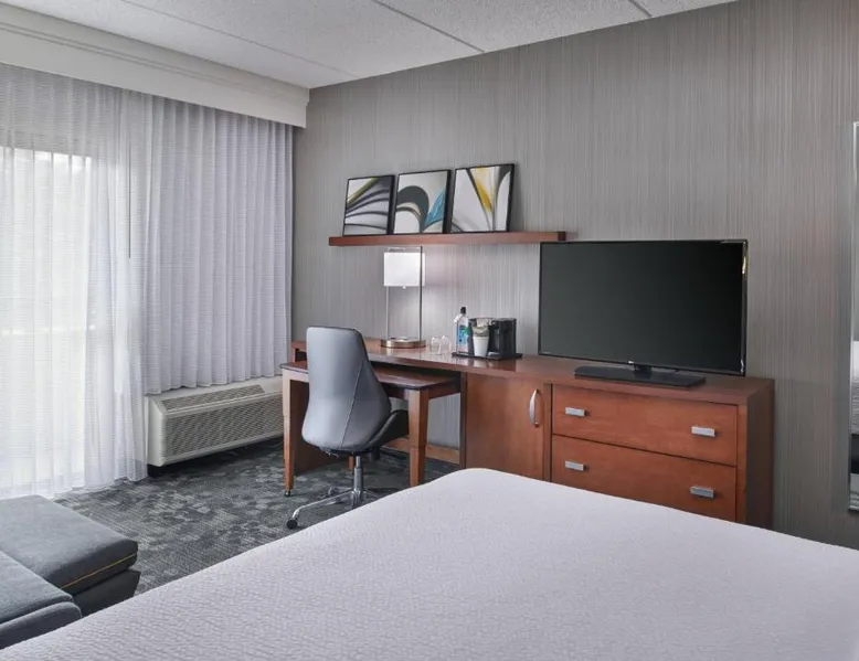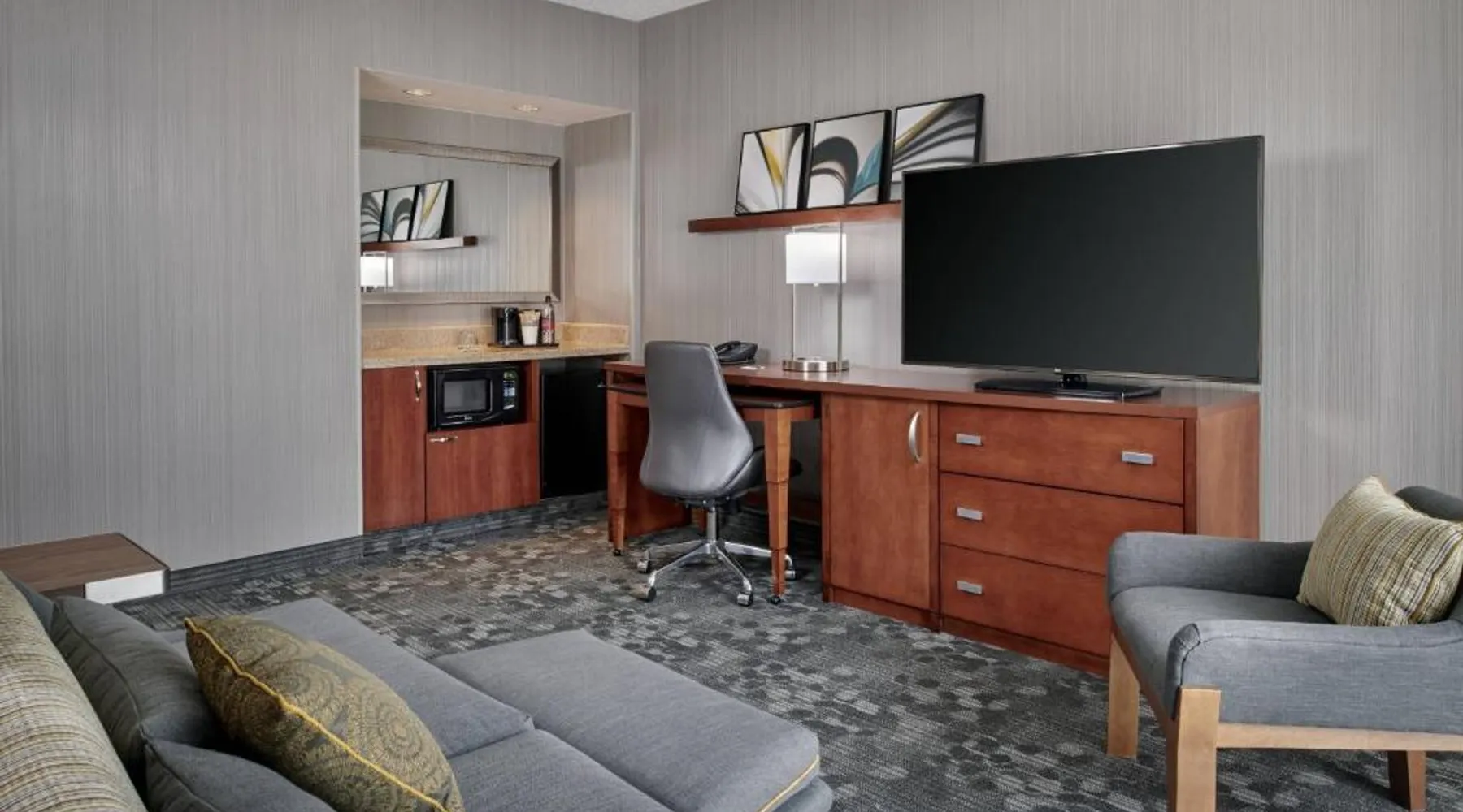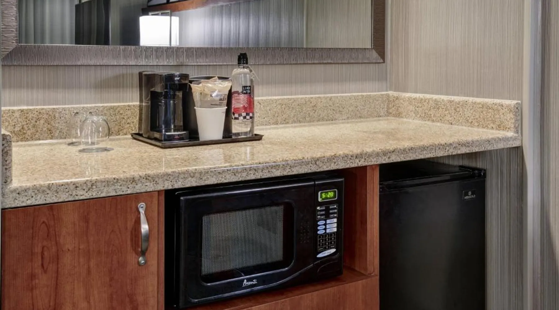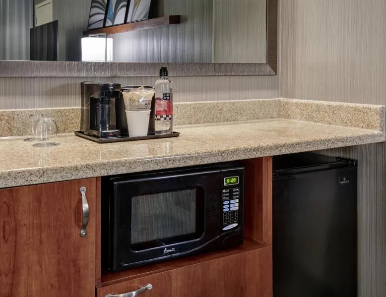 Comfortable Accommodations: Rooms feature air-conditioning, private bathrooms, tea and coffee makers, hairdryers, refrigerators, work desks, and seating areas. Guests appreciate the room cleanliness and comfort. Dining Experience: The modern, family-friendly restaurant serves American cuisine for dinner and cocktails. Free WiFi is available throughout the property. Leisure Facilities: The hotel offers an indoor swimming pool, free bicycles, and a 24-hour front desk. Additional amenities include a shuttle service and elevator. Location and Attractions: Located in Oakbrook Terrace, the hotel is 15 mi from Chicago O'Hare International Airport. Nearby attractions include the United Center (18 mi) and Willis Tower (20 mi). An ice-skating rink is also in the vicinity. Featuring cable TV and a refrigerator, this room also offers tea and coffee-making facilities.
