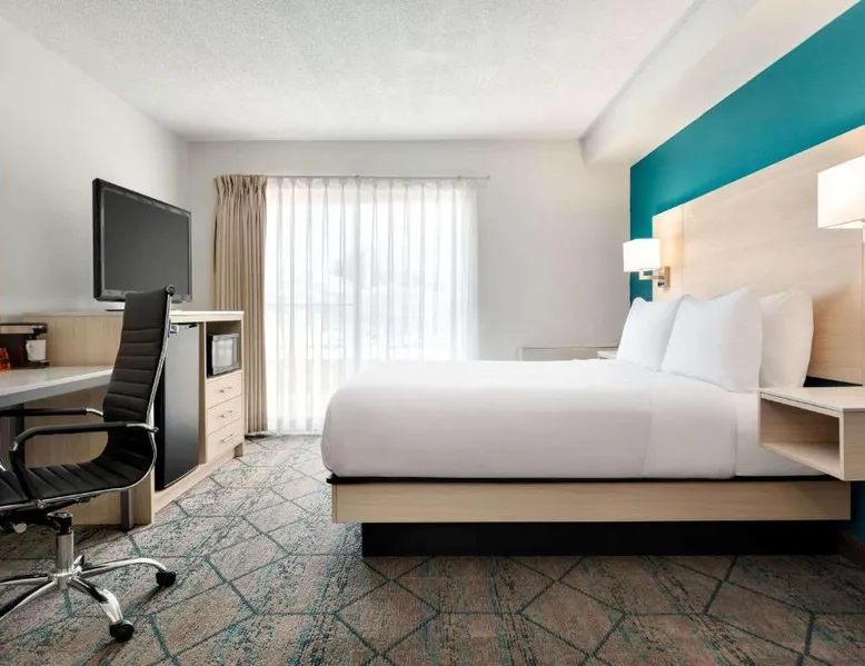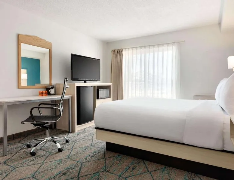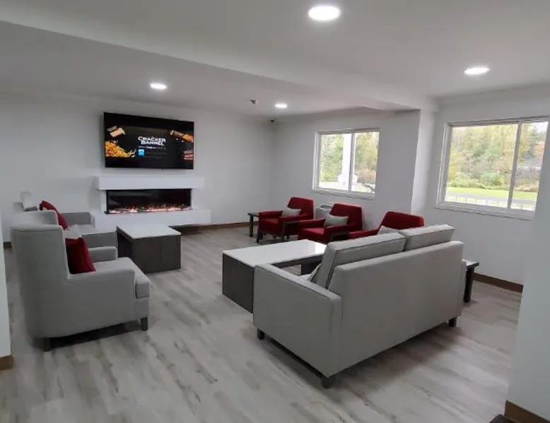 Comfortable Accommodations: Ramada by Wyndham Miramichi New Brunswick in Miramichi offers family rooms with air-conditioning, private bathrooms, and modern amenities. Each room includes a work desk, free toiletries, and a TV. Exceptional Facilities: Guests enjoy a fitness center, free WiFi, and a 24-hour front desk. Additional facilities include a elevator, coffee shop, bicycle parking, and free on-site parking. Delicious Breakfast: A variety of breakfast options are available, including continental, American, buffet, and full English/Irish. Breakfast includes juice, fresh pastries, pancakes, cheese, and fruits. Convenient Location: Located 55 mi from Bathurst Airport, the hotel provides easy access to local attractions. Guests appreciate the attentive staff, excellent service, and room cleanliness. This suite features a private bathroom and a sofa. The unit offers 3 beds.