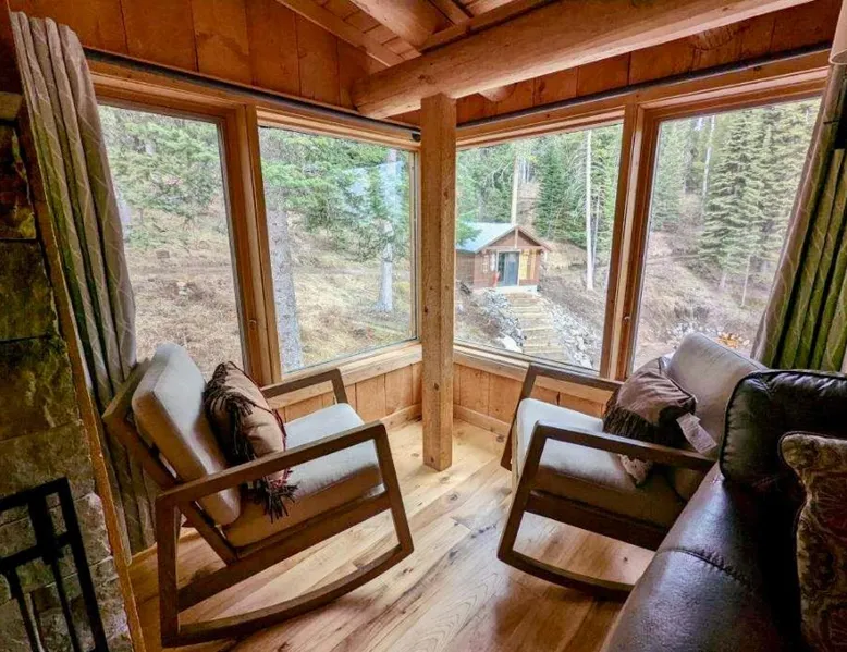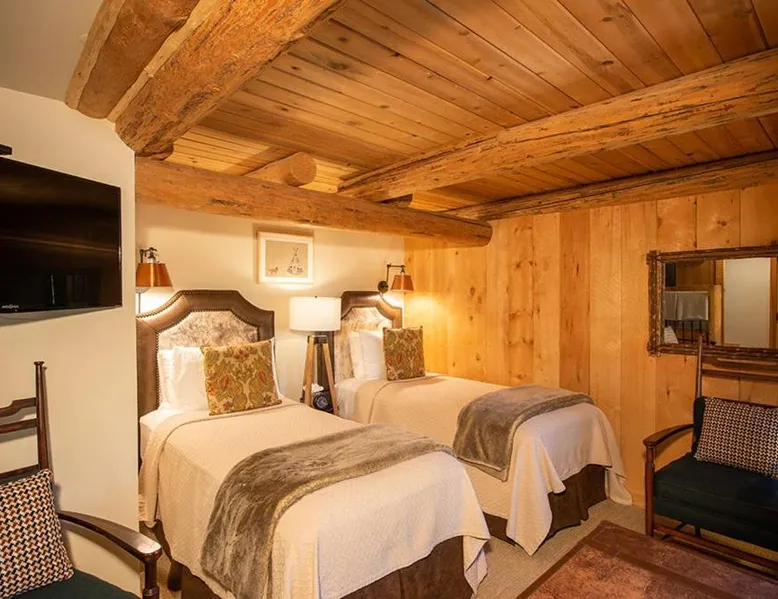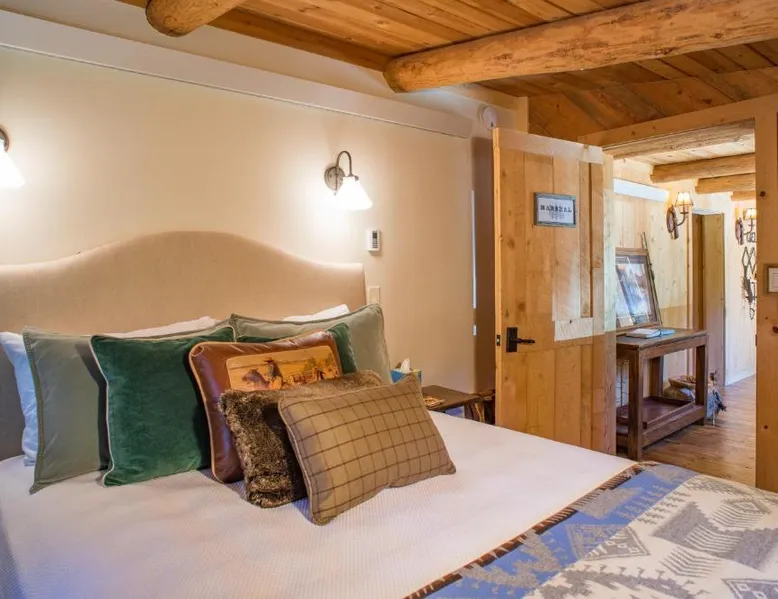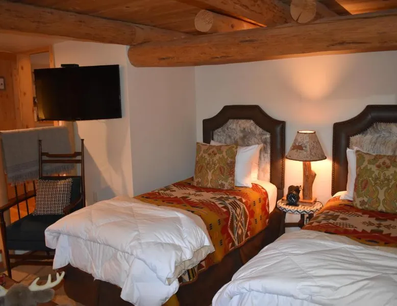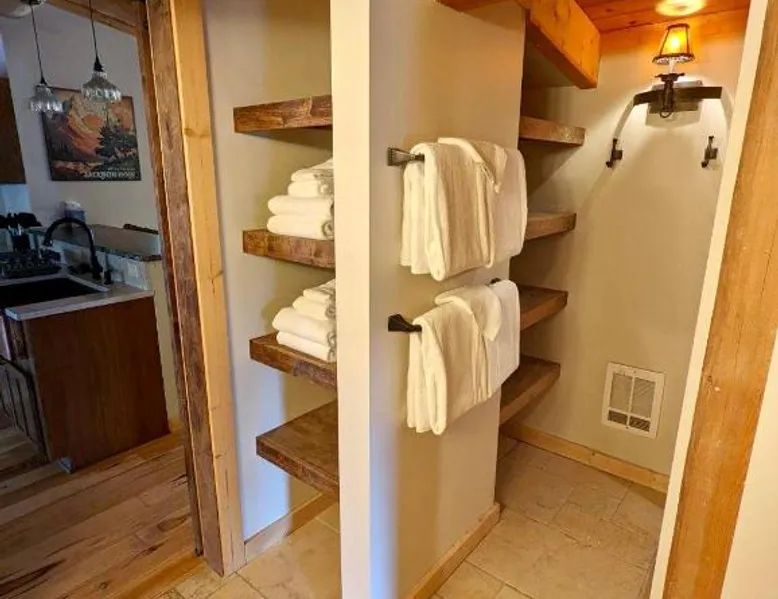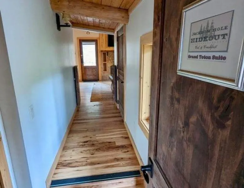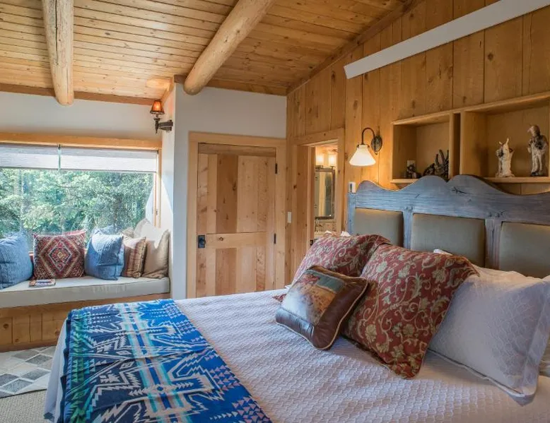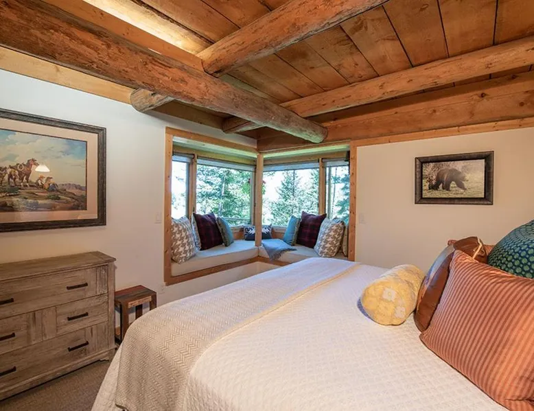 Comfortable Accommodations: Jackson Hole Hideout in Wilson offers family rooms with private bathrooms, mountain views, and modern amenities. Each room includes a kitchenette, free WiFi, and a work desk. Exceptional Facilities: Guests enjoy a sun terrace, outdoor fireplace, and free bicycles. Additional amenities include a lounge, outdoor seating area, and barbecue facilities. Free on-site parking is available. Delicious Breakfast: A hearty American breakfast is served à la carte, featuring warm dishes, fresh pastries, pancakes, fruits, and juice. Breakfast is highly praised by guests. Prime Location: Located 17 mi from Jackson Hole Airport, the property is near attractions such as Grand Teton National Park (8.7 mi) and the Center for the Arts (8.1 mi). Activities include fishing, canoeing, hiking, and cycling. This corner room features a vaulted ceiling, a library with a reading chair, and a window seat with valley views. Free WiFi and a private bathroom are provided.