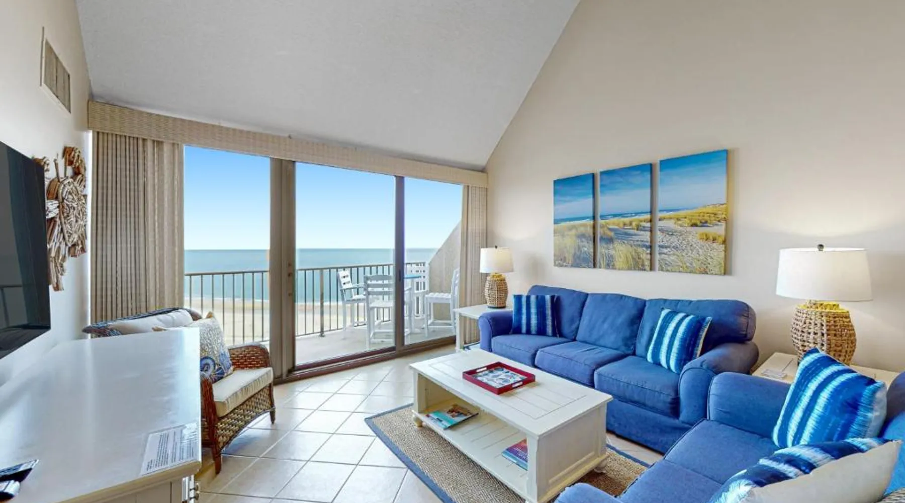 Beachfront Location: Sea Colony Chesapeake House IV in Bethany Beach offers direct beachfront access and stunning sea views. Guests can relax on the sandy shores or enjoy the outdoor swimming pool. Leisure Facilities: The apartment features an indoor swimming pool, sauna, and fitness room. Additional amenities include a hot tub, outdoor seating area, picnic spots, and a children's playground. Comfortable Accommodations: Each unit includes air-conditioning, a terrace, balcony, and a fully equipped kitchen. Guests can enjoy amenities such as a washing machine, private bathroom, and free toiletries. Nearby Attractions: South Bethany Beach is a 1-minute walk away. Thunder Lagoon Waterpark is 5.6 mi from the property, while Ocean City Harbor lies 14 mi distant. Boasting 3 bedrooms and 2 bathrooms, this spacious apartment has a well-fitted kitchen and a dining area. Guests will find a stovetop, a refrigerator, a dishwasher and kitchenware in the fully equipped kitchen. The apartment also features a barbecue. The air-conditioned apartment offers a TV with cable channels, a washing machine, a tea and coffee maker, a seating area as well as sea views. The unit offers 8 beds.