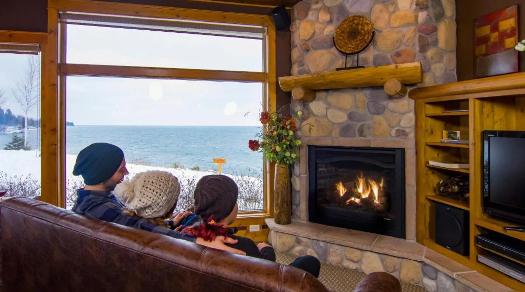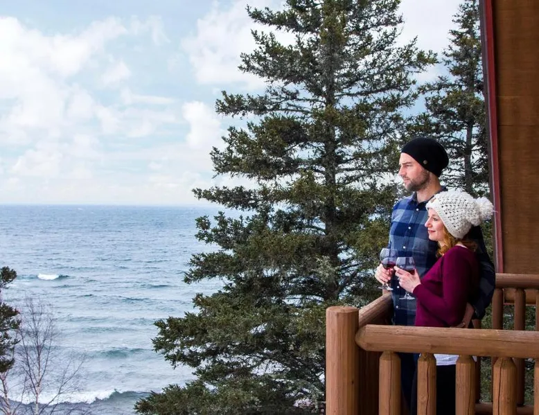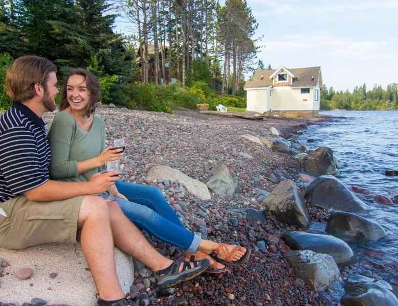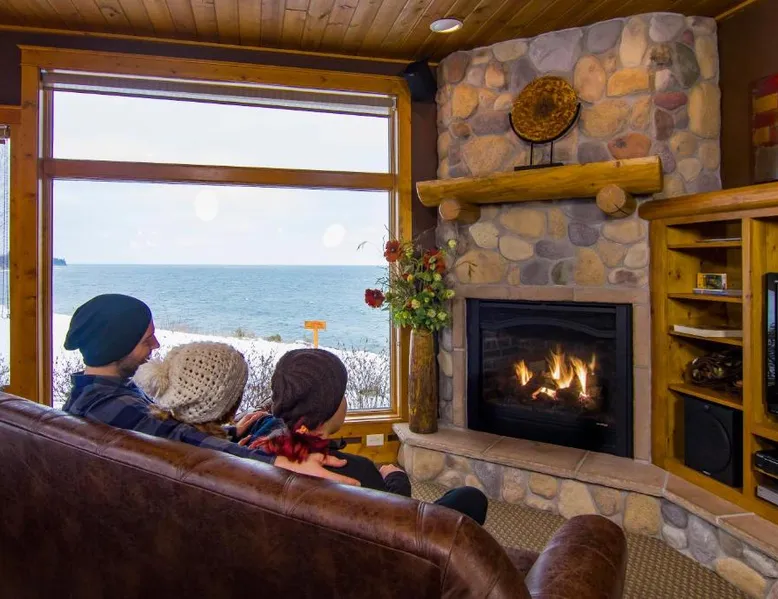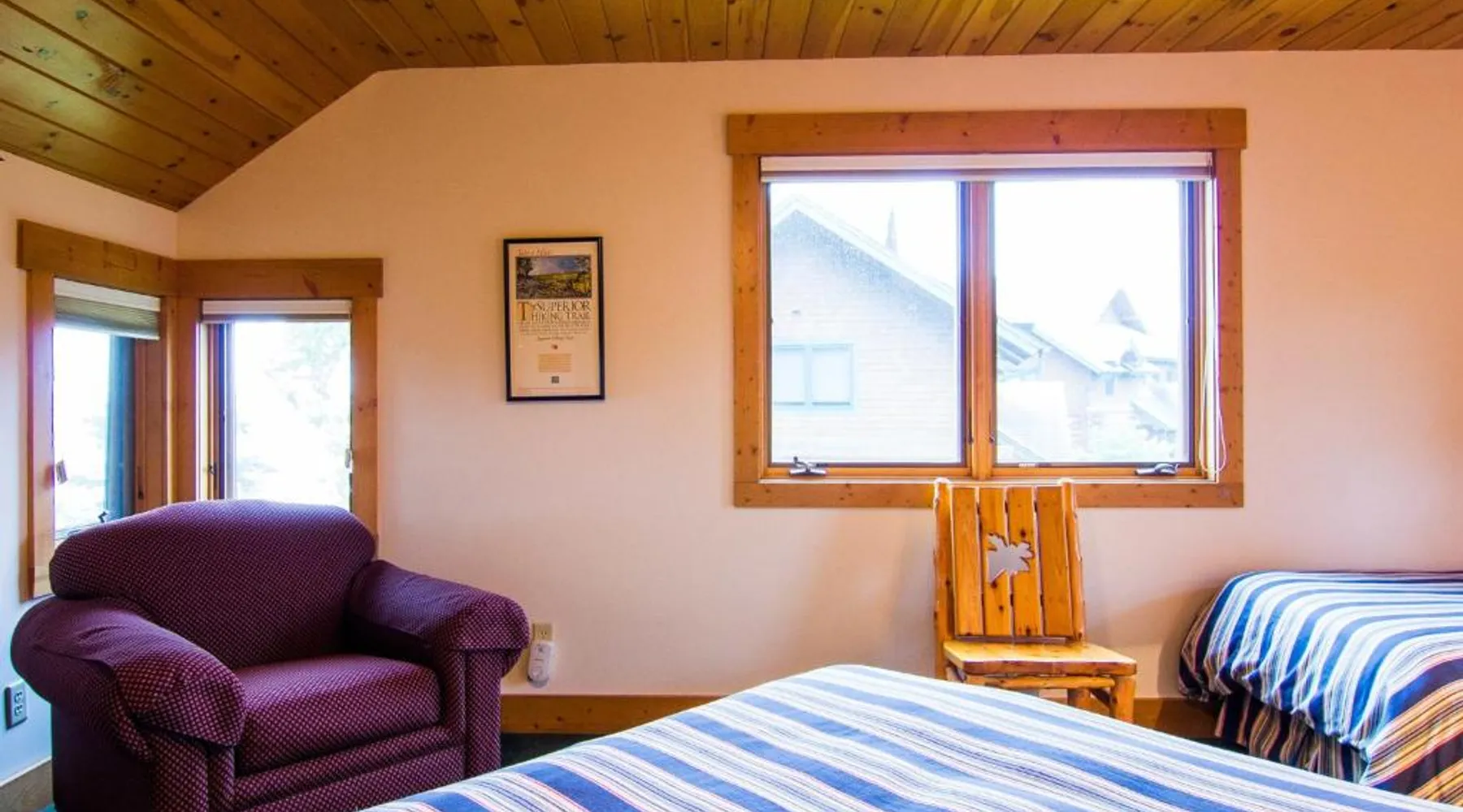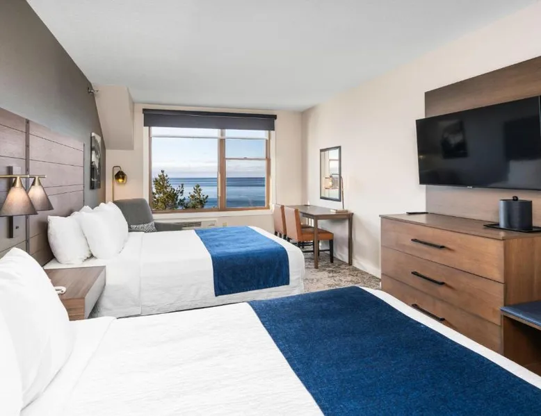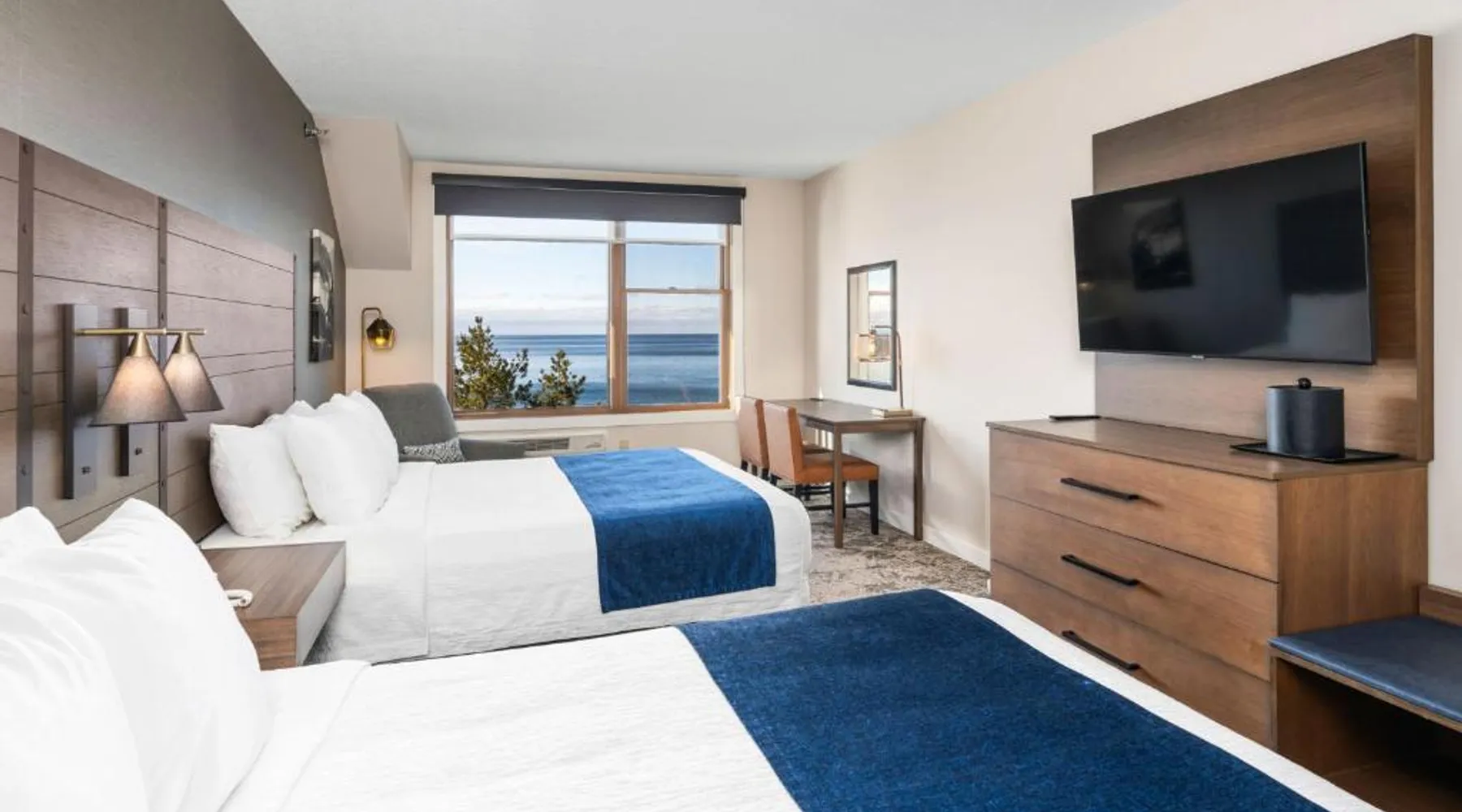 Hugging the shores of Lake Superior in Two Harbors, the Grand Superior Lodge features an indoor pool and a fitness center. Free WiFi access is available. Each north woods styled accommodations at the Grand Superior Lodge features a flat-screen TV. A microwave and refrigerator are included as well. Select accommodations have a balcony and fireplace. At the Two Harbors Grand Superior Lodge guests can enjoy activities like hiking, cycling, and canoeing. The resort includes an expansive shoreline and nightly fires on the beach. There is a hot tub and sauna. Located in the main lodge, Grand Superior Grille offers fine dining with a lake view and game meat dishes including bison. Gooseberry Falls State Park offers waterfalls and scenic hiking, just 5 minutes’ drive from the resort. Lakeview National Golf Course is 11 mi away. This double room with a lake view has a flat-screen TV, microwave, and refrigerator.