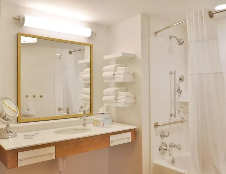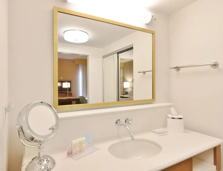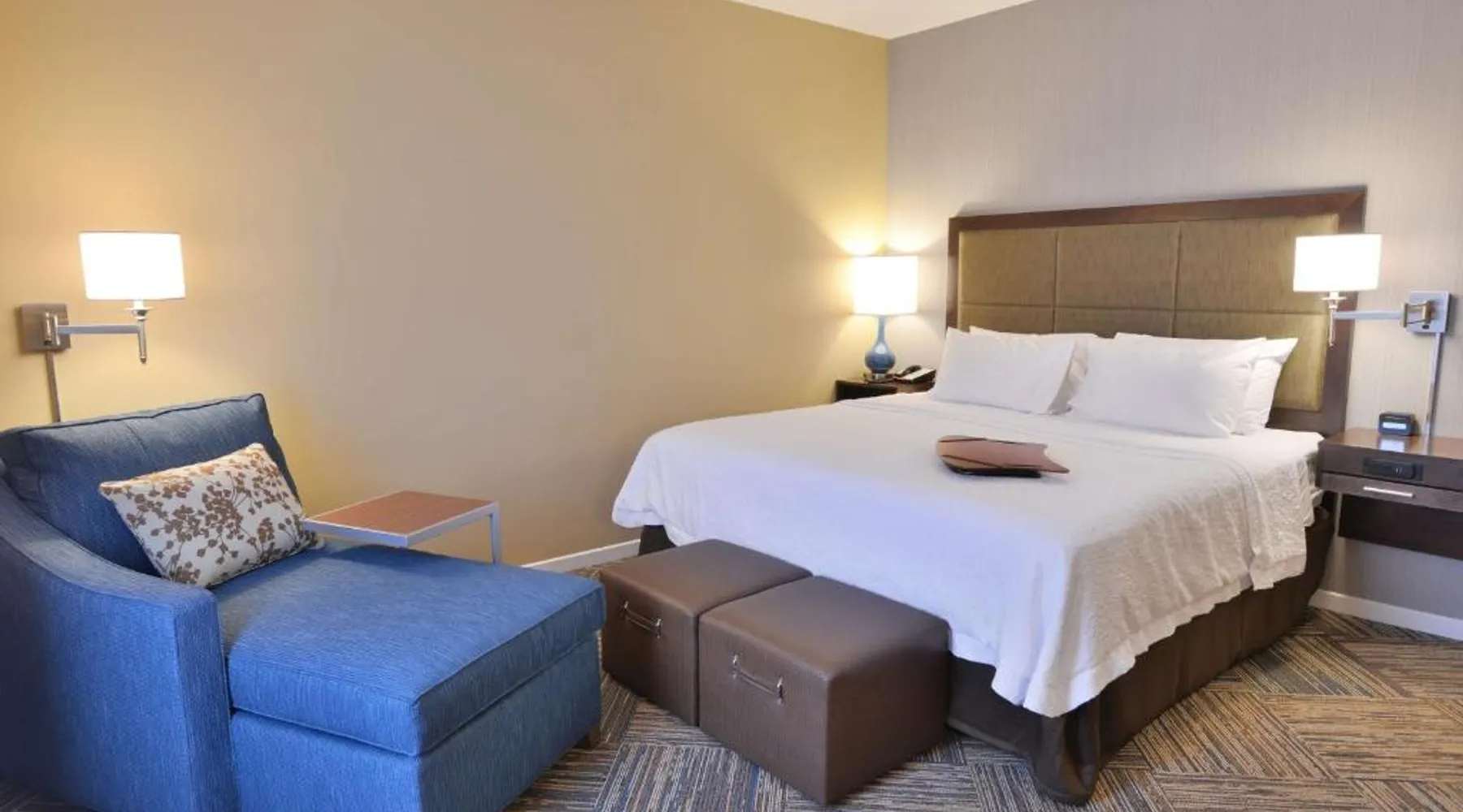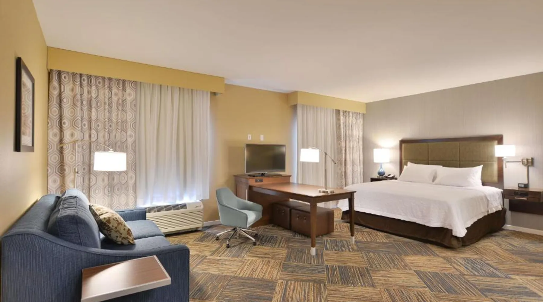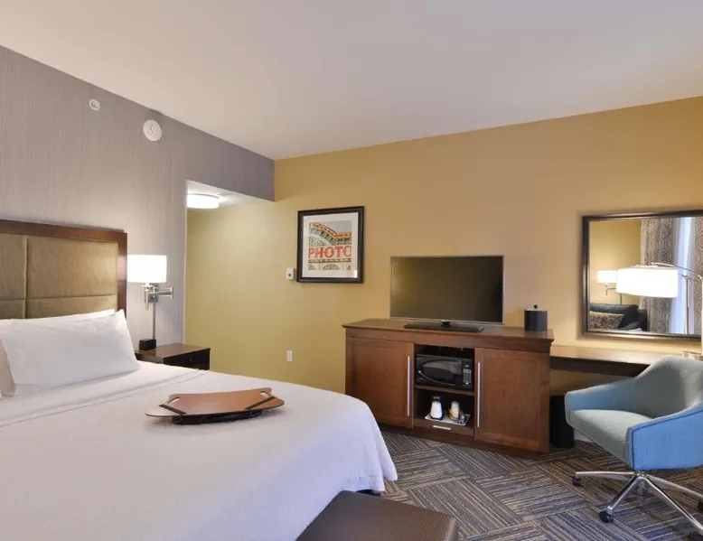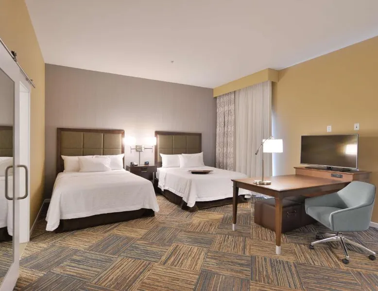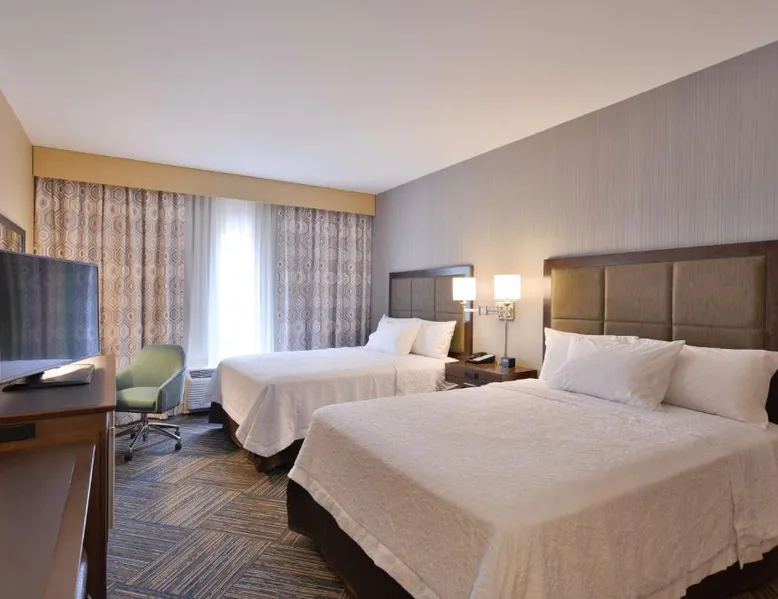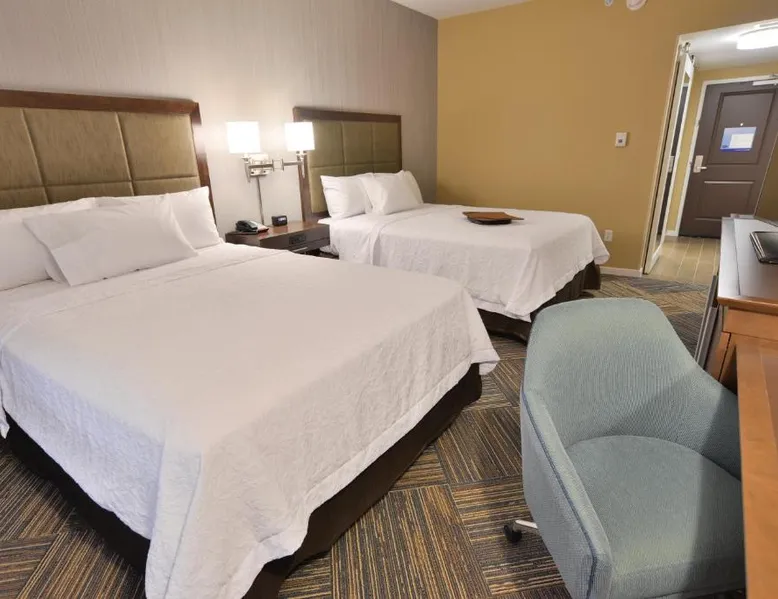 Comfortable Accommodations: Hampton Inn & Suites Chippewa Falls in Chippewa Falls offers rooms with free WiFi, air-conditioning, and modern amenities. Each room includes a tea and coffee maker, hairdryer, refrigerator, microwave, shower, and TV. Leisure Facilities: Guests can enjoy a saltwater swimming pool, indoor pool, fitness center, sun terrace, and outdoor seating area. Additional amenities include a lounge, fitness room, elevator, 24-hour front desk, minimarket, and luggage storage. Dining Options: A continental buffet breakfast is served daily, featuring warm dishes, juice, and fruits. The property also offers free on-site private parking and is 3.7 mi from Chippewa Valley Regional Airport. Nearby Attractions: Located 9.9 mi from University Of Wisconsin-Eau Claire and 5.6 mi from Leinenkugel Brewery, the hotel is also close to Colfax Railroad Museum (25 mi) and Phenix Park (8.7 mi). This studio features a tea and coffee maker, a seating area and a flat-screen TV. The unit offers 3 beds.