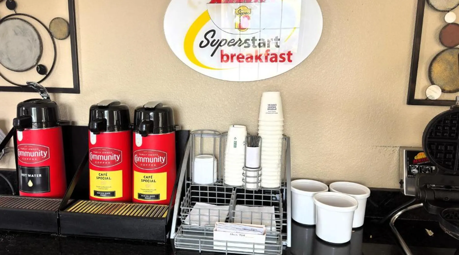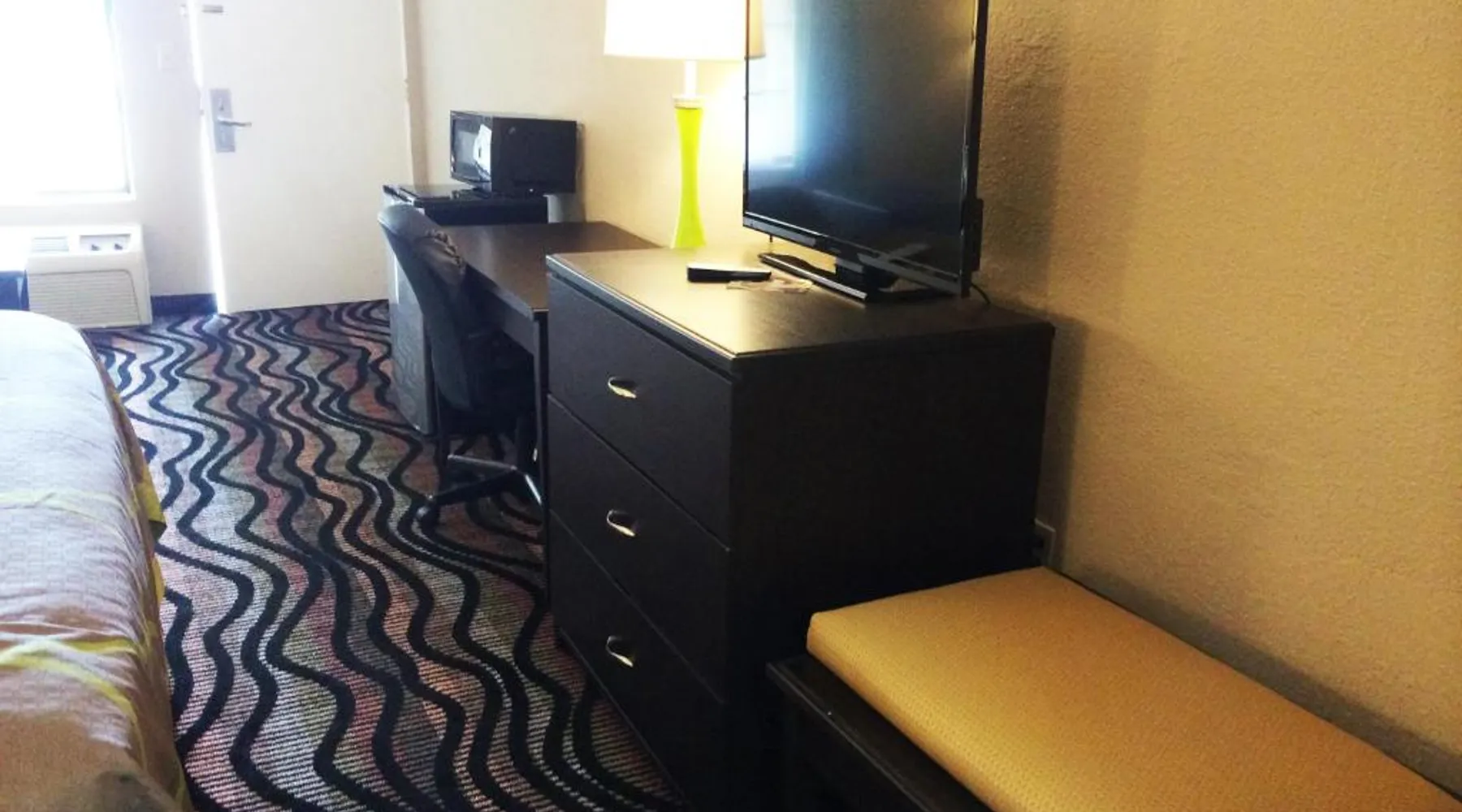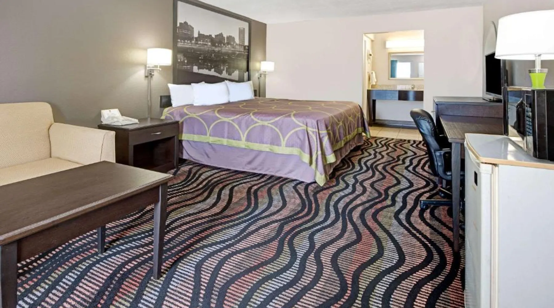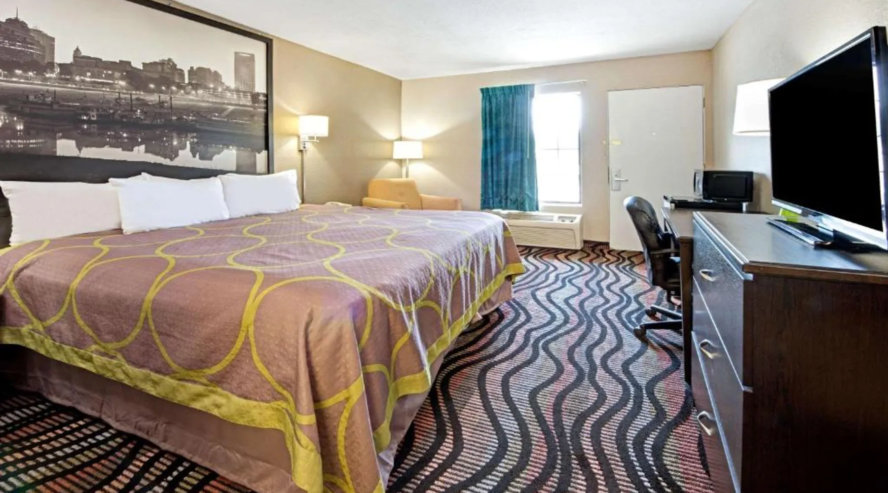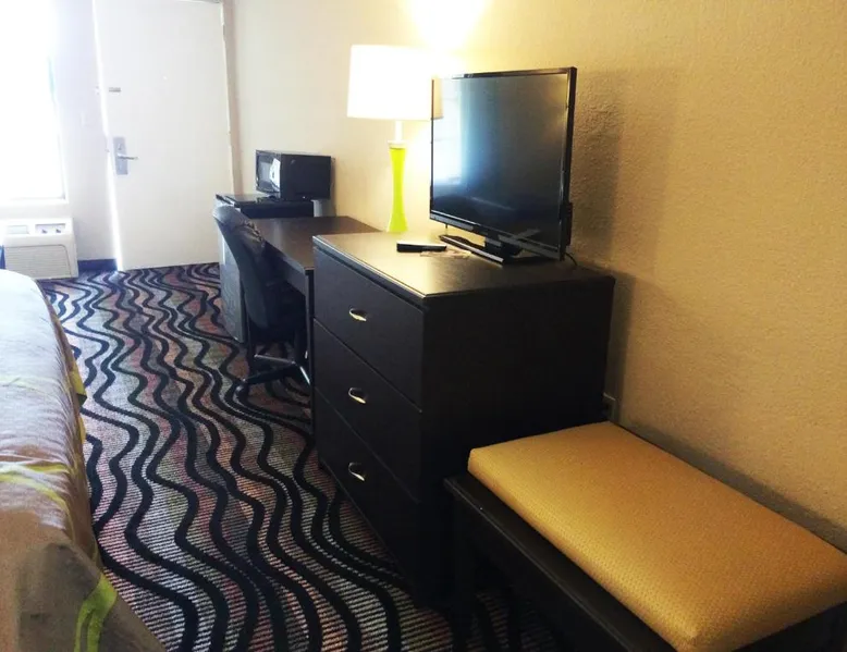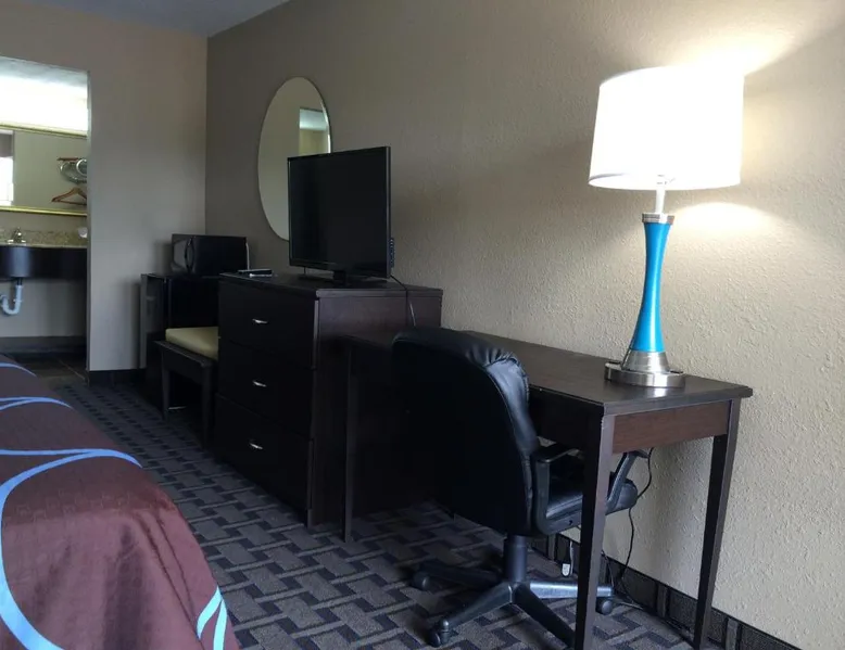 Comfortable Accommodations: Super 8 by Wyndham Lakeland in Lakeland offers family rooms with air-conditioning, private bathrooms, and private entrances. Each room includes a bath or shower, hairdryer, refrigerator, free toiletries, microwave, and TV. Essential Facilities: Guests enjoy a seasonal outdoor swimming pool and free WiFi. Additional amenities include a elevator, 24-hour front desk, and free on-site parking. Dining Options: A continental, American, and buffet breakfast is available each morning. Convenient Location: Located 21 mi from Memphis International Airport, the hotel is near attractions such as Fire Museum of Memphis and Graceland. Guests appreciate the convenient location, attentive staff, and excellent value for money. This suite has a cable TV and air conditioning.