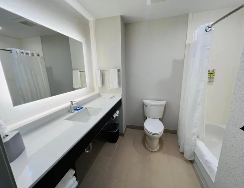 Located off Route 101 in Salinas, California, this hotel is a 5-minute drive from the National Steinbeck Center and Bankers Casino. It features rooms with free Wi-Fi. A flat-screen TV with a DVD player is included in each warmly colored guest room at Holiday Inn Express & Suites Salinas. A microwave, refrigerator, and coffee maker are provided. A variety of cardio equipment is available at the hotel’s on-site gym. A business center with printer access is located off of the 24-hour lobby. The Northridge Mall is a 10-minute drive from the Salinas Holiday Inn Express. Salinas River State Beach is 13 miles from the hotel. The spacious double room offers air conditioning, a tea and coffee maker, as well as a private bathroom boasting a bath and a shower. The unit has 1 bed.