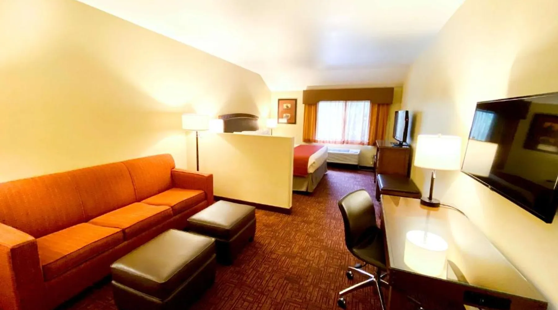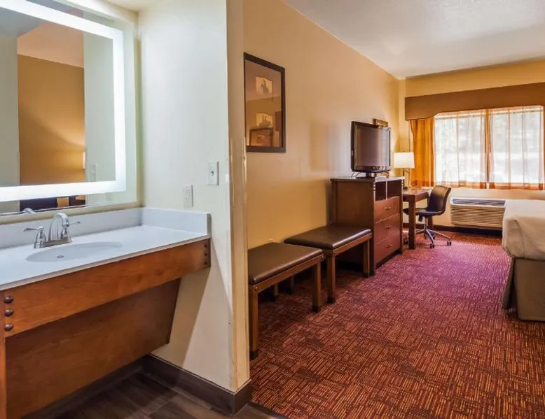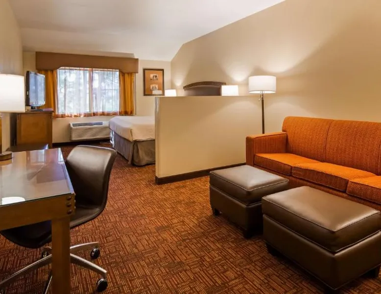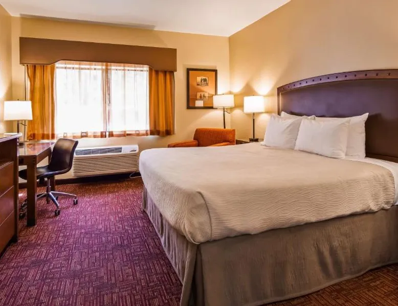 Located 60 miles away from the Grand Canyon, this hotel features an outdoor heated pool and hot tub. It serves a daily hot breakfast buffet and has a restaurant on-site. All rooms offer free Wi-Fi. A flat-screen cable TV with extended film channels is offered in each air-conditioned guest room at Best Western Plus Inn of Williams. All rooms include a work desk, a refrigerator and a coffee maker. Select suites feature fully equipped kitchens. Offering steak, ribs, lamb chops and a full wine list, Western View Steakhouse is located at Best Western Plus Inn of Williams. Kachina Lounge offers cocktails, outdoor seating and live entertainment Thursday through Saturday evenings. Guests of Best Western Plus Inn of Williams are greeted by a 24-hour reception. Guests can work out in the fitness center. For convenience, a guest launderette is available. Bearizona Wildlife Park is 3 minutes’ drive away from this hotel. Sedona is 65 miles away. This room features a satellite TV and a private bathroom with a hairdryer.