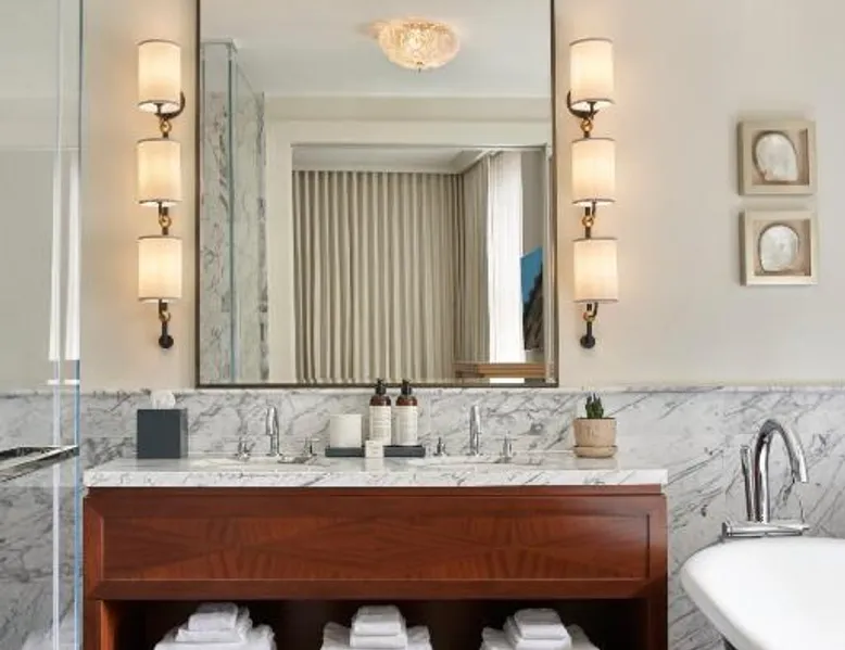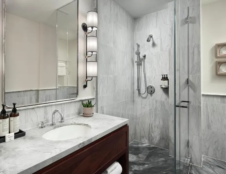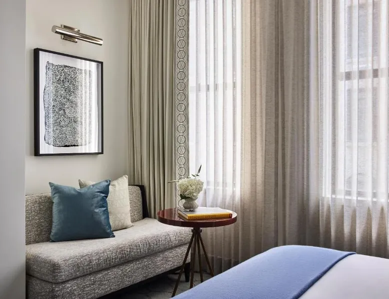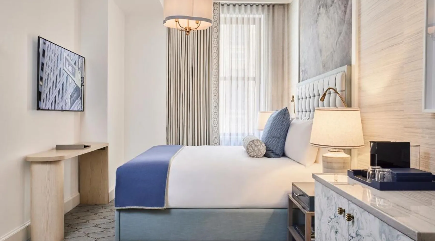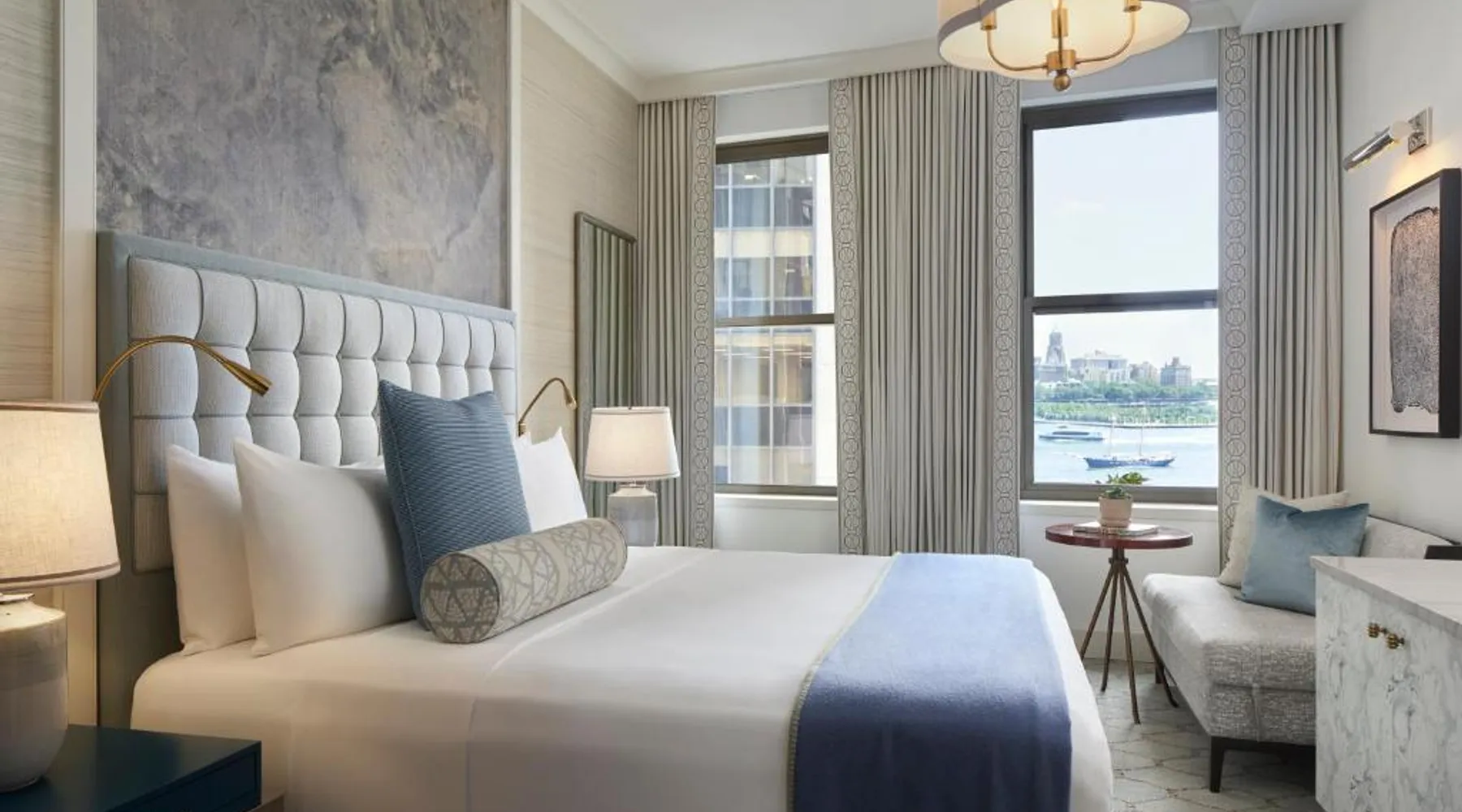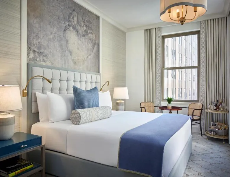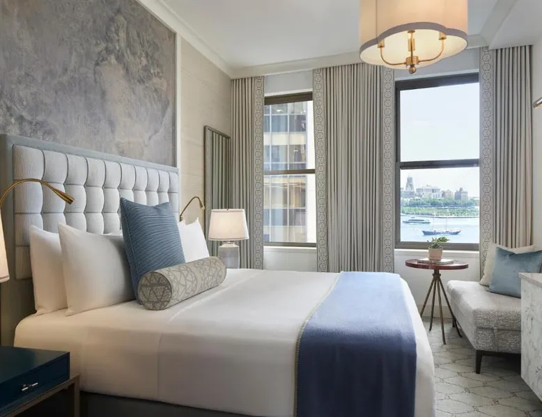 Elegant Accommodations: The Wall Street Hotel New York City in New York offers luxurious rooms with air-conditioning, private bathrooms, and modern amenities. Guests enjoy free WiFi, flat-screen TVs, and soundproofing for a comfortable stay. Exceptional Facilities: The hotel features a fitness center, terrace, restaurant, bar, and free bicycles. Additional services include a 24-hour front desk, concierge, and room service. Prime Location: Located less than 0.6 mi from the National September 11 Memorial & Museum and near One World Observatory, the hotel is 11 mi from LaGuardia Airport. Nearby attractions include the Brooklyn Bridge and Statue of Liberty. Guest Satisfaction: Highly rated for its attentive staff, comfortable rooms, and impeccable cleanliness, the hotel ensures a memorable stay for all visitors. Featuring free toiletries and bathrobes, this double room includes a private bathroom with a walk-in shower, a hairdryer and slippers. The spacious double room features air conditioning, soundproof walls, a mini-bar, a tea and coffee maker, as well as a flat-screen TV with cable channels. The unit has 1 bed.