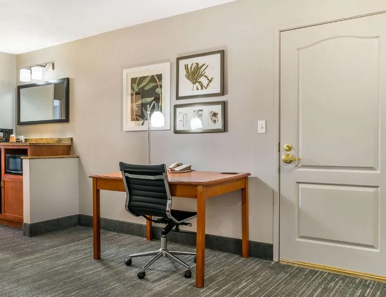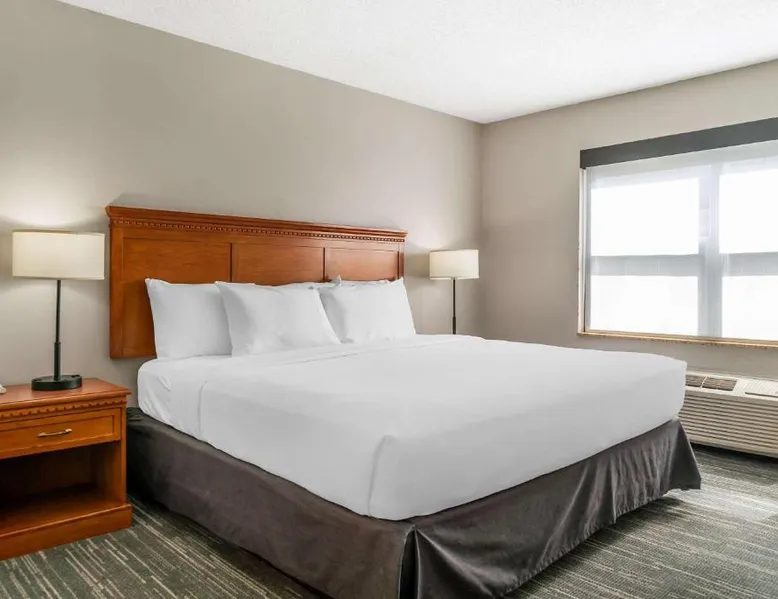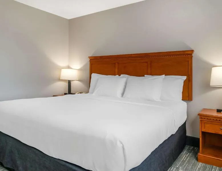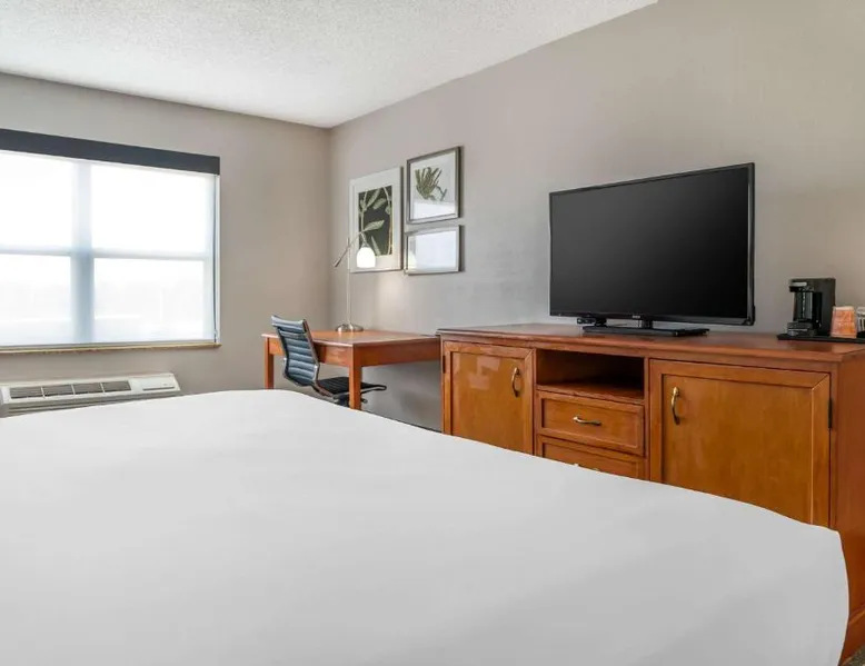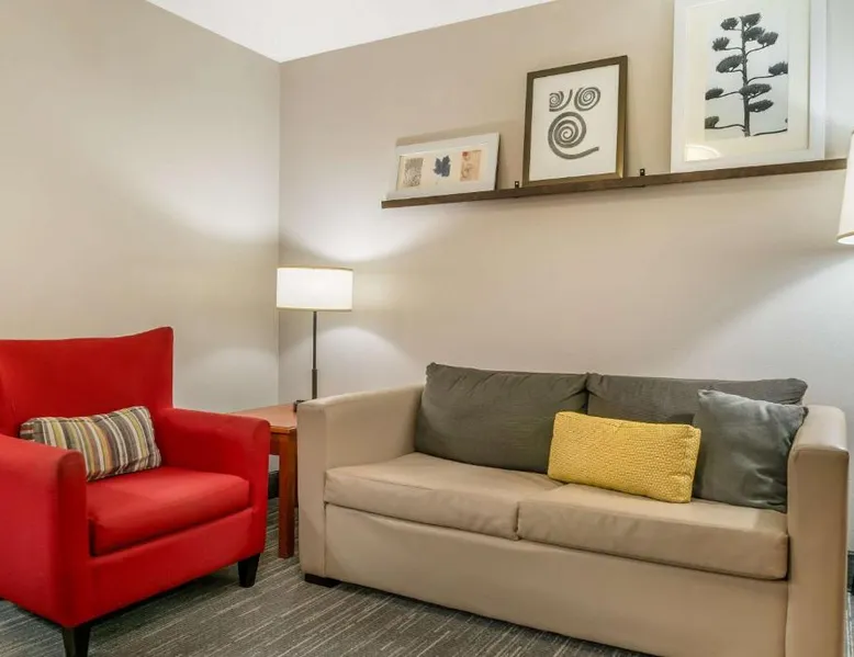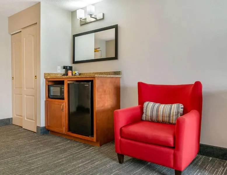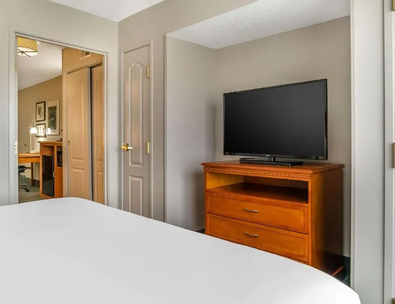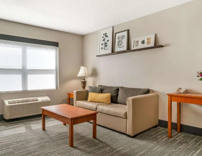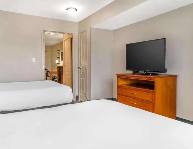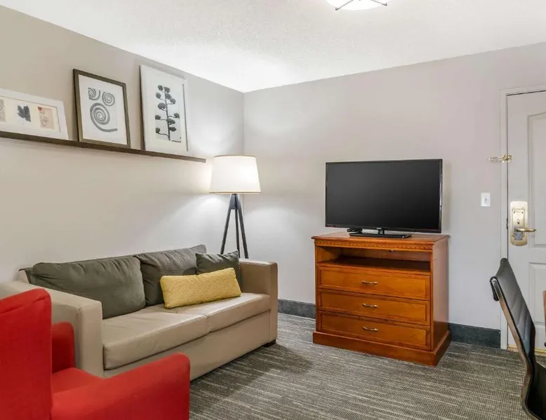 Located in Rossford, this hotel is located off of Interstate 75 and Interstate 90. The Toledo city center is 15 minutes’ drive away. Free Wi-Fi is accessible and guests have access to coffee and cookies all day. Each room at the Country Inn Suites Toledo South includes features like a refrigerator, microwave and flat-screen cable TV. The suites have a separate seating area complete with a sofa bed. This South Toledo Country Inn Suites offers a business center and an indoor pool with a hot tub. Guests can also exercise in the fitness center. Hollywood Casino Toledo is 6 miles away. The University of Toledo is 18 minutes’ drive from the property. This suite features a separate seating area complete with a sofa bed and a flat-screen cable TV.