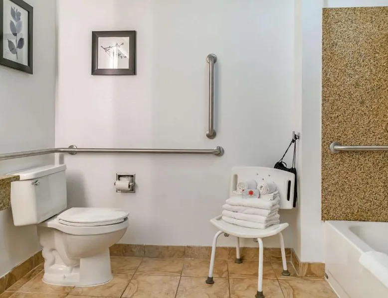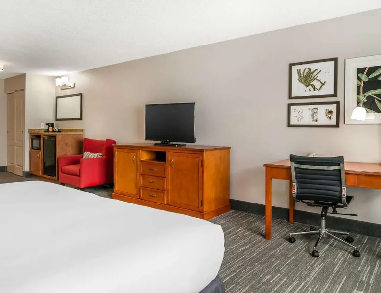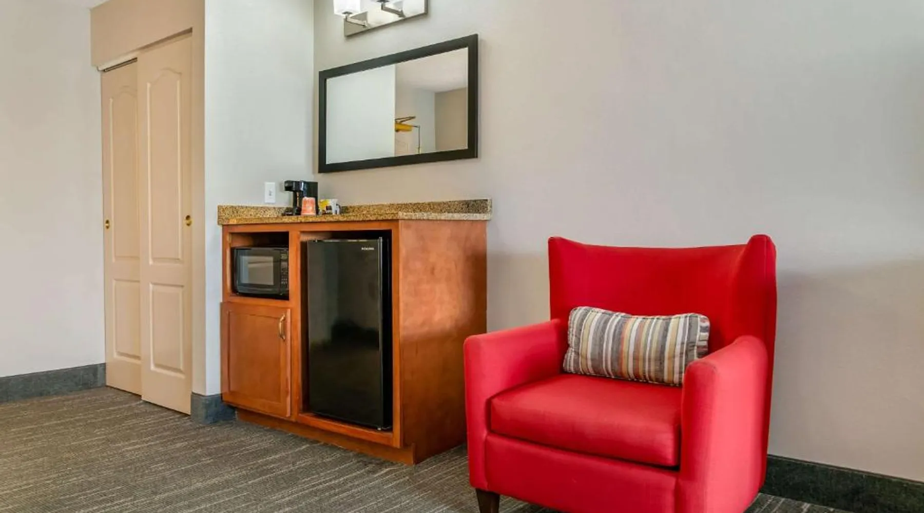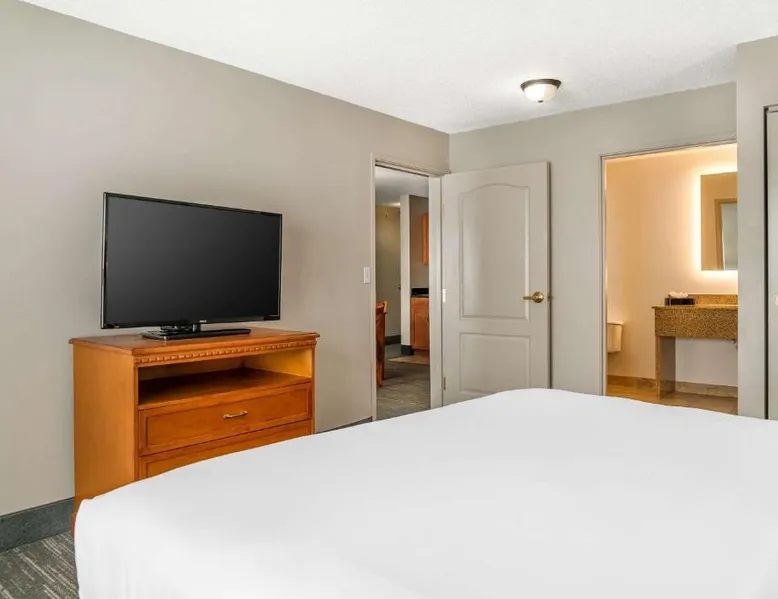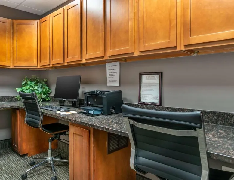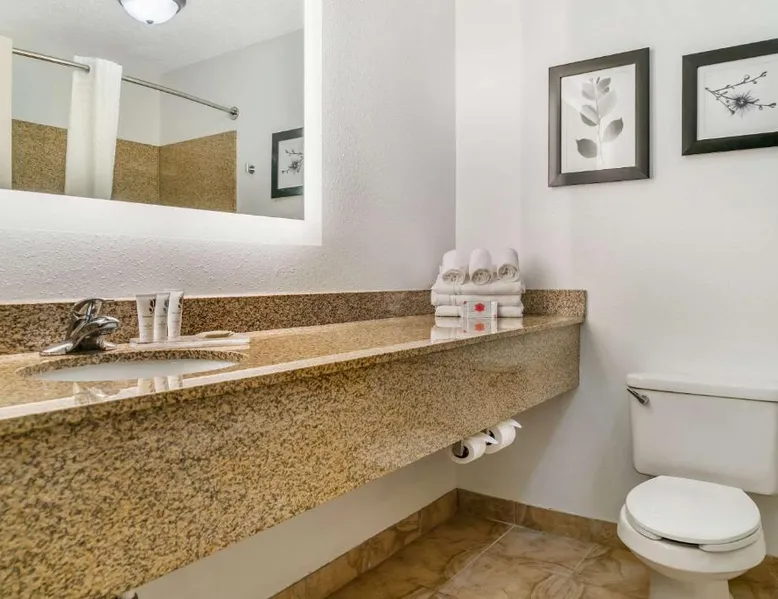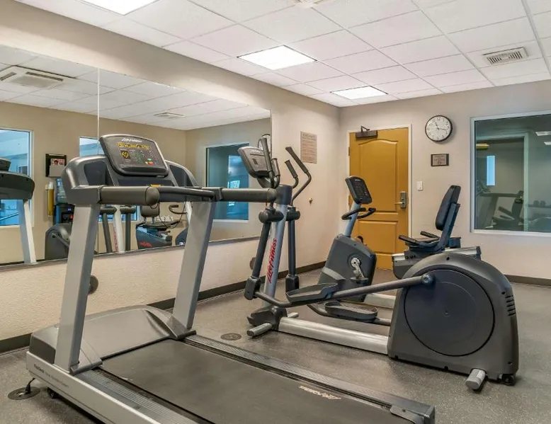 Located in Rossford, this hotel is located off of Interstate 75 and Interstate 90. The Toledo city center is 15 minutes’ drive away. Free Wi-Fi is accessible and guests have access to coffee and cookies all day. Each room at the Country Inn Suites Toledo South includes features like a refrigerator, microwave and flat-screen cable TV. The suites have a separate seating area complete with a sofa bed. This South Toledo Country Inn Suites offers a business center and an indoor pool with a hot tub. Guests can also exercise in the fitness center. Hollywood Casino Toledo is 6 miles away. The University of Toledo is 18 minutes’ drive from the property. This suite features a separate seating area complete with a sofa bed and a flat-screen cable TV.