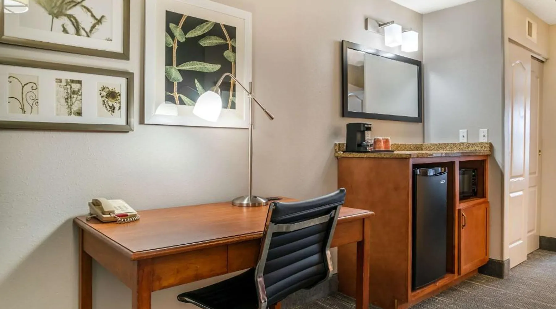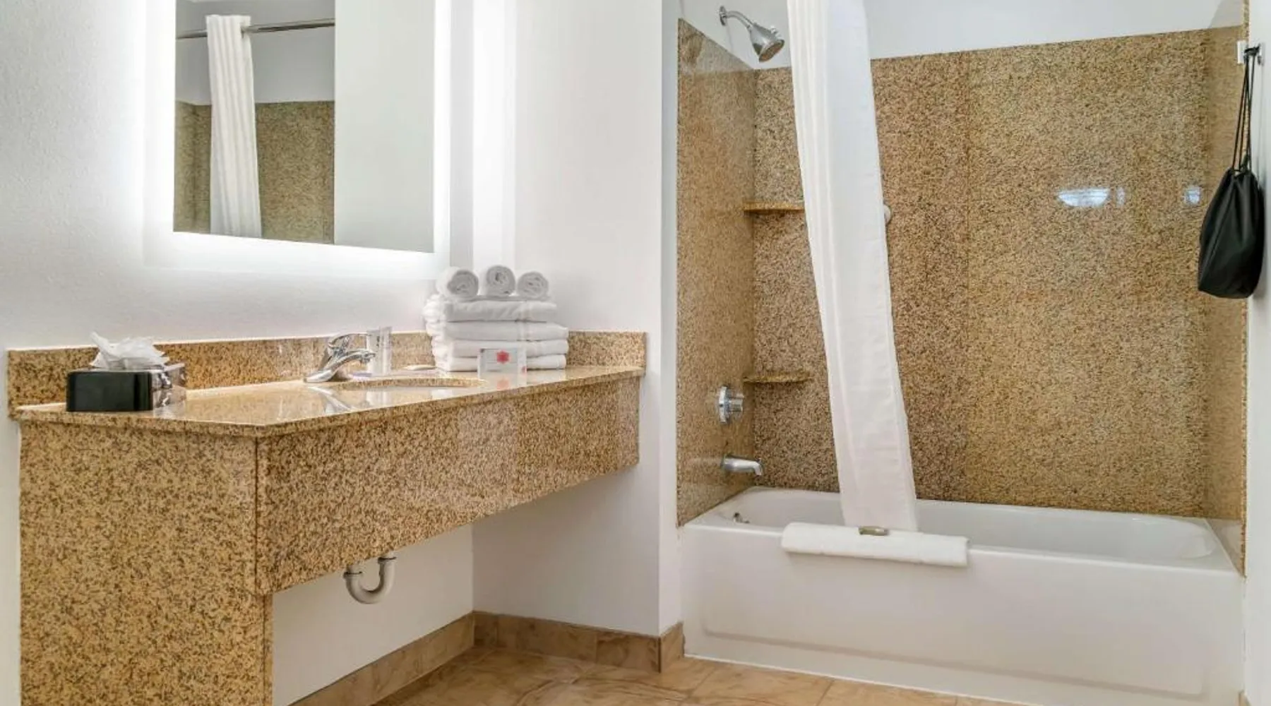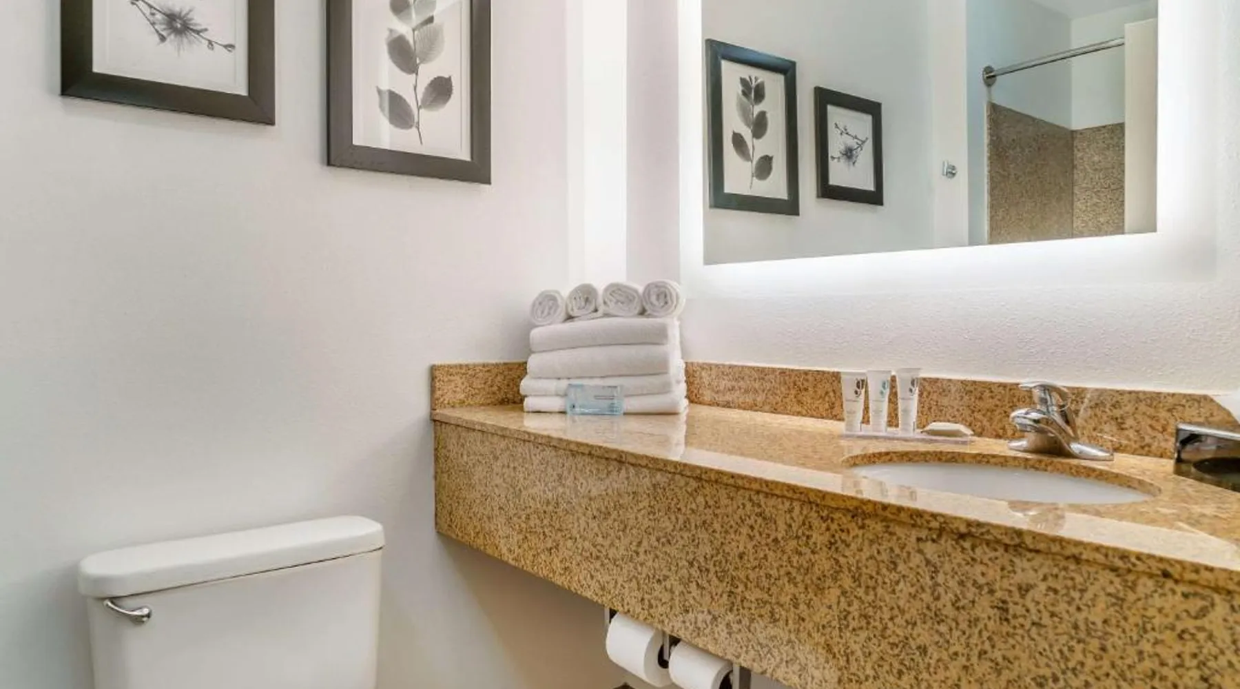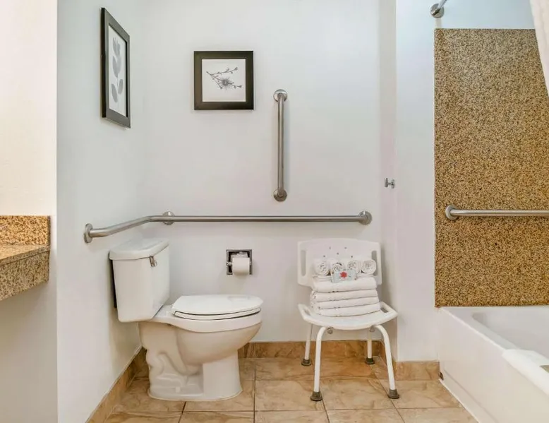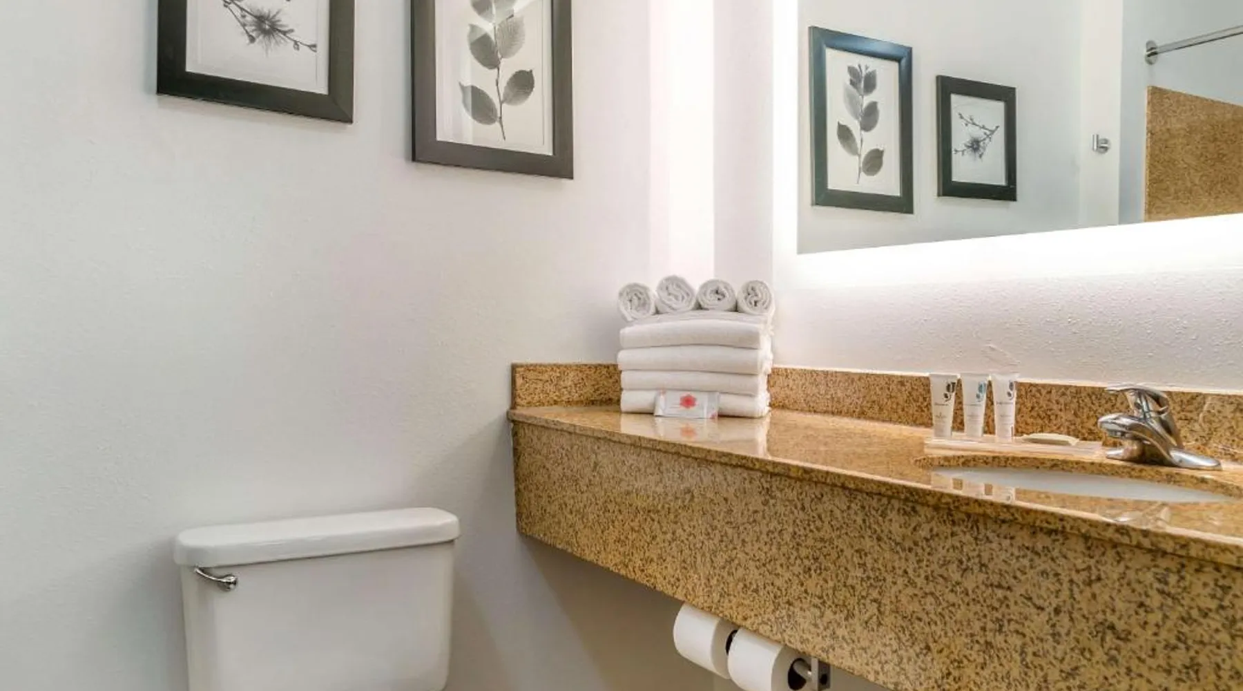 Located in Rossford, this hotel is located off of Interstate 75 and Interstate 90. The Toledo city center is 15 minutes’ drive away. Free Wi-Fi is accessible and guests have access to coffee and cookies all day. Each room at the Country Inn Suites Toledo South includes features like a refrigerator, microwave and flat-screen cable TV. The suites have a separate seating area complete with a sofa bed. This South Toledo Country Inn Suites offers a business center and an indoor pool with a hot tub. Guests can also exercise in the fitness center. Hollywood Casino Toledo is 6 miles away. The University of Toledo is 18 minutes’ drive from the property. This suite features a separate seating area complete with a sofa bed and a flat-screen cable TV.
