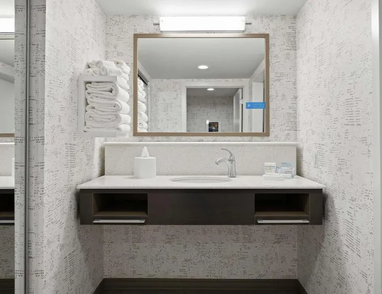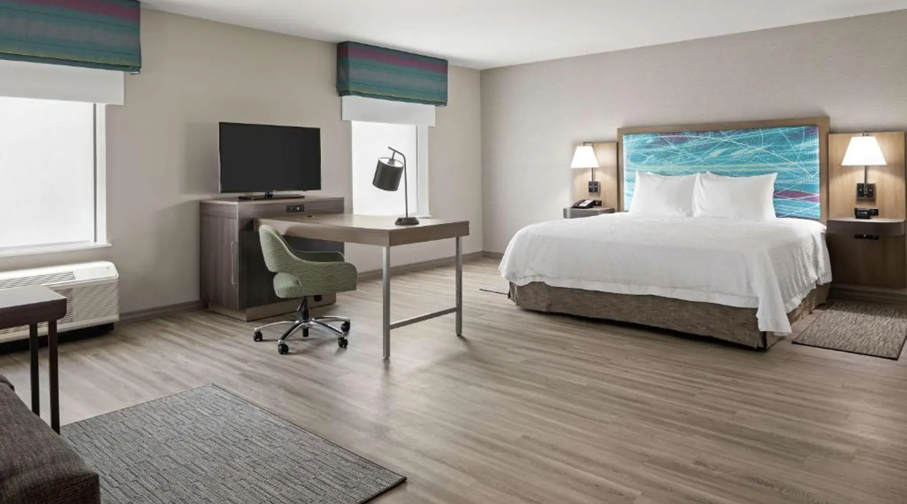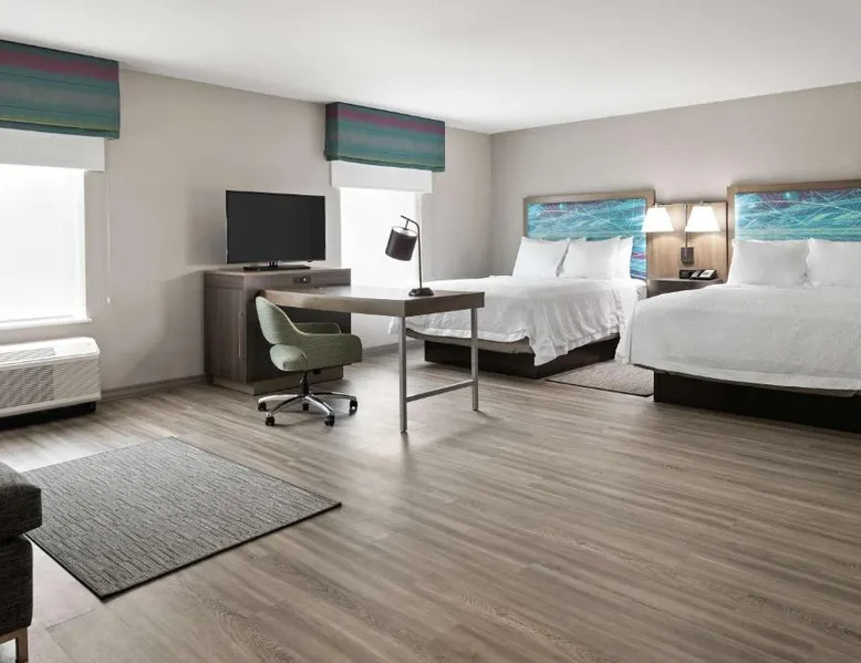 Comfortable Accommodations: Hampton Inn & Suites Cranberry Township/Mars in Cranberry Township offers family rooms with air-conditioning, private bathrooms, and free WiFi. Each room includes a tea and coffee maker, refrigerator, microwave, TV, and work desk. Leisure Facilities: Guests can enjoy an indoor and saltwater swimming pool, fitness center, and a beautiful garden. Additional amenities include a fitness room, elevator, 24-hour front desk, electric vehicle charging station, and free on-site parking. Dining Experience: The hotel provides an American breakfast with a variety of options. Free on-site parking is available for all guests. Nearby Attractions: Located 21 mi from Pittsburgh International Airport, the property is close to Andy Warhol Museum, PNC Park, and Point State Park. Hiking enthusiasts will appreciate the surrounding trails. This quadruple room features a flat-screen cable TV, a fridge, and a tea/coffee maker.