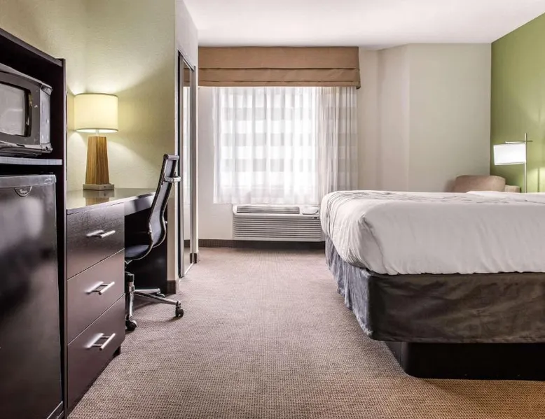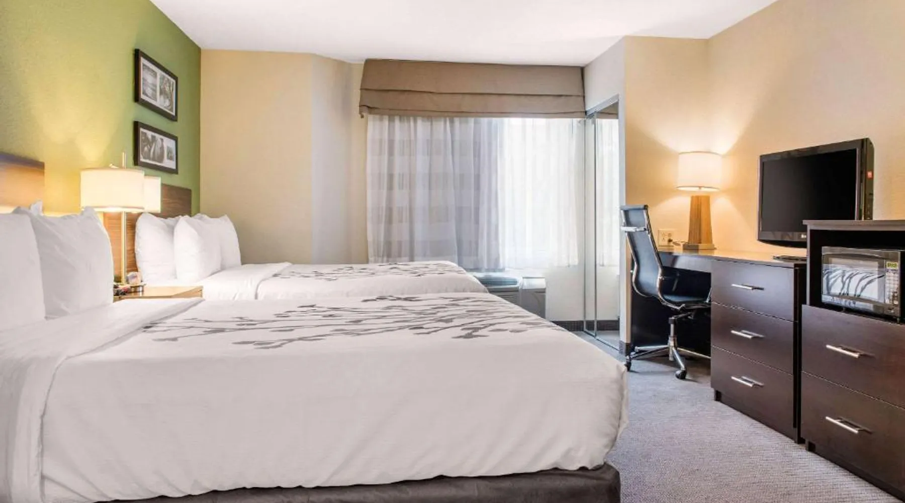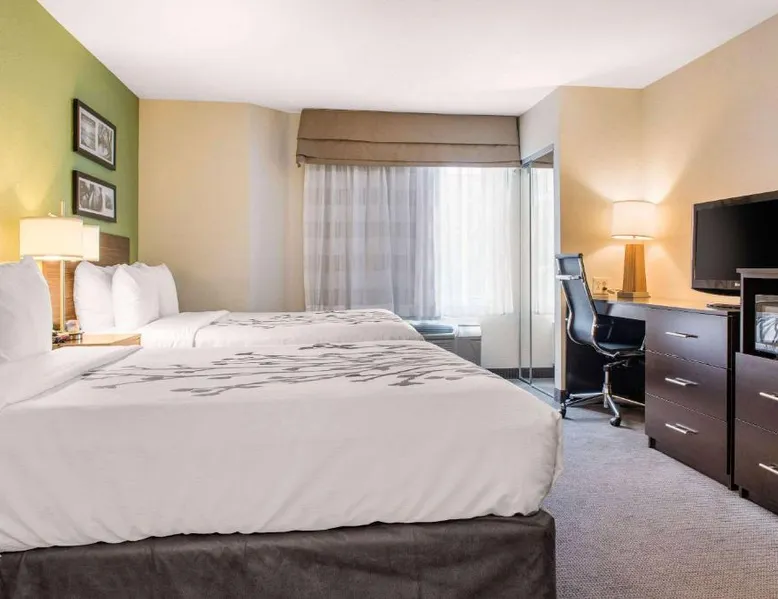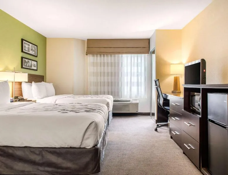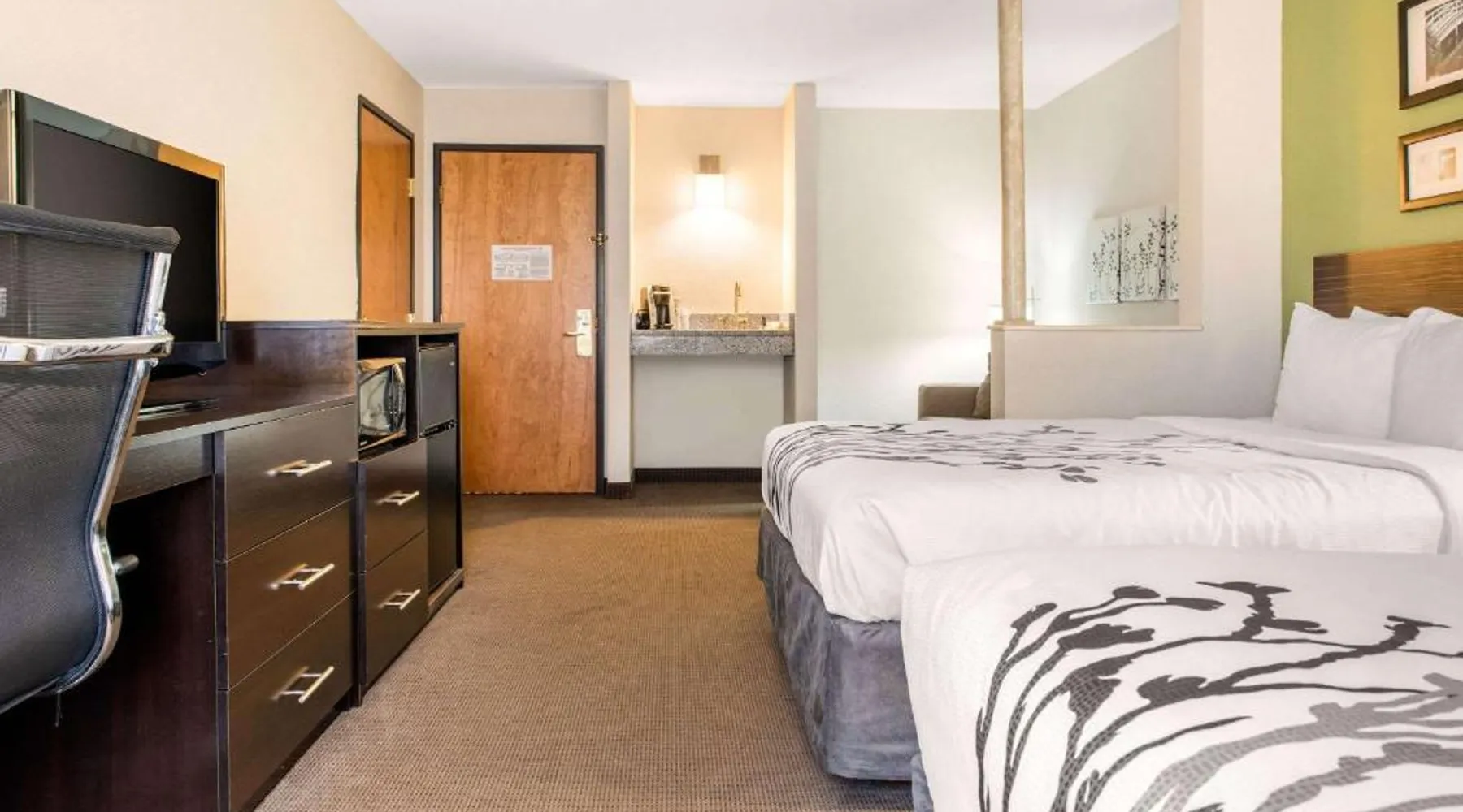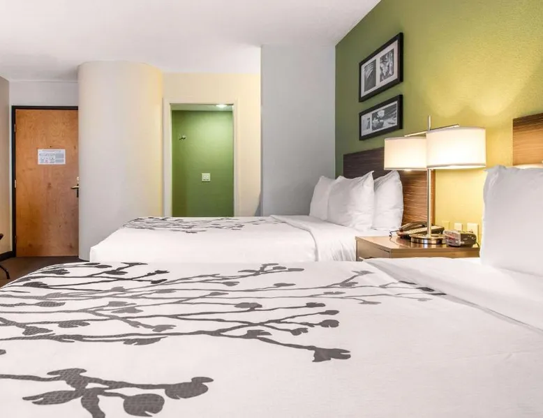 The newly-renovated Sleep Inn & Suites Columbus South hotel is located at Interstate 65 and State Road 46. Columbus, Indiana features world-renowned architecture and is home to the Fortune 500 company Cummins, as well as other major industries. The hotel is just 42 miles south of Indianapolis, home of the Indianapolis Colts, Indiana Pacers, Indy 500 race, Lucas Oil Stadium, Bankers Life Fieldhouse, Children's Museum of Indianapolis and the Indianapolis Zoo. This Columbus, IN hotel is 70 miles north of Louisville, KY, home of the world-famous Kentucky Derby. All guest rooms at this smoke-free hotel include microwaves, refrigerators, safes, irons, ironing boards, hair dryers and 32-inch flat-screen televisions with 92 channels, including free HBO and TV Japan. Please add in that we are just 20 minutes away from the Brown County Music center Business travelers will especially appreciate the business center with computer, scanner and printer located just off the lobby. Guests of this Columbus, IN hotel will enjoy the Free Morning Medley Hot Breakfast. Other full-service amenities include a fitness center, an indoor heated pool.. The Edinburgh Premium Outlets is just five miles away and hosts over 85 designer and brand name stores. Brown County State Park is only eight miles west. The nearby city of Nashville is a quaint little town offering sightseeing trolley and horse-drawn carriage tours that transport visitors to numerous restaurants and specialty shops, including woodworking, stained glass, leather, pottery and photography studios. The spacious twin/double room provides air conditioning, a tea and coffee maker, as well as a private bathroom featuring a hairdryer. The twin/double room features a safe deposit box and heating. The unit offers 2 beds.