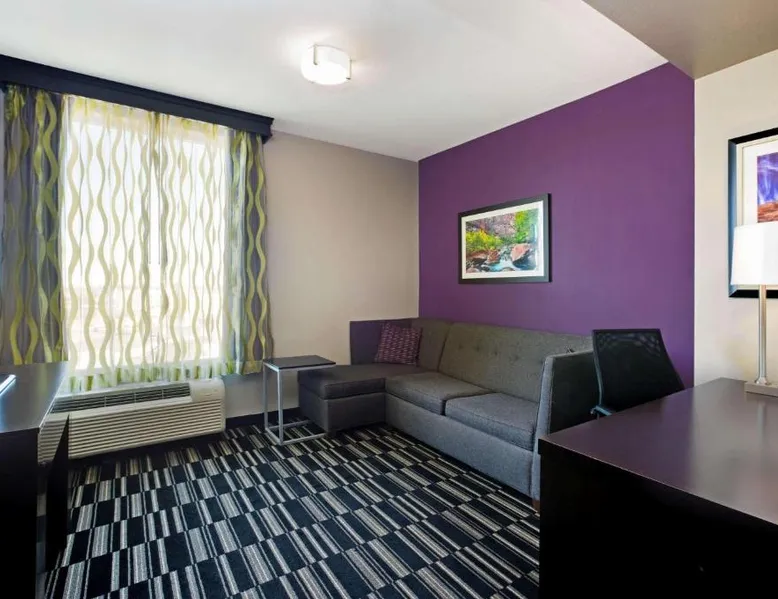Located in Cedar City, 13 mi from Brian Head, La Quinta Inn & Suites Cedar City features air-conditioned rooms with free WiFi. Guests can enjoy an indoor heated pool and spa. A free full hot breakfast is served daily. Rooms have a 40-inch flat-screen TV with cable channels. You will find a coffee machine in the room. The rooms are equipped with a private bathroom. For your comfort, you will find free toiletries and a hair dryer. There is a 24-hour front desk at the property. Coffee is available in the lobby. Southern Utah University is 1.9 mi away. The nearest airport is St. George Regional Airport, 49 mi from the property. This room features free WiFi, a fat-screen cable TV and a coffee maker. A private bathroom is also offered.