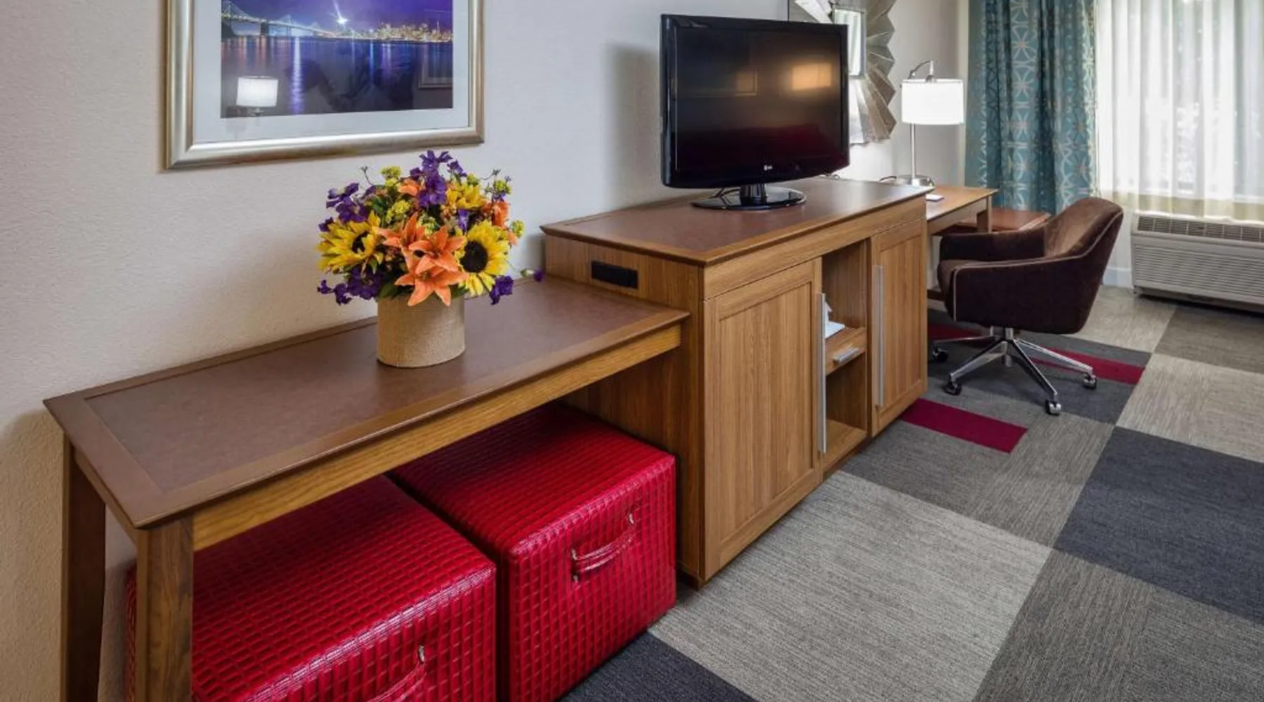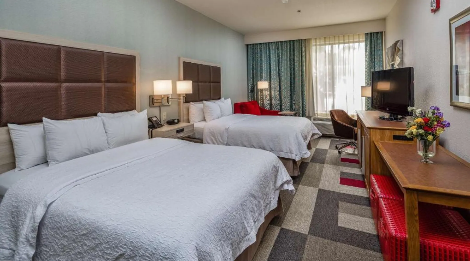 Located off Highway 101 and only minutes from San Francisco International Airport, this hotel features spacious accommodations with various guest amenities, including a fitness center, a business center, and guest laundry facility. The Hampton Inn San Francisco Airport offers guests easy access to a variety of area attractions, including the city center. The hotel is also located close to a rapid transit station, providing instant access to the city. After a restful night of sleep, guests at the San Francisco Airport Hampton Inn can start the morning with a free hot breakfast buffet. This quadruple room features a tea and coffee maker and a TV. The unit has 2 beds.