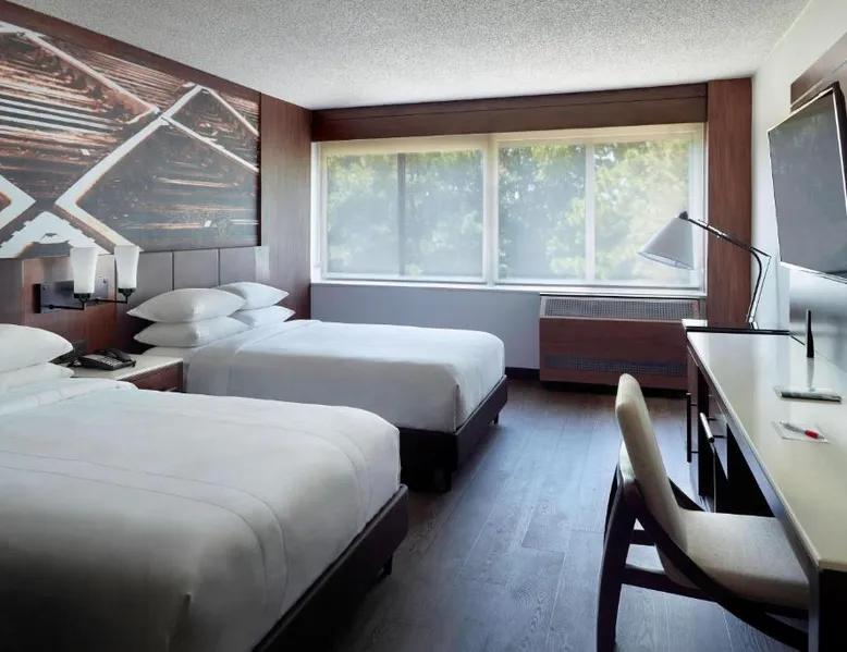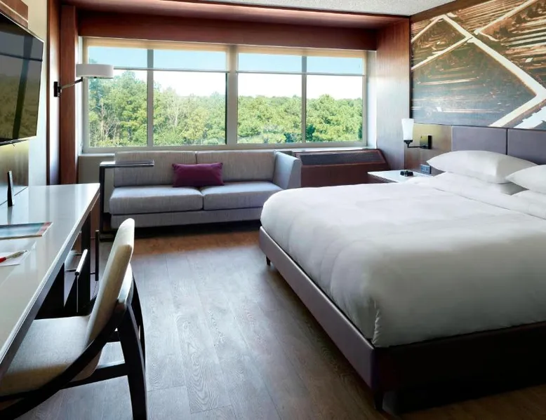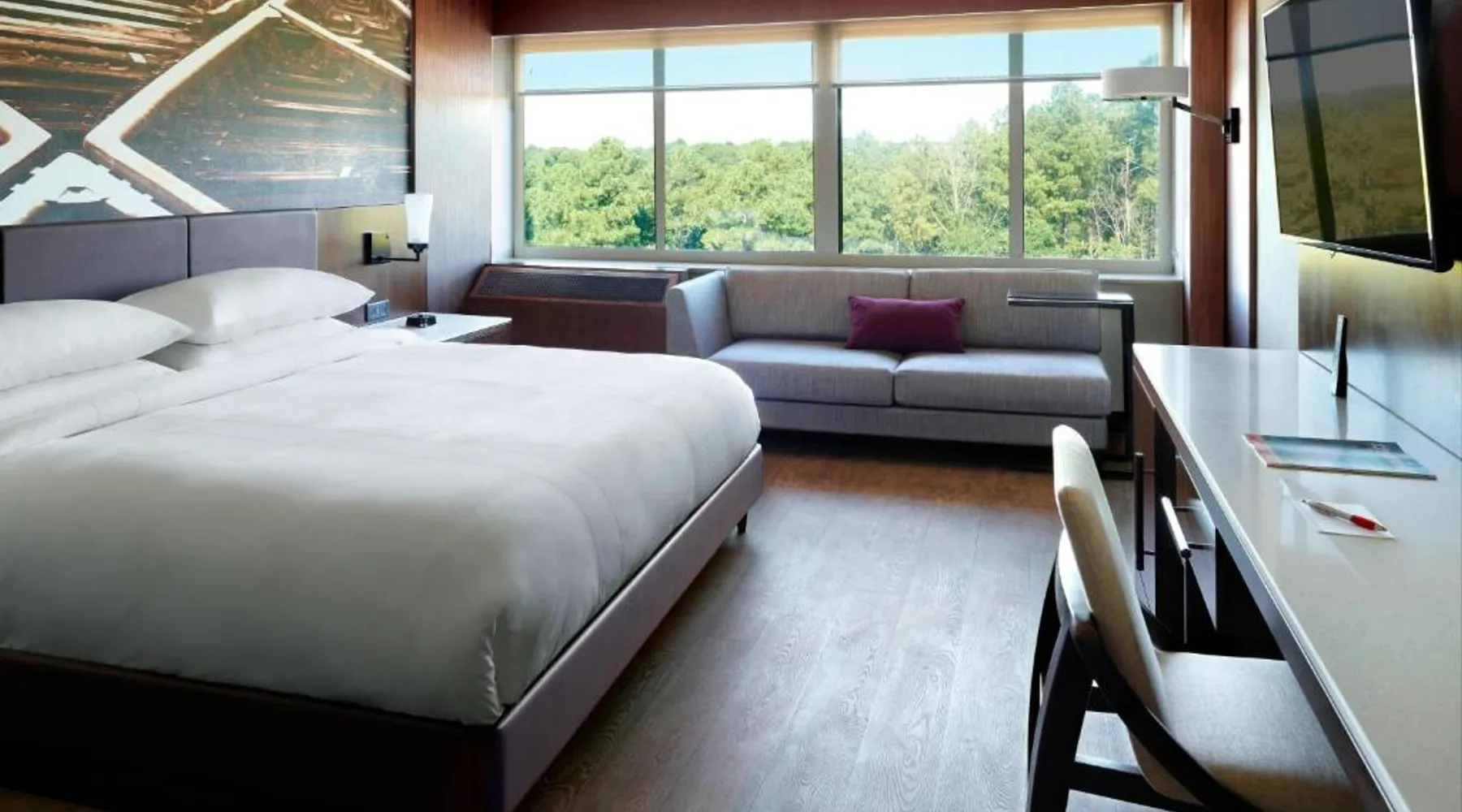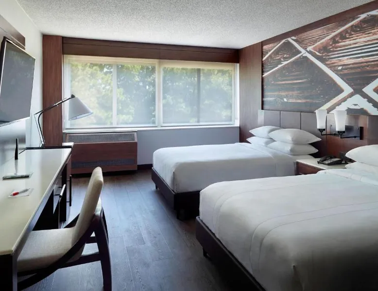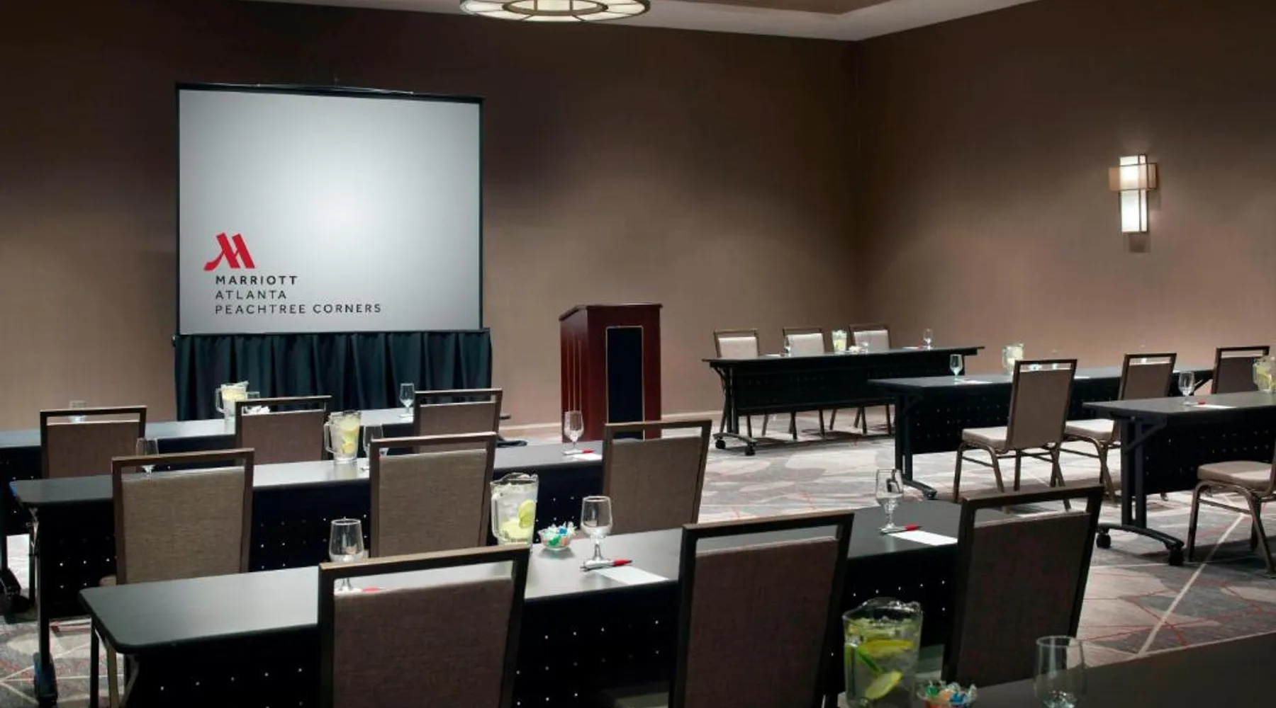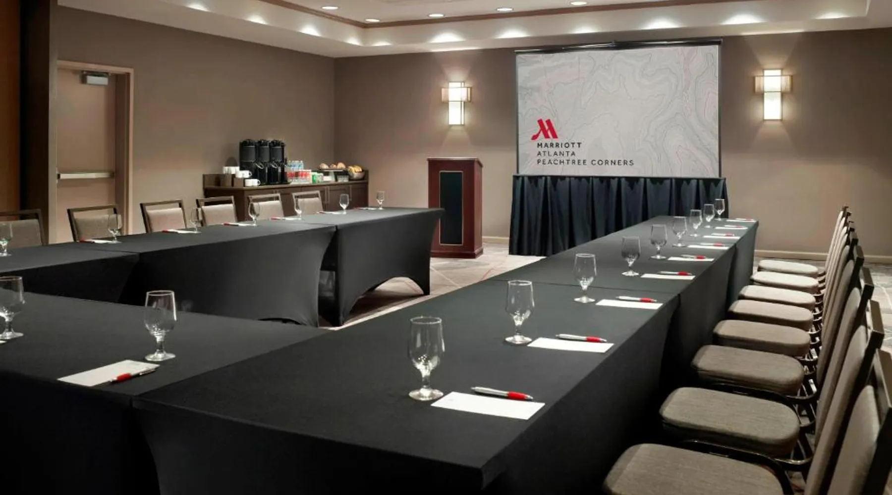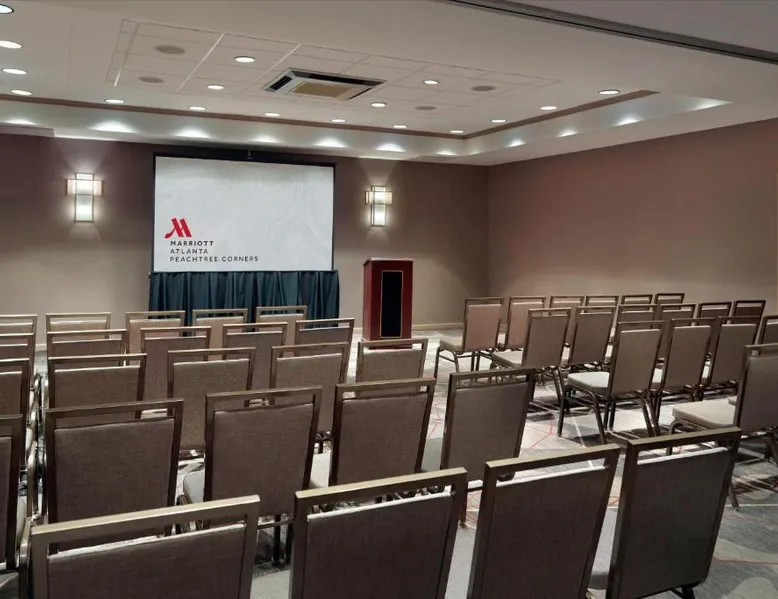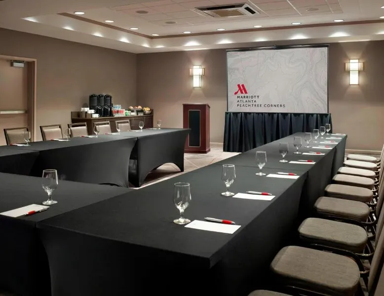 Comfortable Accommodations: Atlanta Marriott Peachtree Corners in Norcross offers family rooms with air-conditioning, private bathrooms, and modern amenities. Each room includes a work desk, TV, and free WiFi. Dining and Leisure: Guests can enjoy an American buffet breakfast, dinner at the on-site restaurant, and a bar. The hotel features a fitness center, terrace, and free bicycles for leisure activities. Convenient Location: Located less than 0.6 mi from Ncg Cinemas, the hotel is near attractions such as Ride The Ducks International (1.9 mi) and Georgia Antiques & Design Center (5.6 mi). Guests appreciate the convenient location and excellent service. Room features cable TV and tea- and coffee-making facilities.