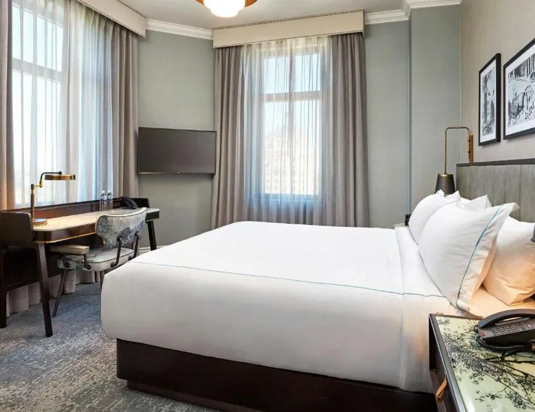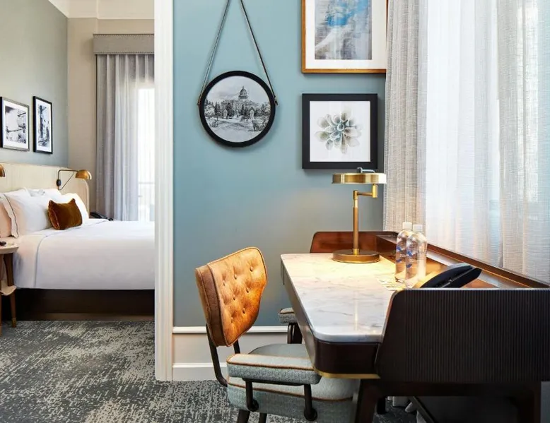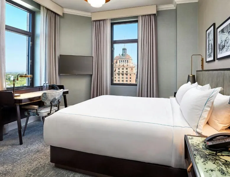 Comfortable Accommodations: The Citizen Hotel, Autograph Collection in Sacramento offers comfortable rooms with private bathrooms, work desks, and free toiletries. Each room includes a TV and seating area, ensuring a pleasant stay. Dining and Leisure: Guests can enjoy a fitness center, restaurant, and bar. The family-friendly restaurant serves American cuisine with brunch, lunch, dinner, and cocktails in a traditional and modern ambiance. Breakfast options include American and vegetarian. Convenient Location: Located 9.3 mi from Sacramento International Airport, the hotel is near attractions such as the Sacramento Convention Center (7-minute walk), California Capitol Building (5-minute walk), and Crocker Art Museum (1 mi). Paid off-site parking is available. Guest Services: The hotel provides a 24-hour front desk, concierge service, business area, and room service. Menus for special diets and breakfast in the room cater to diverse guest needs. The spacious double room features a private bathroom equipped with a bath or a shower and a hairdryer. This double room provides heating and a TV. The unit offers 2 beds.