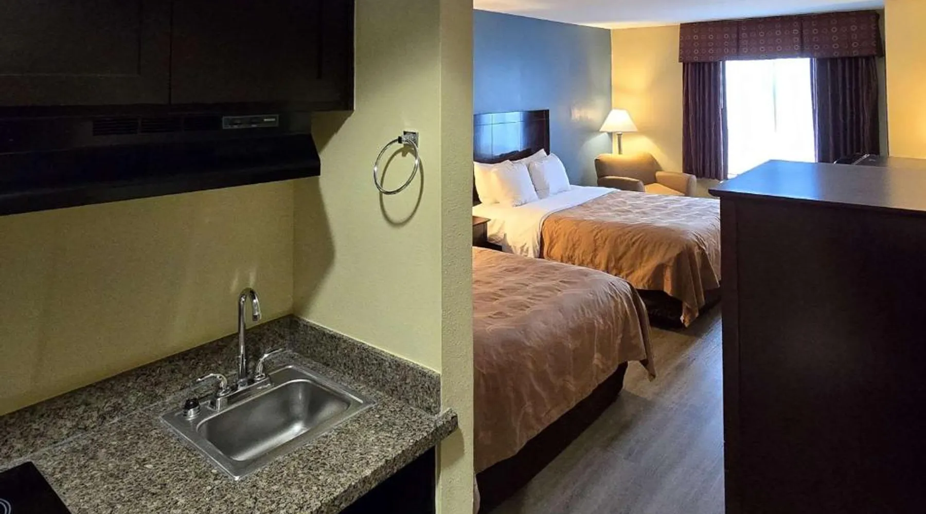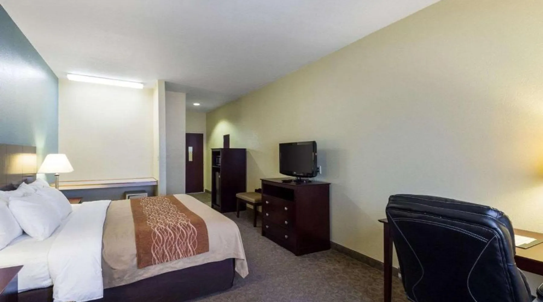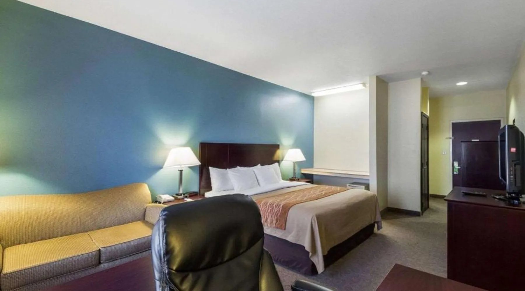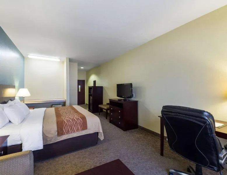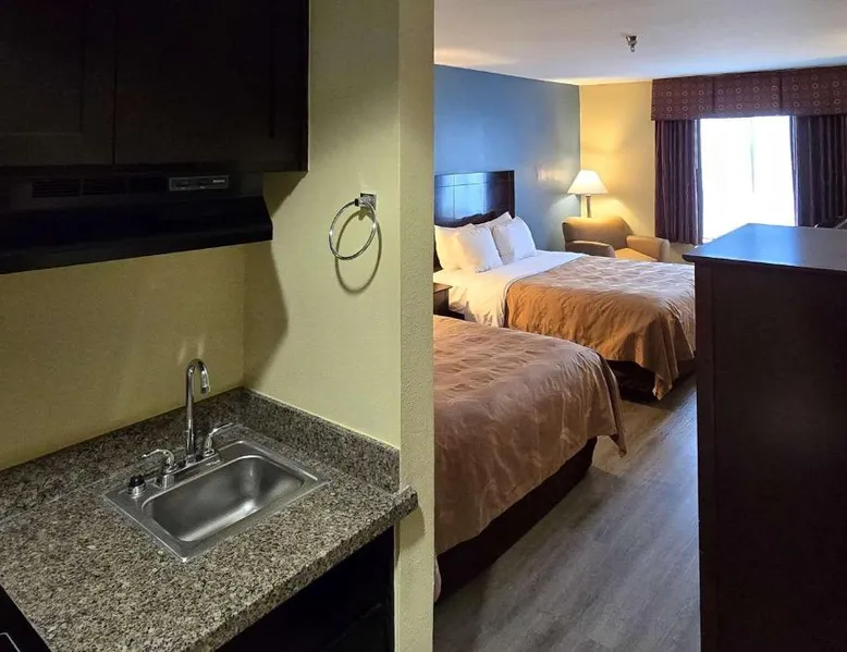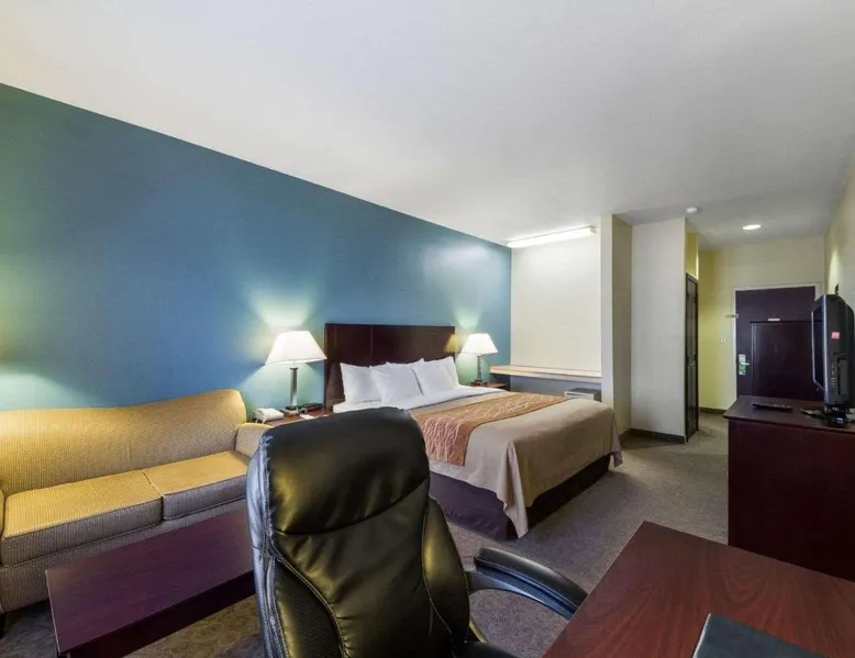 Comfortable Accommodations: Quality Inn Ingleside in Ingleside offers family rooms with air-conditioning, private bathrooms, tea and coffee makers, work desks, and parquet floors. Each room includes a kitchenette, bath, hairdryer, coffee machine, refrigerator, seating area, free toiletries, TV, and sofa. Exceptional Facilities: Guests enjoy a fitness center, seasonal outdoor swimming pool, and free WiFi. Additional amenities include a continental buffet breakfast, 24-hour front desk, daily housekeeping service, and free on-site private parking. Prime Location: Located 25 mi from Corpus Christi International Airport, the hotel is near attractions such as Dawn To Dusk Charters (5.6 mi), Rialto Theater (5.6 mi), and Texas State Aquarium (16 mi). Highly rated for its attentive staff, room cleanliness, and convenient location. The spacious double room provides air conditioning, a tea and coffee maker, as well as a private bathroom featuring a bath and a hairdryer. The double room's kitchenette, which features a refrigerator and a microwave, is available for cooking and storing food. The double room offers a seating area, a sofa, parquet floors, heating, as well as a flat-screen TV with cable channels. The unit offers 1 bed.