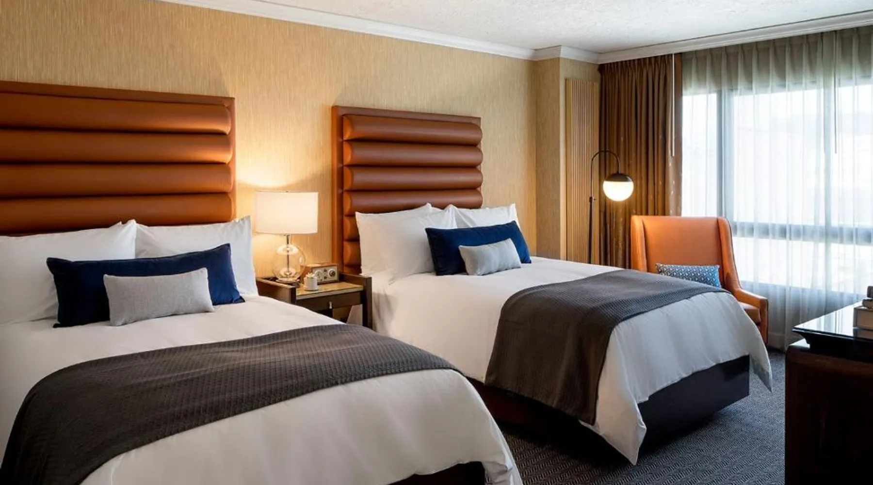Located in the heart of downtown Portland, Dossier offers accommodations with a variety of signature amenities, including a fitness center and various pet amenities. Powell's City of Books is 5 minutes' walk away, while Portland Saturday Market is within 15 minutes' walk. Each Dossier guest room is equipped with a Bluetooth clock radio, free WiFi access. Guests can also choose to select specialty pillows from the Pillow Bar at the hotel. This pet-friendly hotel offers pet beds, bowls, a toy, and treat upon arrival. Dossier also offers laundry service and valet parking. The staff of the hotel is multilingual. The Dossier is within a 15-minute walk of Portland State University, while the Portland Japanese Gardens are 2.5 mi away. The hotel is located a 10-minute walk from Portland’s Pearl District and Portland Art Museum. Alder is our new restaurant open for breakfast and dinner. New to Dossier in downtown Portland, Alder’s seasonal menu celebrates the diverse, culinary bounty of the Pacific Northwest in an upscale yet relaxed setting inspired by the traditional bistro of France. Using the nearby land and sea to source its menu of French classics like Steak Frites and Mussels Marinières, enjoy a comforting yet sophisticated menu of small plates, hearty mains and stand-out craft cocktails with an evergreen focus on quality in a romantic, elegant setting. The spacious double room provides air conditioning, a tea and coffee maker, a wardrobe, a safe deposit box and a flat-screen TV. The unit offers 2 beds.