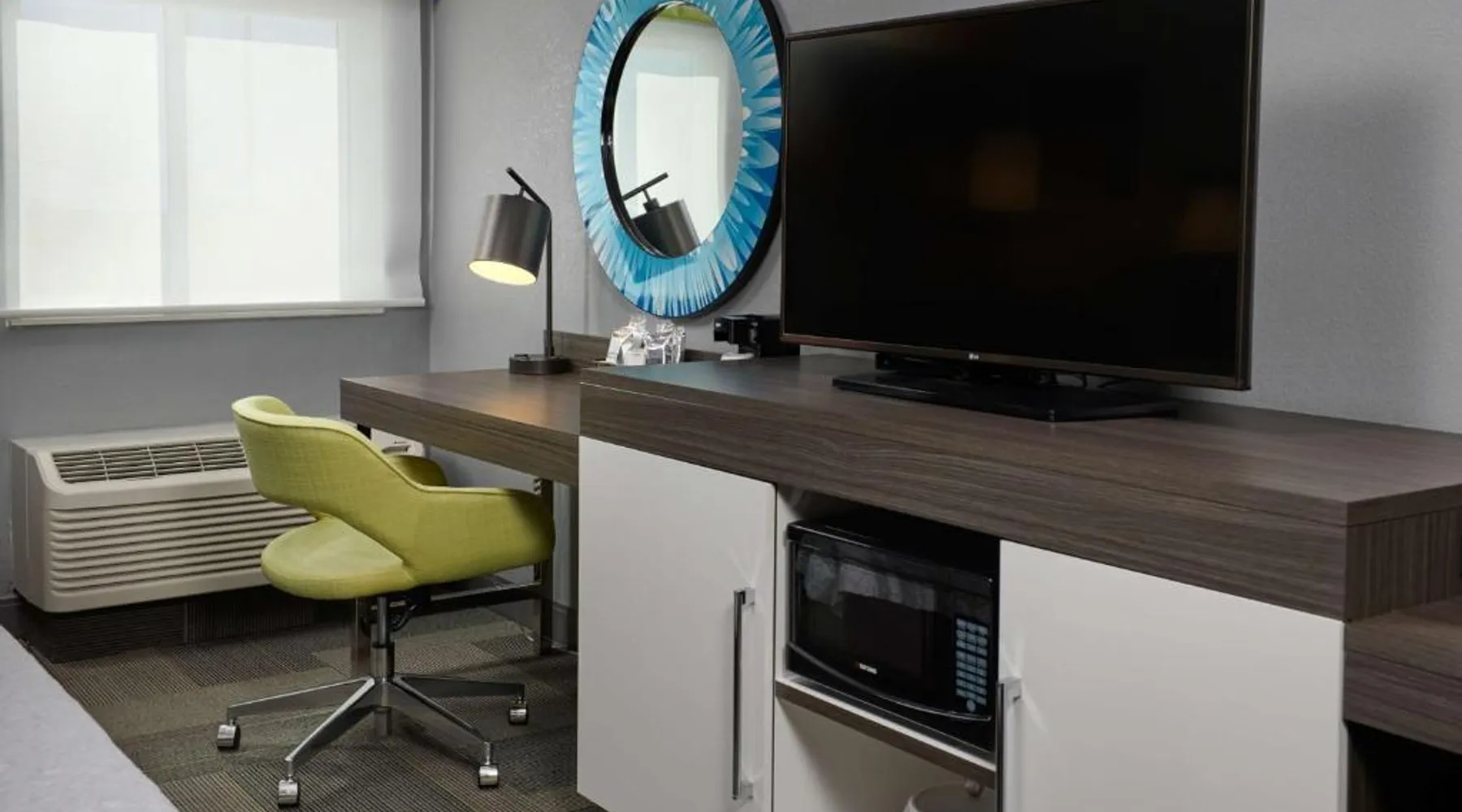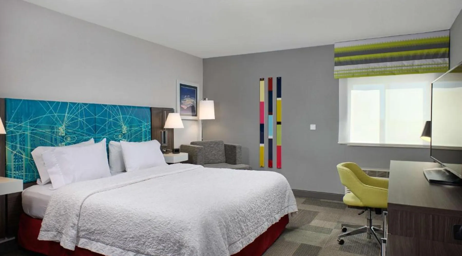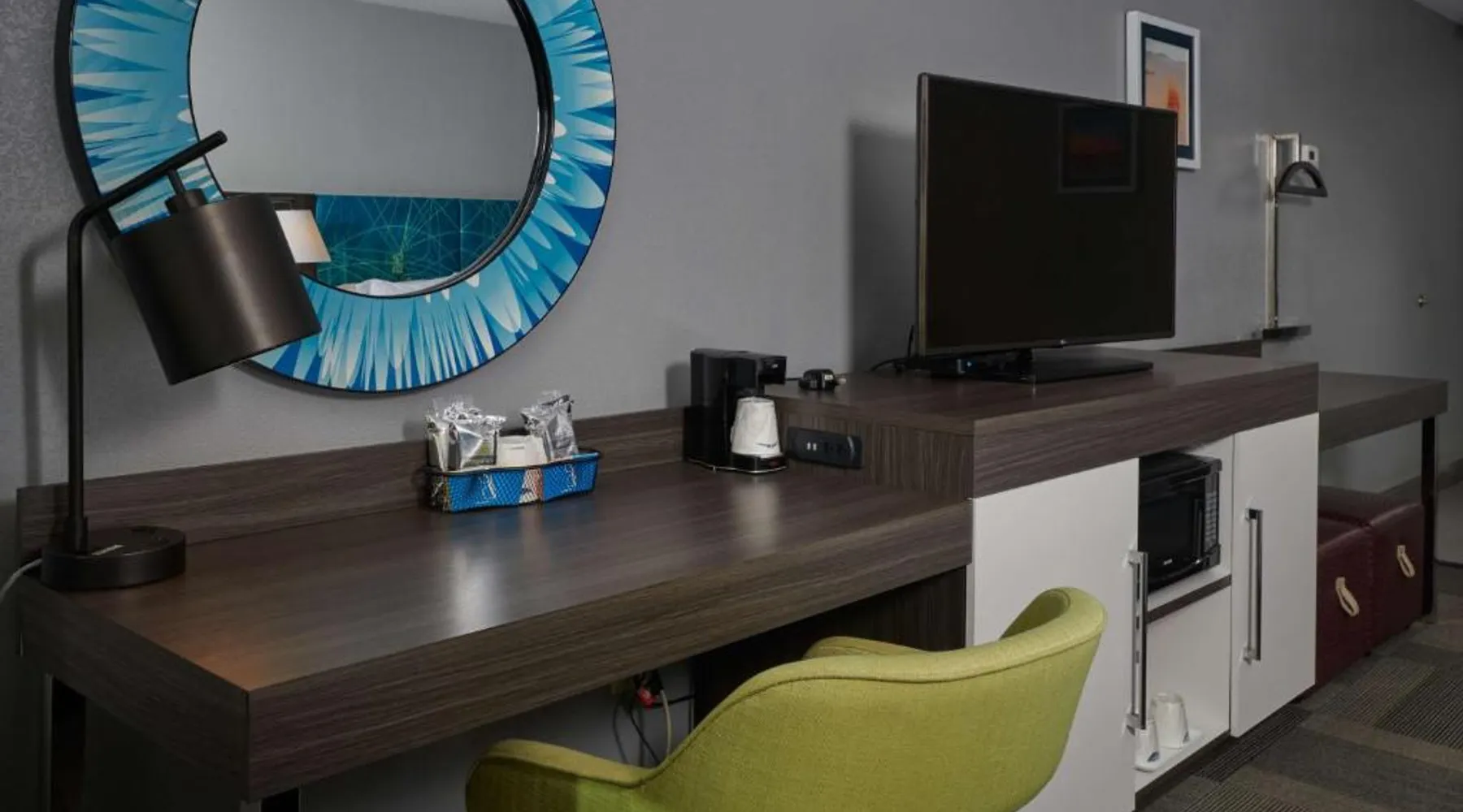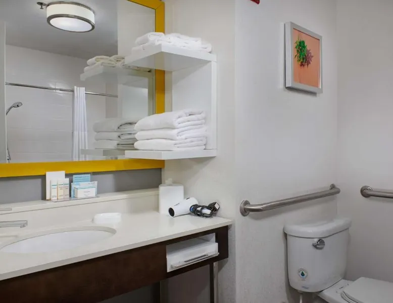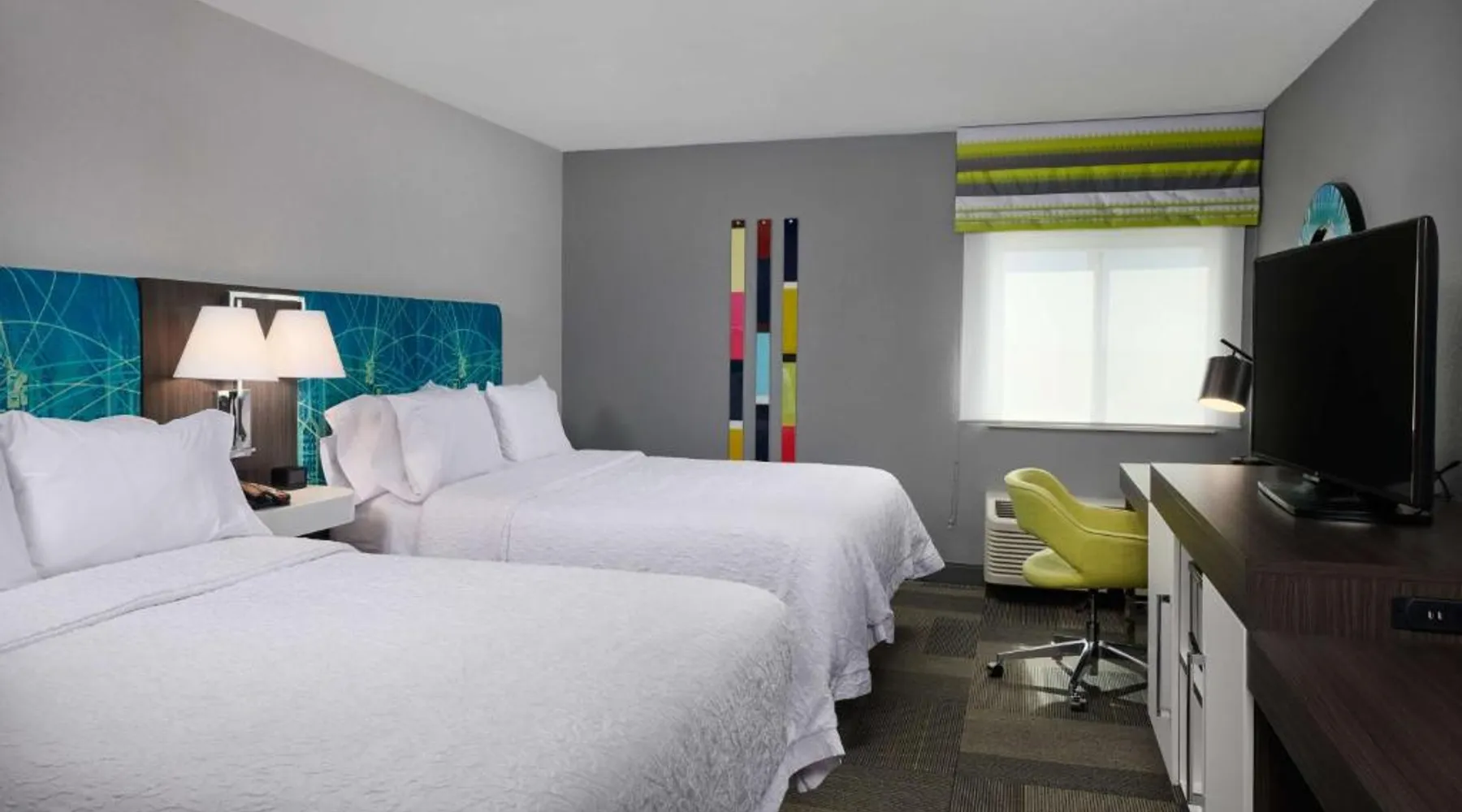 Comfortable Accommodations: Hampton Inn Alamogordo in Alamogordo offers clean, comfortable rooms with air-conditioning, free WiFi, and modern amenities. Guests enjoy amenities such as a fitness center, indoor swimming pool, and a business area. Convenient Facilities: The hotel features a fitness room, elevator, 24-hour front desk, minimarket, outdoor seating area, and express check-in and check-out services. Additional services include car hire, luggage storage, and a business area. Prime Location: Located 14 mi from White Sands National Monument, the property is highly rated for its room cleanliness, breakfast provided by the hotel, and attentive staff. This double room is air-conditioned and features a flat-screen TV with cable channels, a tea and coffee maker and heating. The unit offers 1 bed.