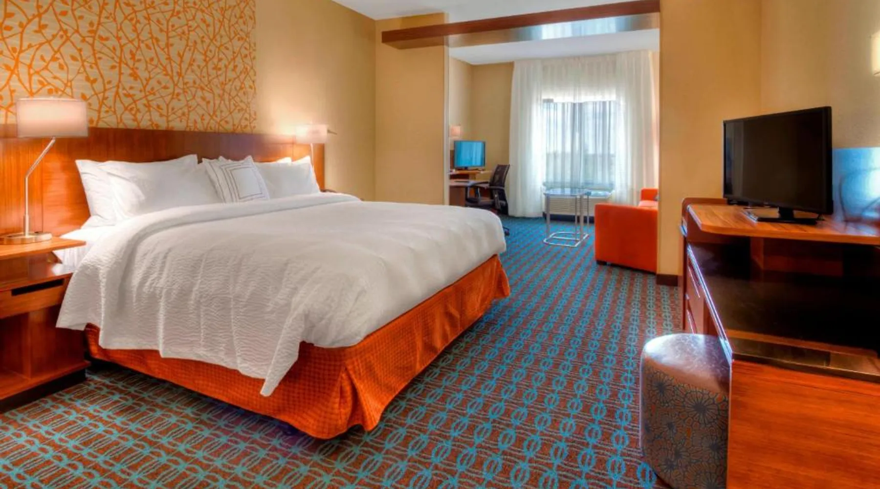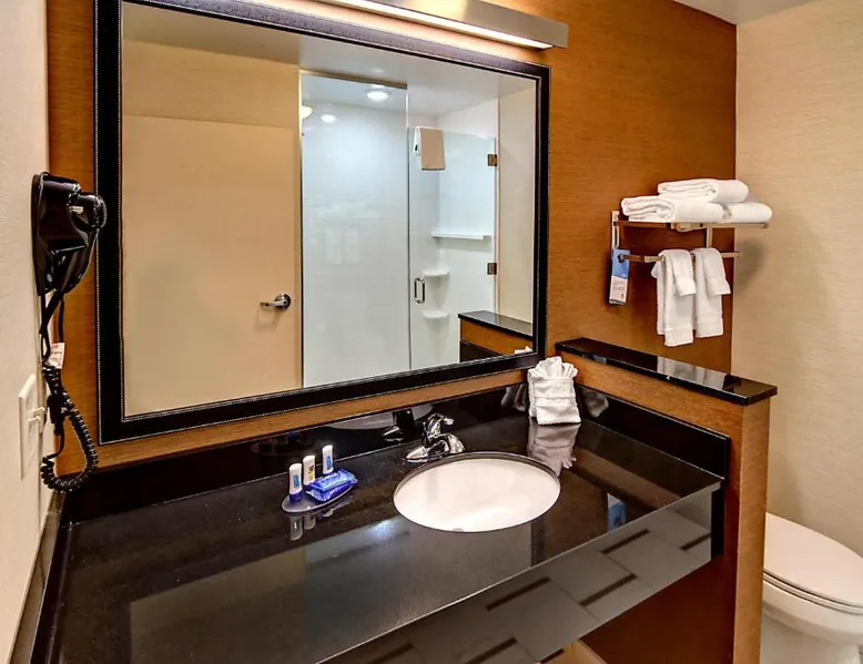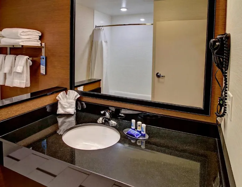 Comfortable Accommodations: Fairfield Inn and Suites Oklahoma City Yukon in Yukon offers family rooms with air-conditioning, private bathrooms, and free WiFi. Each room includes a work desk, refrigerator, and TV. Exceptional Facilities: Guests can enjoy a fitness center, indoor swimming pool, terrace, and free bicycles. Additional amenities include a 24-hour front desk, free on-site parking, and a continental buffet breakfast with juice, pancakes, and fruits. Prime Location: Located 14 mi from Will Rogers World Airport, the hotel is near attractions such as Six Flags Hurricane Harbor (11 mi) and Oklahoma City Museum of Art (14 mi). Guests appreciate the room cleanliness, attentive staff, and convenient location. This studio features a seating area and a flat-screen TV with cable channels. A microwave and a refrigerator are provided.