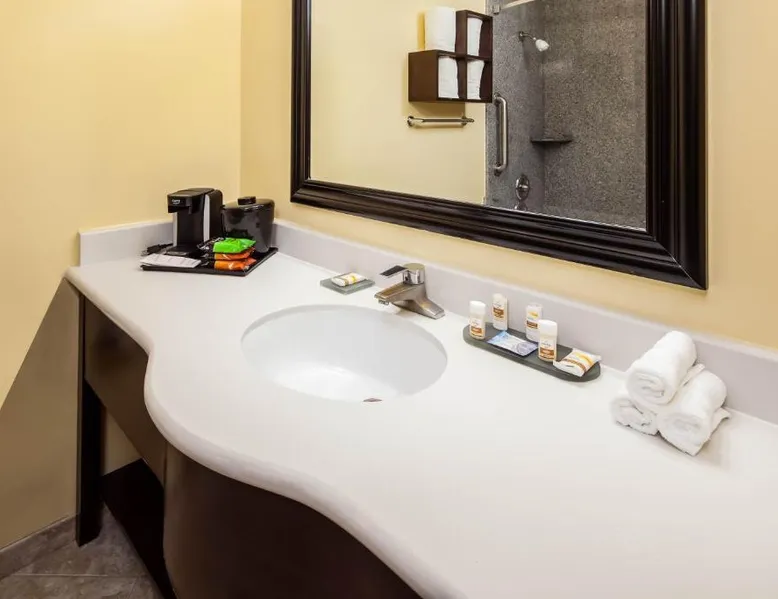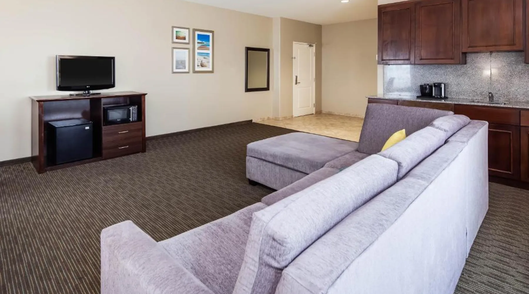 This hotel provides rooms with free Wi-Fi. A continental breakfast featuring fresh waffles is served daily. Los Angeles Airport is 5 mi from the property. A cable TV with premium channels is included in each room at La Quinta Inn & Suites Inglewood. A small fridge and microwave are provided for convenience. A fitness center and a business center are available for guest use. A convenience store is located on site. Free parking is included. Toyota Center, home of the L.A. Kings hockey team, is 3 miles away. The L.A. Convention Center is 11 miles away. Free Wi-Fi, a cable TV with premium channels, a microwave and a small fridge are included in this room. The maximum occupancy for this room is 4.