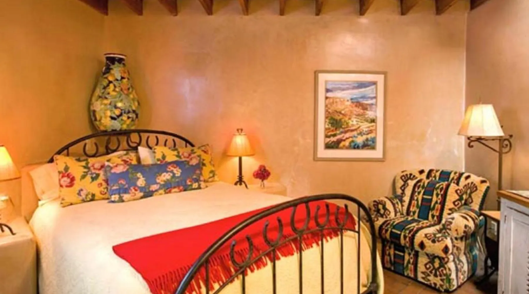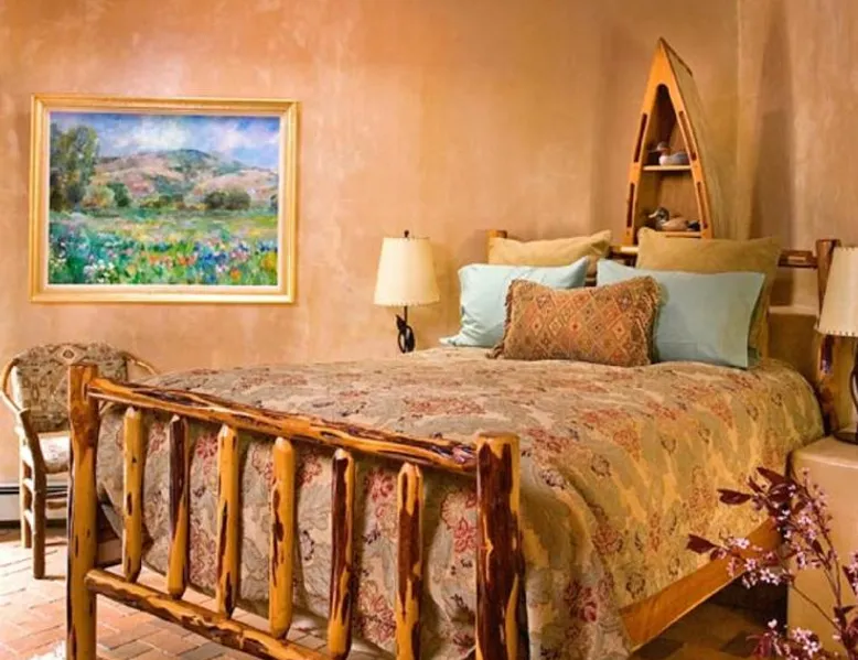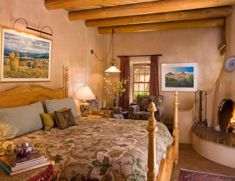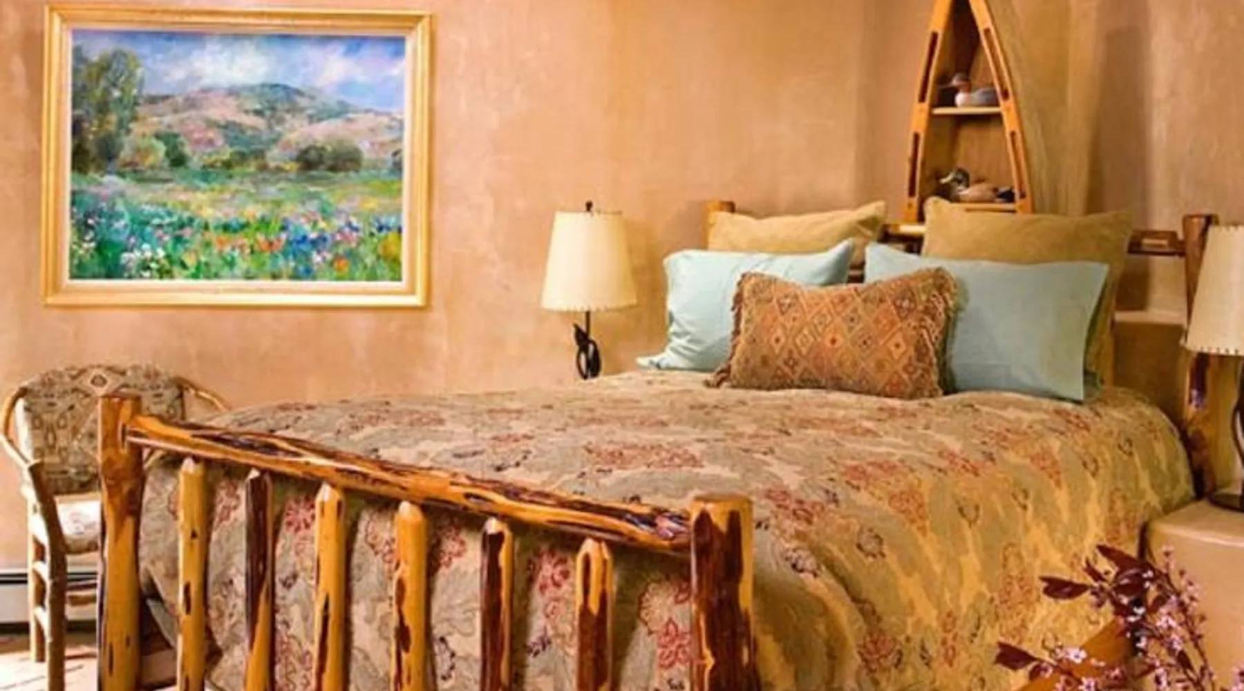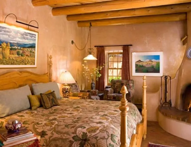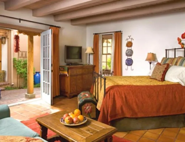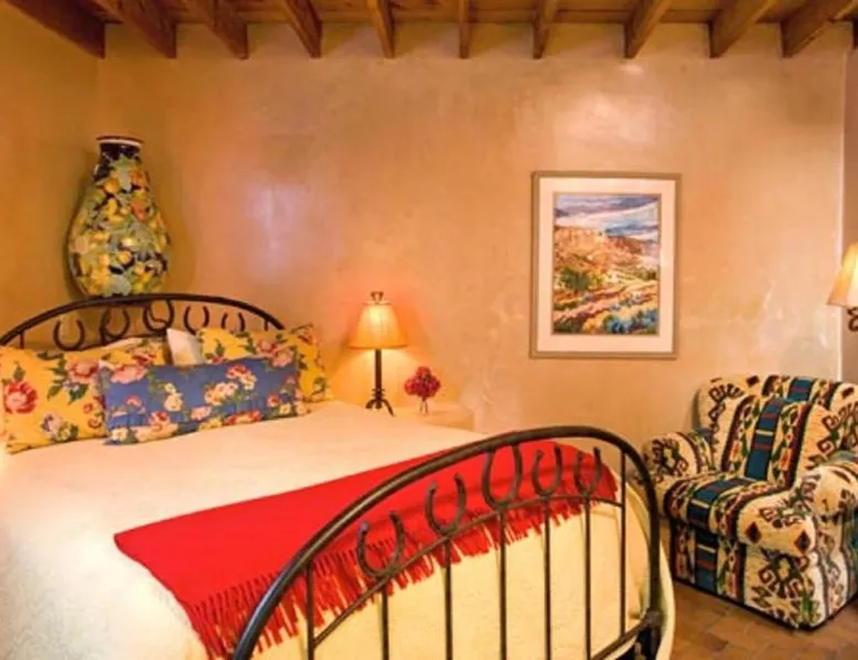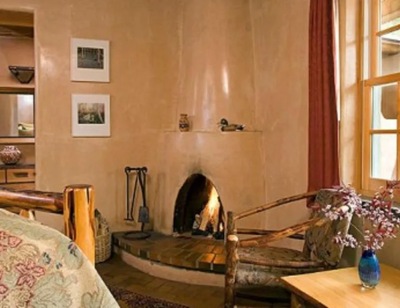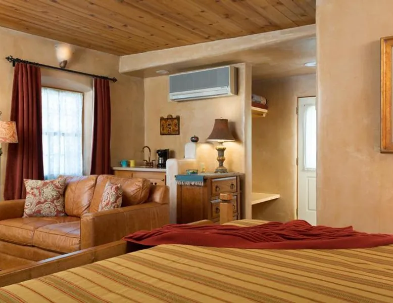 Comfortable Accommodations: El Farolito B&B Inn in Santa Fe offers family rooms with private bathrooms, air-conditioning, and garden views. Each room includes a work desk, TV, and free WiFi. Exceptional Facilities: Guests can relax on the sun terrace or in the garden. The property features a private check-in and check-out service, concierge, and free on-site parking. Delicious Breakfast: A variety of breakfast options are available, including continental, American, vegetarian, vegan, and gluten-free. Local specialties, fresh pastries, and warm dishes enhance the morning experience. Prime Location: Located less than 0.6 mi from The Plaza and Georgia O'Keeffe Museum, the inn is a short walk from the New Mexico State Capitol and New Mexico History Museum. Santa Fe Municipal Airport is 8.7 mi away. Also known as the La Paz Room, this room offers lodge-style furnishings and includes a flat-screen cable TV, a Kiva fireplace, a refrigerator, a coffee maker and a patio.
