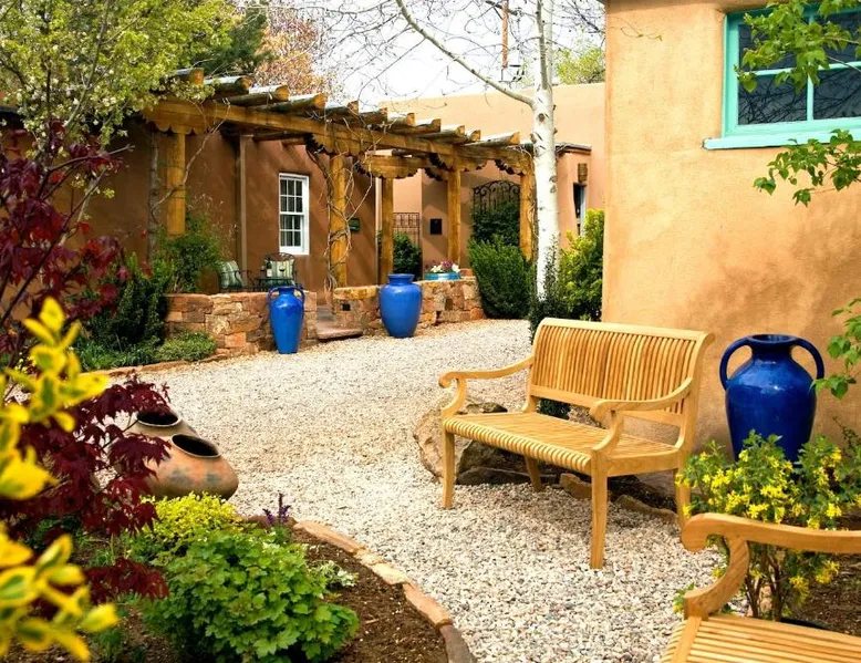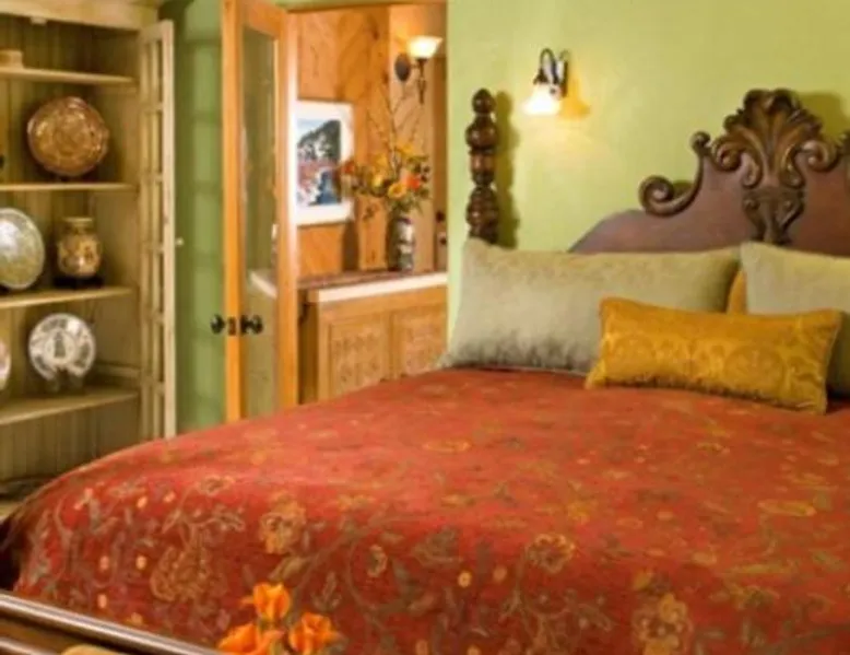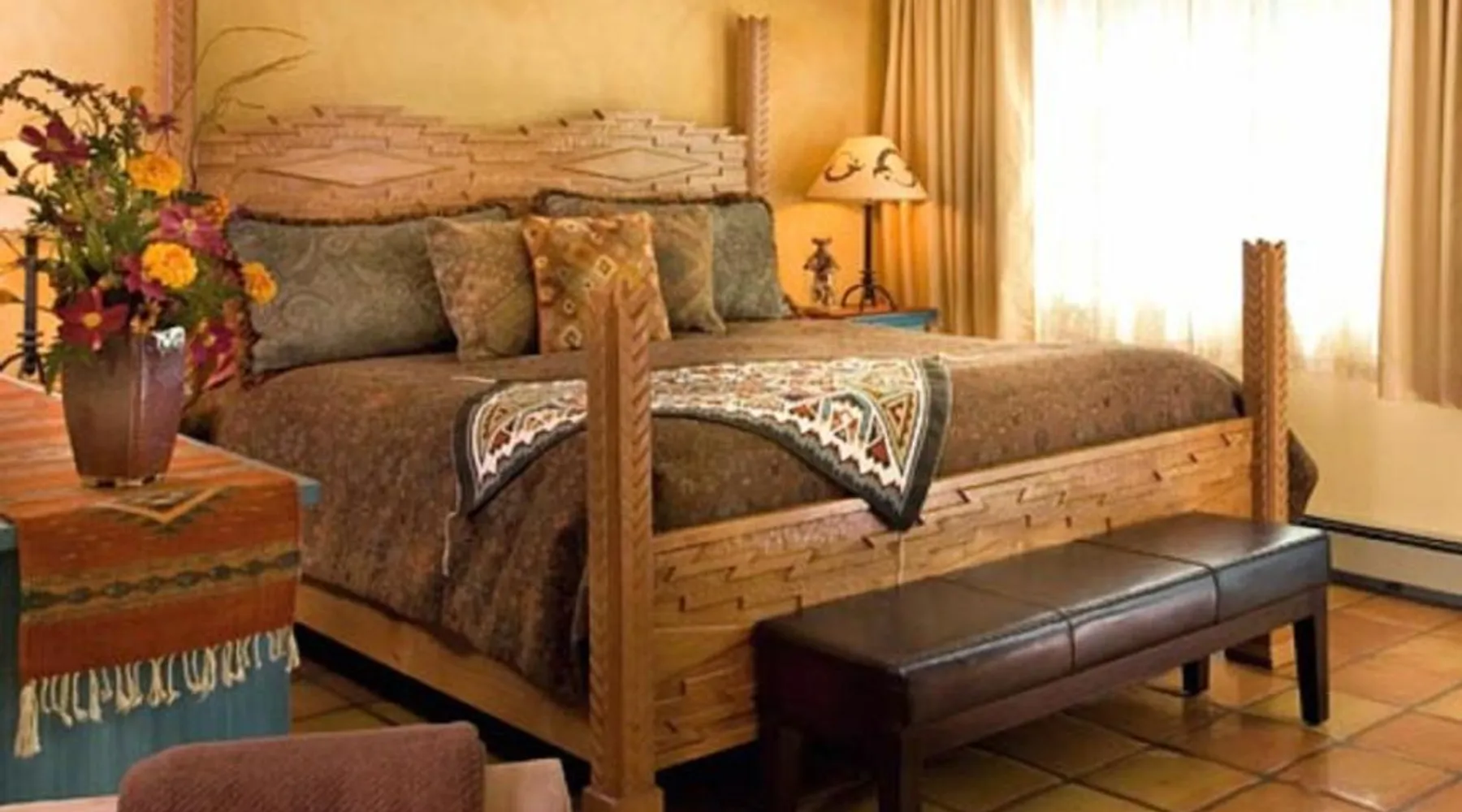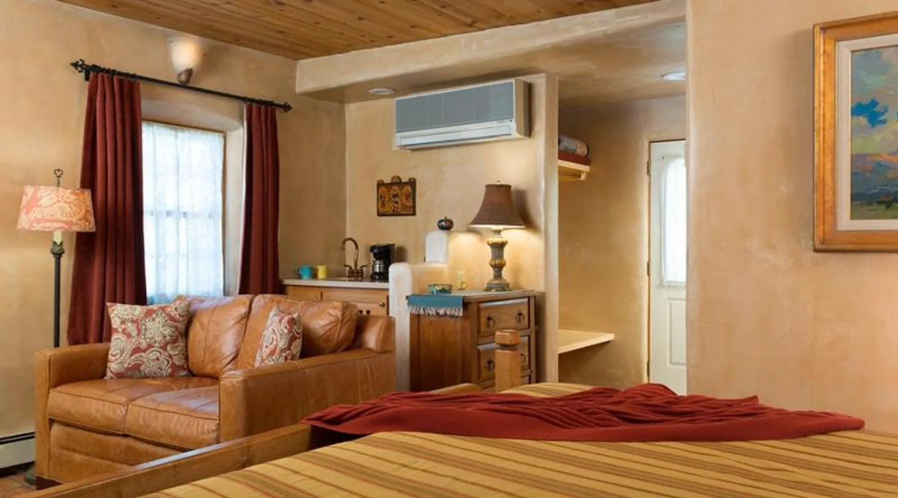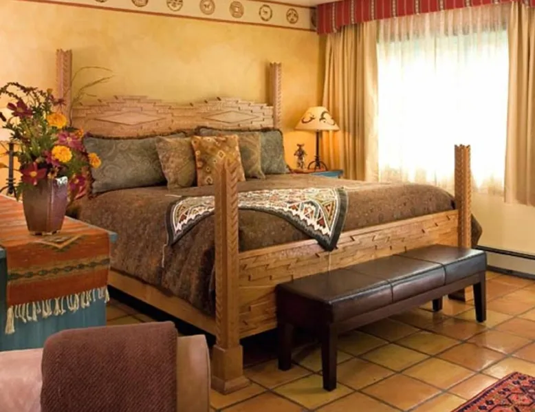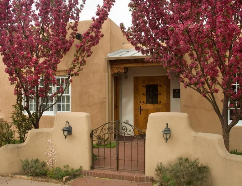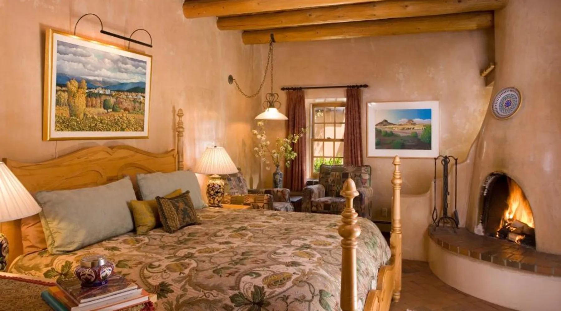 Comfortable Accommodations: El Farolito B&B Inn in Santa Fe offers family rooms with private bathrooms, air-conditioning, and garden views. Each room includes a work desk, TV, and free WiFi. Exceptional Facilities: Guests can relax on the sun terrace or in the garden. The property features a private check-in and check-out service, concierge, and free on-site parking. Delicious Breakfast: A variety of breakfast options are available, including continental, American, vegetarian, vegan, and gluten-free. Local specialties, fresh pastries, and warm dishes enhance the morning experience. Prime Location: Located less than 0.6 mi from The Plaza and Georgia O'Keeffe Museum, the inn is a short walk from the New Mexico State Capitol and New Mexico History Museum. Santa Fe Municipal Airport is 8.7 mi away. Also known as the La Paz Room, this room offers lodge-style furnishings and includes a flat-screen cable TV, a Kiva fireplace, a refrigerator, a coffee maker and a patio.