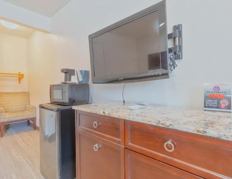 Located in the Sierra Foothills across from Mariposa Visitor Center, this hotel is 2 miles from California State Mining & Mineral Museum. Rooms at Yosemite Inn are decorated in warm colors and have wooden furnishings. They offer satellite TV and a seating area. Each room also includes a microwave and refrigerator. Restaurants serving steaks and international cuisine are within 1 mile of the hotel. Yosemite Inn is 2 minutes' drive from the Mariposa Museum & History Center. The West Gate of Yosemite National Park is 31 miles away. Please note that the rate is based on 2 guests. Maximum occupancy is 2 (see Hotel Policies) .