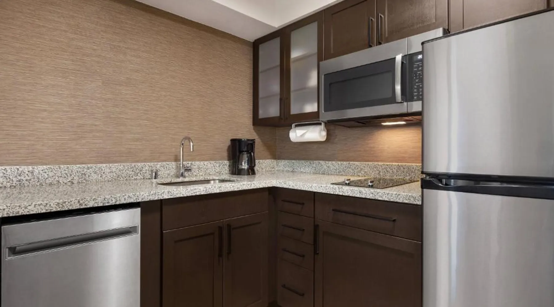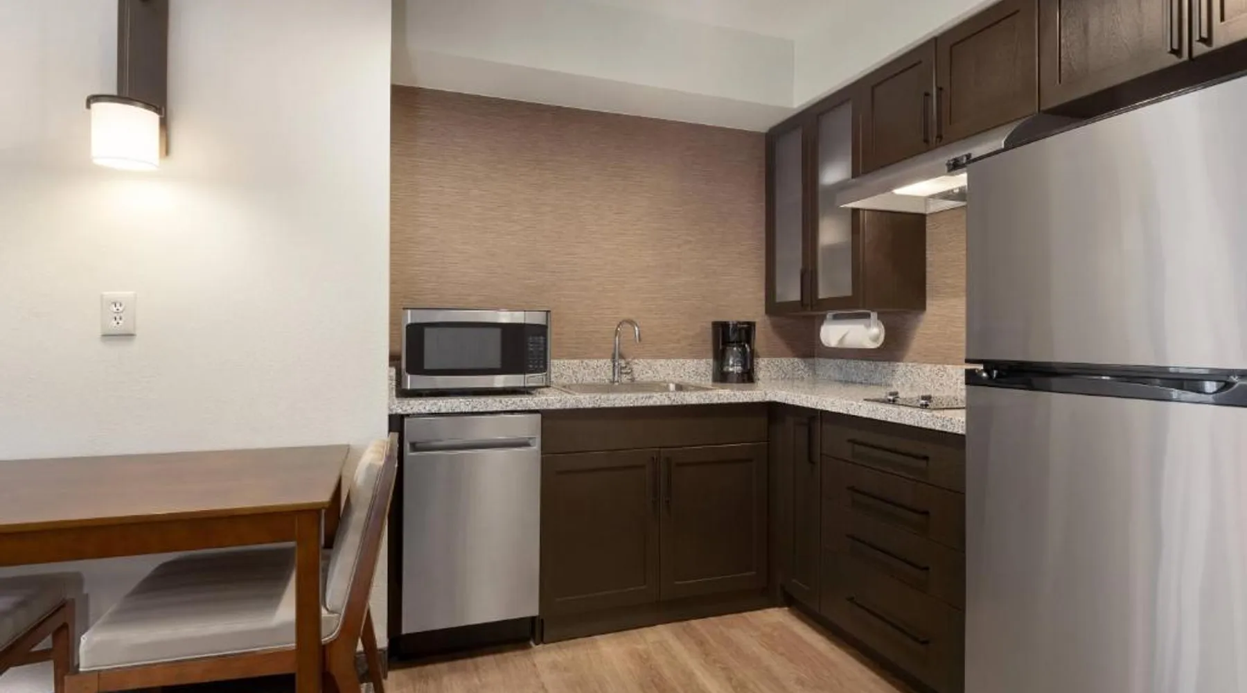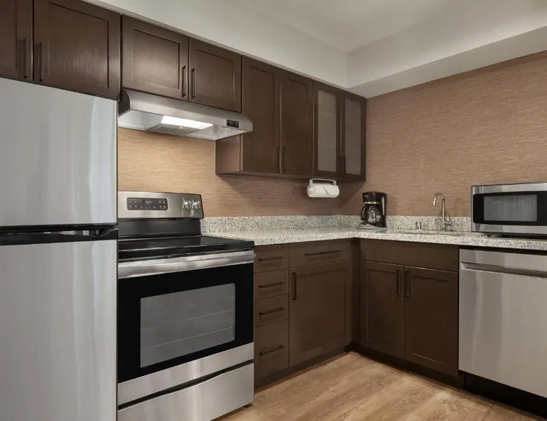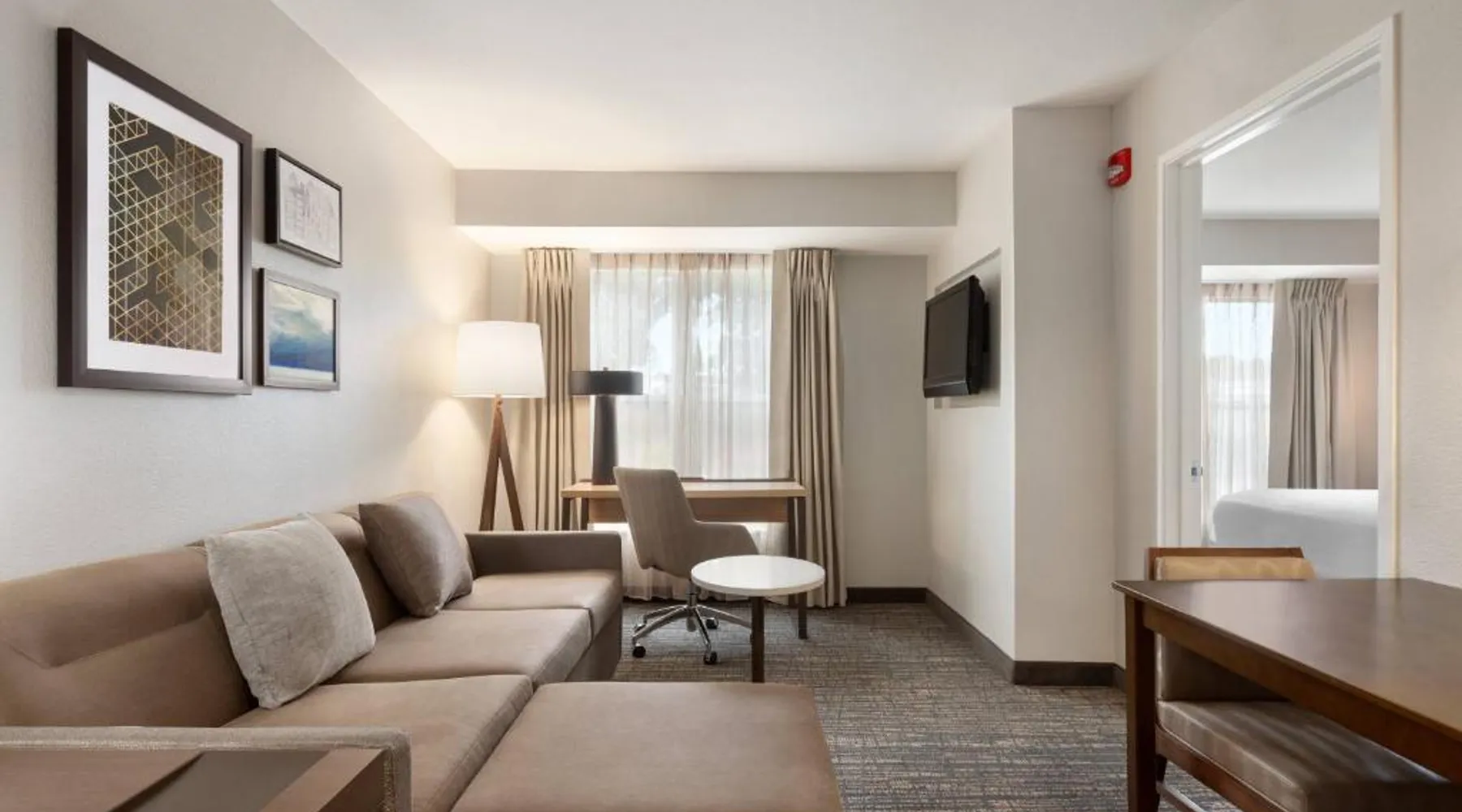 Comfortable Accommodations: Residence Inn By Marriott Vacaville in Vacaville offers spacious rooms with air-conditioning, private bathrooms, and kitchen facilities. Guests enjoy soundproofing, private entrances, and modern amenities including a work desk and TV. Leisure Facilities: The hotel features an indoor swimming pool, garden, terrace, and free WiFi. Additional amenities include a fitness room, outdoor seating area, and family rooms, ensuring a pleasant stay for all visitors. Convenient Location: Located 35 mi from Buchanan Field Airport, the hotel is near attractions such as University Of California, Davis (16 mi), Napa Valley Wine Train (29 mi), and Six Flags Discovery Kingdom (24 mi). An ice-skating rink is also in the vicinity. Guest Services: Guests benefit from a 24-hour front desk, grocery delivery, and paid parking. The hotel offers an American buffet breakfast and a variety of room options including kitchenettes and sofa beds. Offering a fully equipped kitchen with a dinning area, this studio offers a living room with cable TV and an private bathroom.