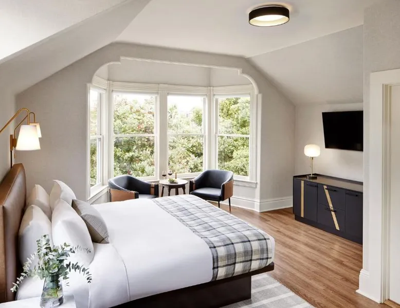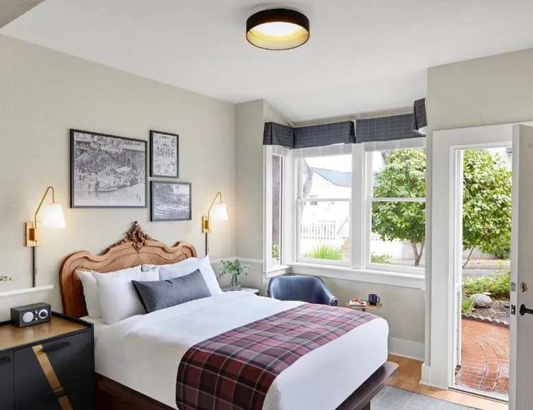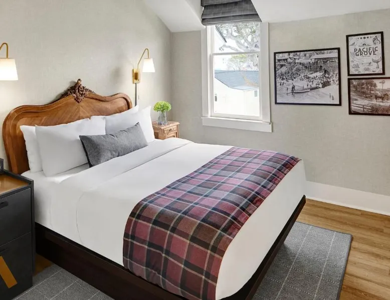 Comfortable Accommodations: Gosby House Inn, A Four Sisters Inn in Pacific Grove offers a garden and free WiFi. Guests enjoy private bathrooms with walk-in showers, balconies, and sofa beds. Convenient Facilities: The inn provides concierge, housekeeping, express check-in and check-out, tour desk, and luggage storage. Additional amenities include bathrobes, free toiletries, and a fireplace. Prime Location: Located 5.6 mi from Monterey Regional Airport, the inn is a 7-minute walk from Lovers Point Beach and 1.2 mi from Monterey Bay Aquarium. Nearby attractions include Cannery Row and Pebble Beach. Guest Services: Guests appreciate the breakfast provided by the property, convenient location, and attentive staff. Highly rated for its excellent service and support. Featuring free toiletries and bathrobes, this double room includes a private bathroom with a shower and a hairdryer. This double room has a wardrobe, parquet floors, TV, as well as wine/champagne for guests. The unit has 1 bed.