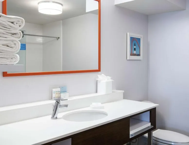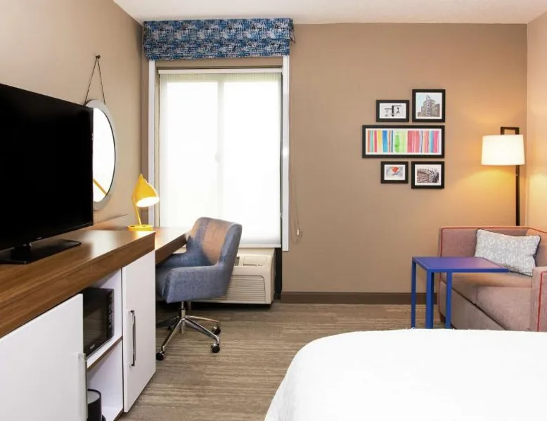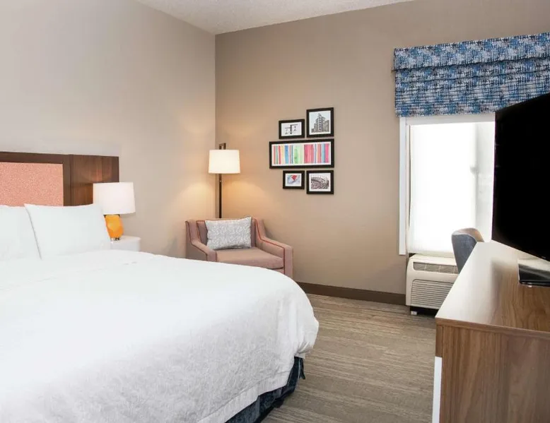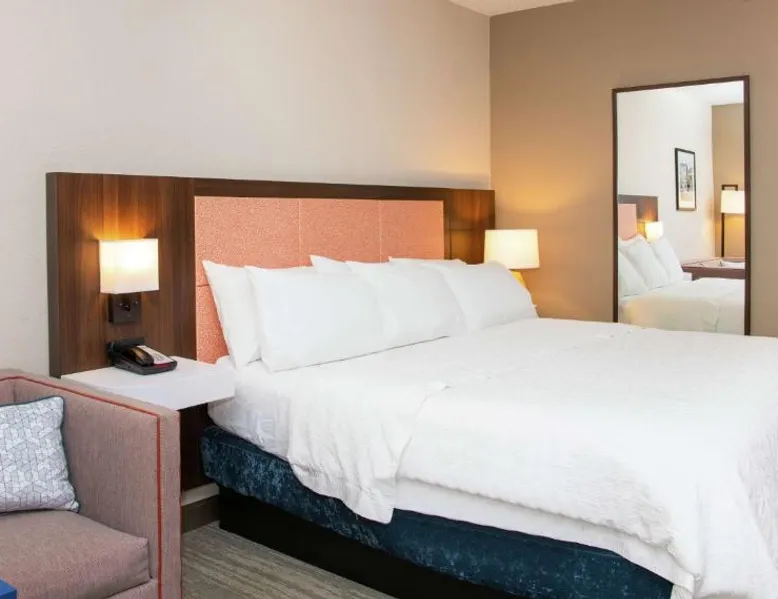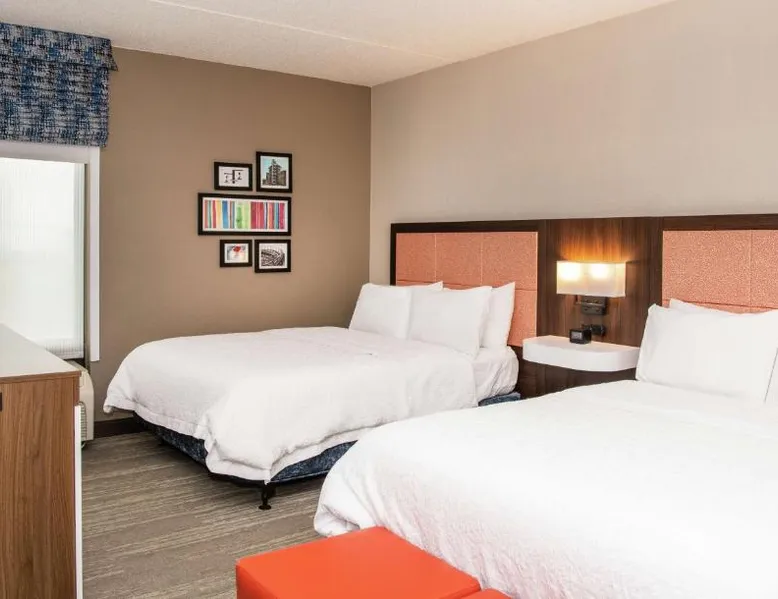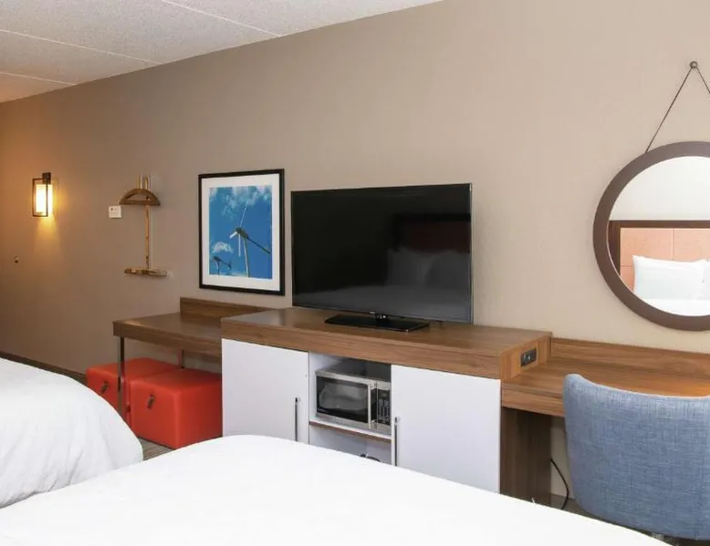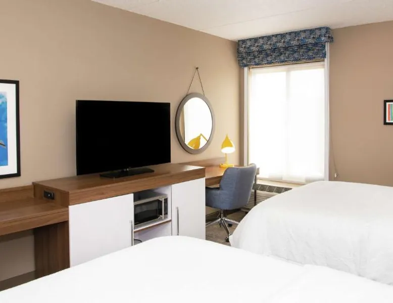 Comfortable Accommodations: Hampton Inn Erie-South in Erie offers air-conditioned rooms with free WiFi, tea and coffee makers, and flat-screen TVs. Each room includes a refrigerator, microwave, and complimentary toiletries. Facilities and Services: Guests can enjoy a fitness center, indoor swimming pool, and lounge. Additional amenities include a business area, minimarket, and outdoor seating. Free on-site private parking is available. Dining Options: A continental, American, and buffet breakfast is served daily. The property also provides a 24-hour front desk, elevator, and business area. Local Attractions: Erie International Airport is 7.5 mi away. Nearby attractions include Erie Zoo (4.3 mi), Presque Isle Downs and Casino (3.7 mi), and Erie Art Museum (6.8 mi). This double room features air conditioning, a tea and coffee maker and a flat-screen TV. The unit offers 1 bed.