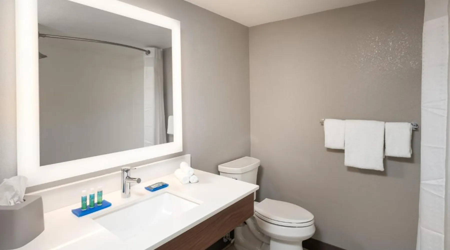 Just off the Florida Turnpike in Boca Raton, minutes from shopping and golf, this Holiday Inn Express offers guests a free breakfast buffet every morning and guestrooms with coffeemakers. Guests at the Holiday Inn Express Boca Raton - West can enjoy a swim in the outdoor swimming pool or work out in the fitness center. Additional hotel amenities include free WiFi. Guestrooms feature a small refrigerator, coffee maker. and a flat-screen TV. Private bathrooms come equipped with a hair dryer and separate vanity. Within 1.9 mi of the West Boca Raton Holiday Inn Express, guests can go shopping at the Town Center Mall or visit the Evert Tennis Academy. Guests can also explore the Loxahatchee Wildlife Refuge, which is within 18 minutes' drive of the hotel. Featuring a roll-in shower, this guestrooms includes a small refrigerator, flat-screen TV, and private bathroom.
