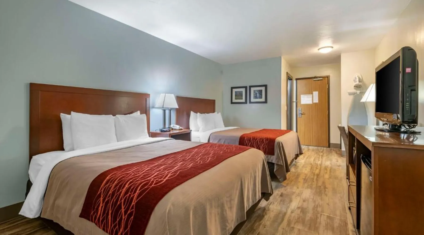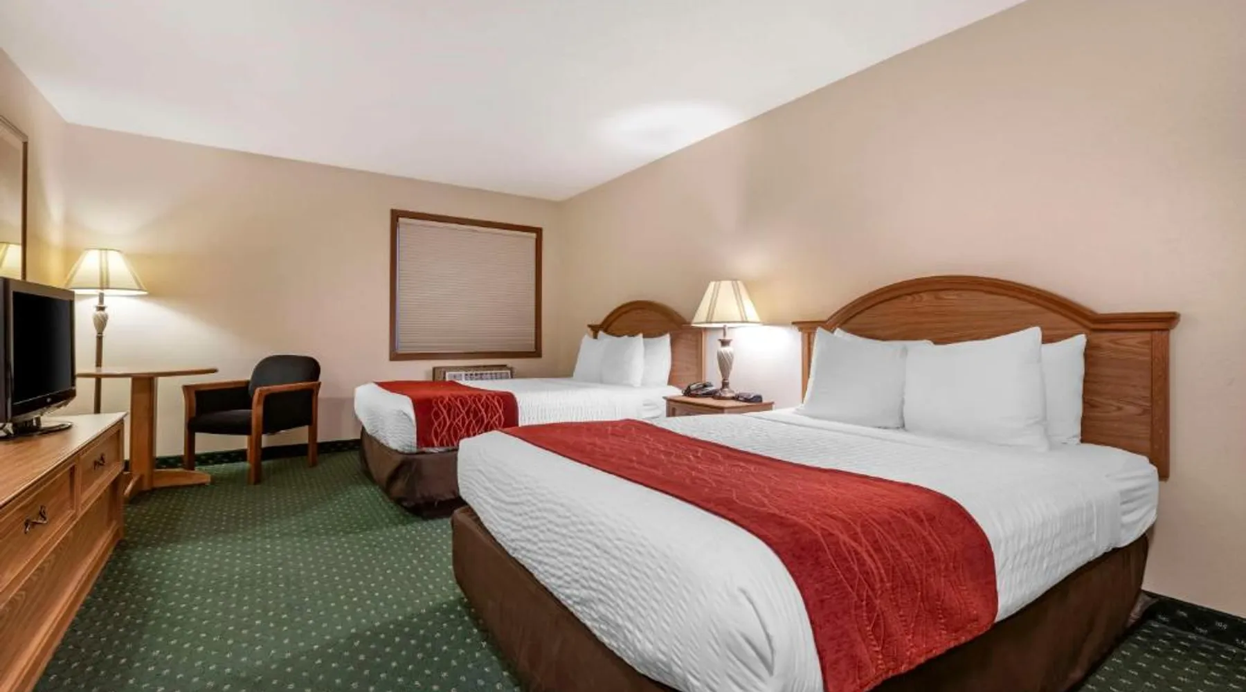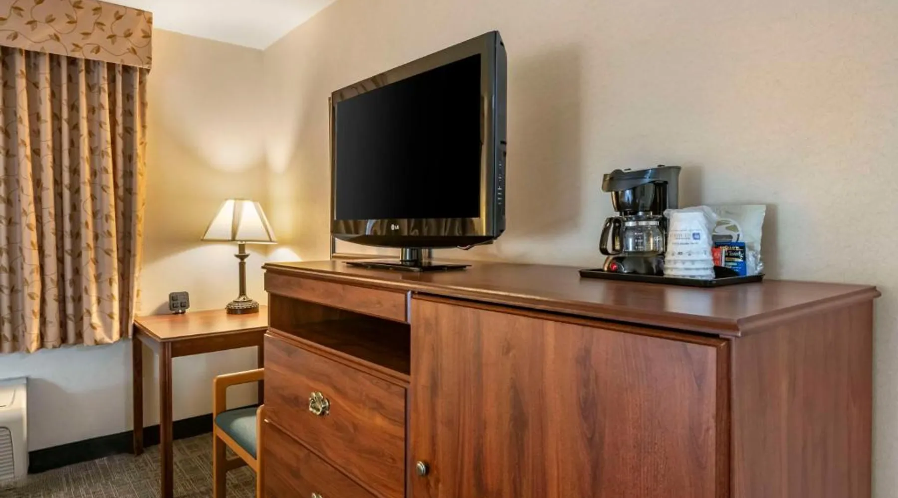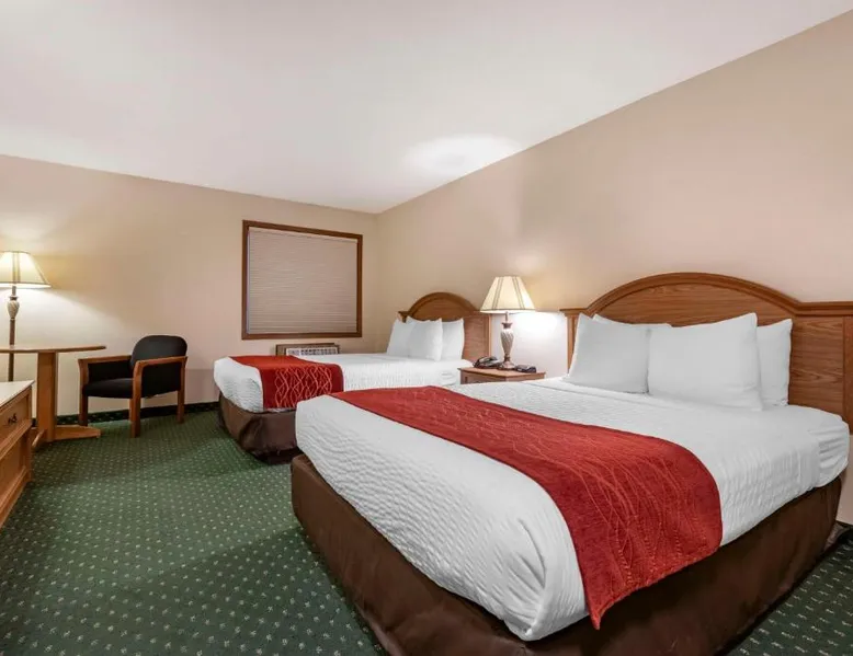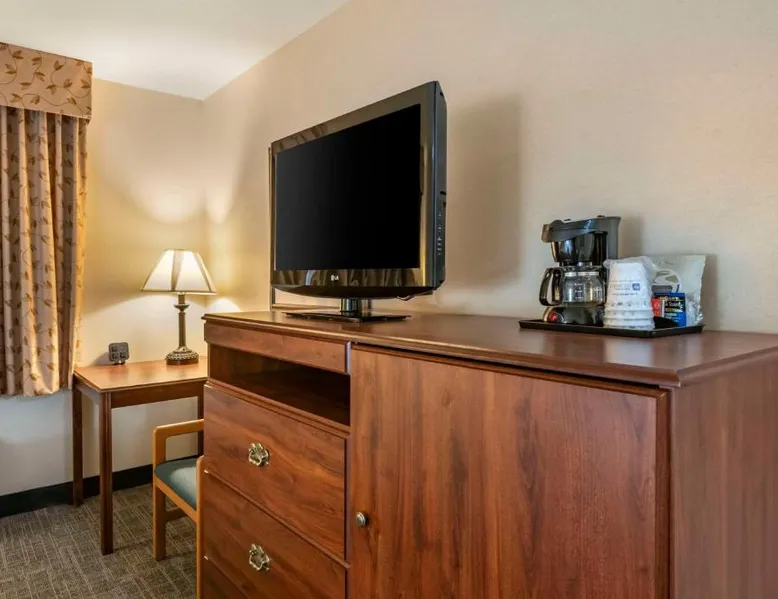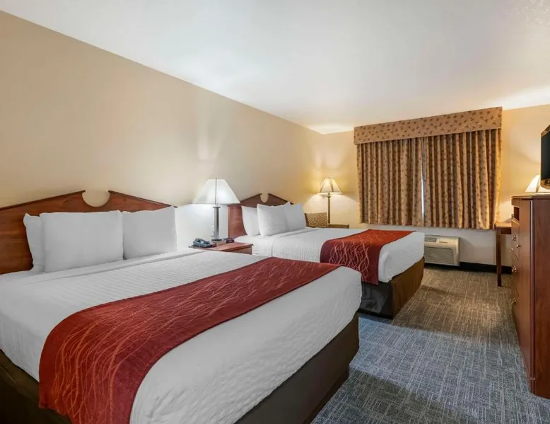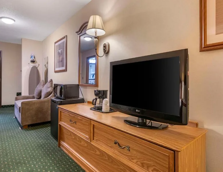 Comfortable Accommodations: SureStay Plus Hotel by Best Western Buffalo in Buffalo offers air-conditioned rooms with private bathrooms, tea and coffee makers, and free WiFi. Each room includes a work desk, refrigerator, microwave, and TV. Leisure Facilities: Guests can enjoy a fitness center, indoor swimming pool, and hot tub. The hotel provides free on-site parking, an outdoor seating area, and express check-in and check-out services. Guest Services: The property offers a elevator, free WiFi in public areas, and a 24-hour reception staffed with English-speaking personnel. Breakfast is highly rated by guests, and room cleanliness is maintained to high standards. Location: Located 32 mi from Sheridan County Airport, the hotel is praised for its excellent service and comfortable accommodations. This double room provides a flat-screen TV.