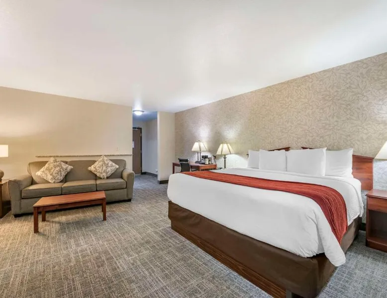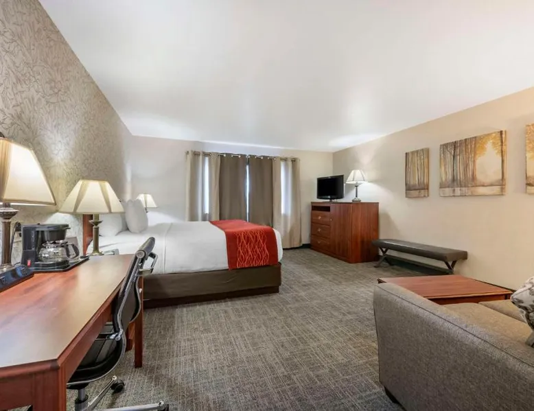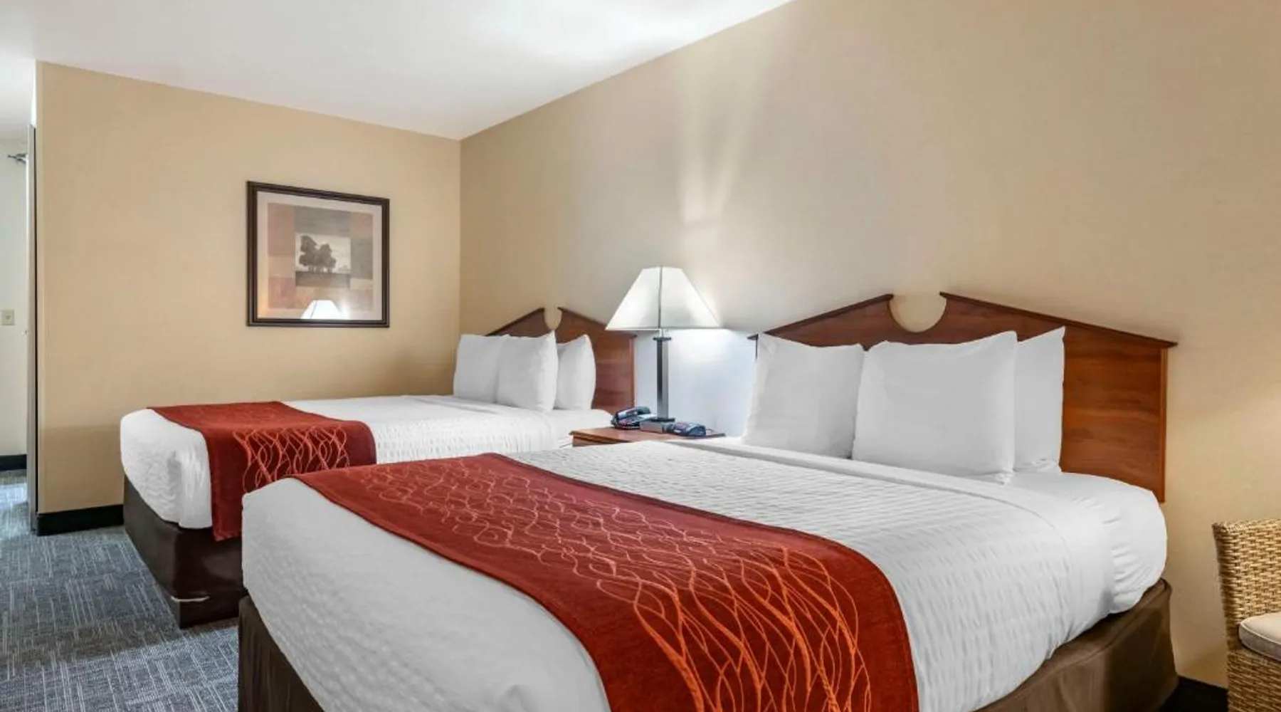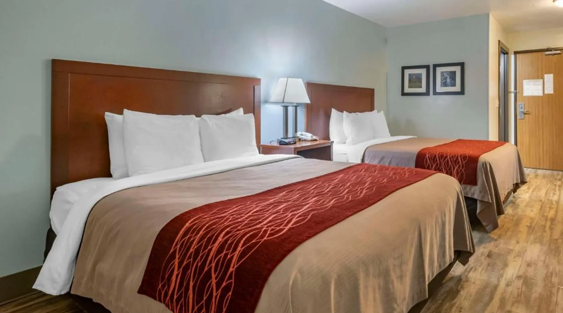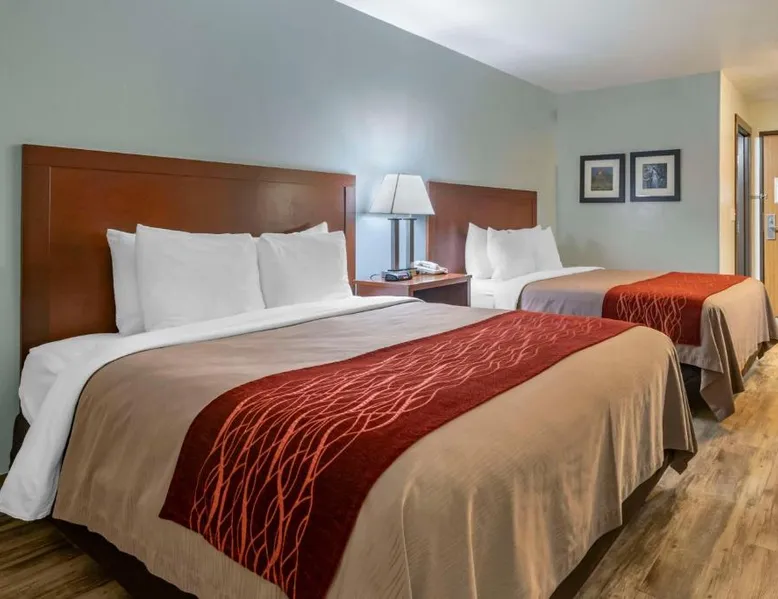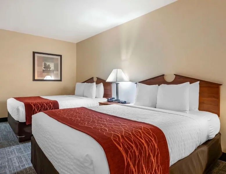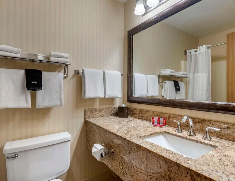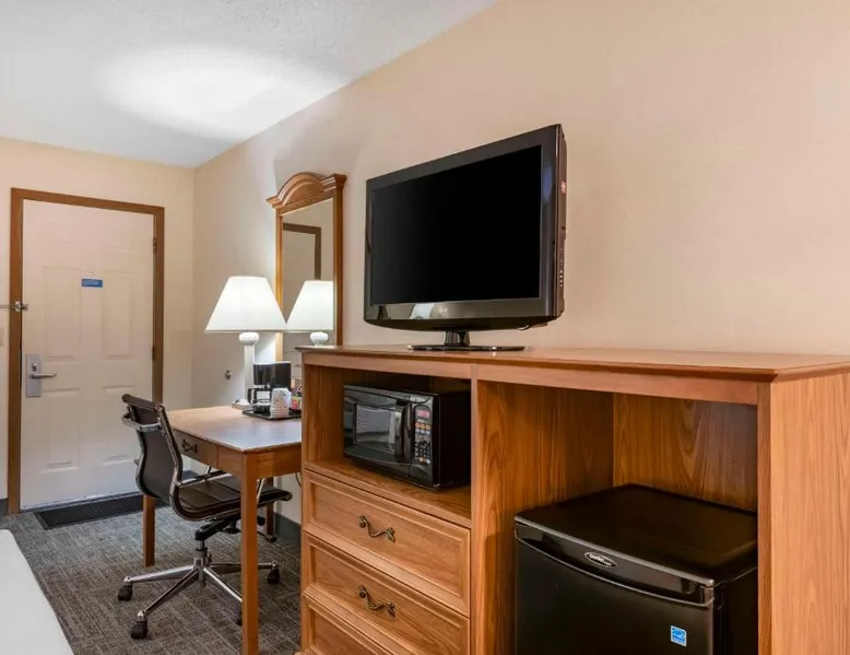 Comfortable Accommodations: SureStay Plus Hotel by Best Western Buffalo in Buffalo offers air-conditioned rooms with private bathrooms, tea and coffee makers, and free WiFi. Each room includes a work desk, refrigerator, microwave, and TV. Leisure Facilities: Guests can enjoy a fitness center, indoor swimming pool, and hot tub. The hotel provides free on-site parking, an outdoor seating area, and express check-in and check-out services. Guest Services: The property offers a elevator, free WiFi in public areas, and a 24-hour reception staffed with English-speaking personnel. Breakfast is highly rated by guests, and room cleanliness is maintained to high standards. Location: Located 32 mi from Sheridan County Airport, the hotel is praised for its excellent service and comfortable accommodations. This double room provides a flat-screen TV.