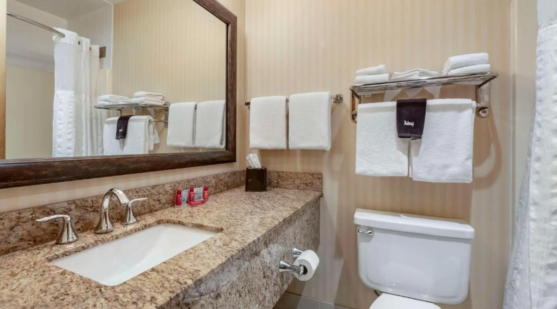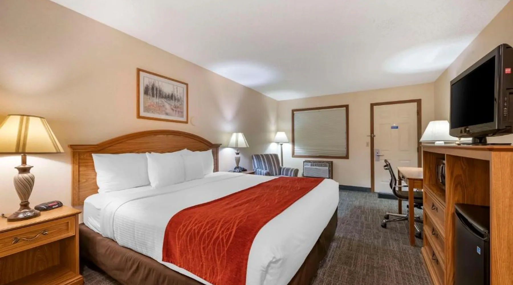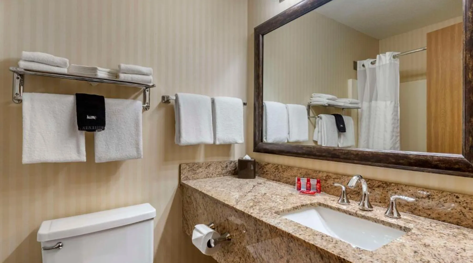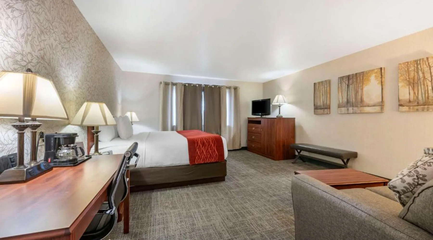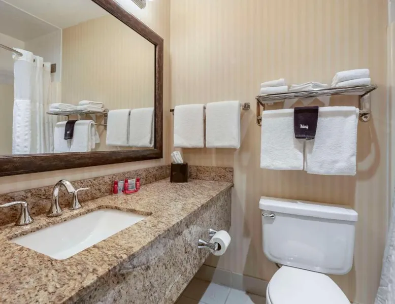 Comfortable Accommodations: SureStay Plus Hotel by Best Western Buffalo in Buffalo offers air-conditioned rooms with private bathrooms, tea and coffee makers, and free WiFi. Each room includes a work desk, refrigerator, microwave, and TV. Leisure Facilities: Guests can enjoy a fitness center, indoor swimming pool, and hot tub. The hotel provides free on-site parking, an outdoor seating area, and express check-in and check-out services. Guest Services: The property offers a elevator, free WiFi in public areas, and a 24-hour reception staffed with English-speaking personnel. Breakfast is highly rated by guests, and room cleanliness is maintained to high standards. Location: Located 32 mi from Sheridan County Airport, the hotel is praised for its excellent service and comfortable accommodations. This double room provides a flat-screen TV.