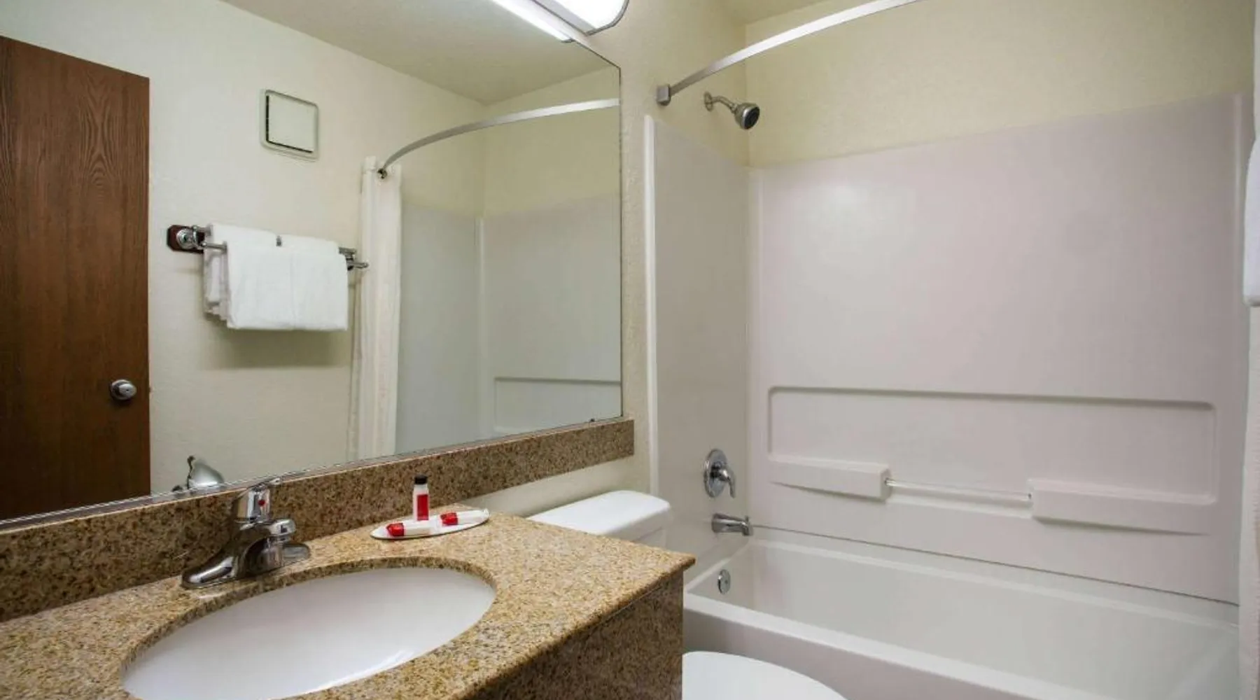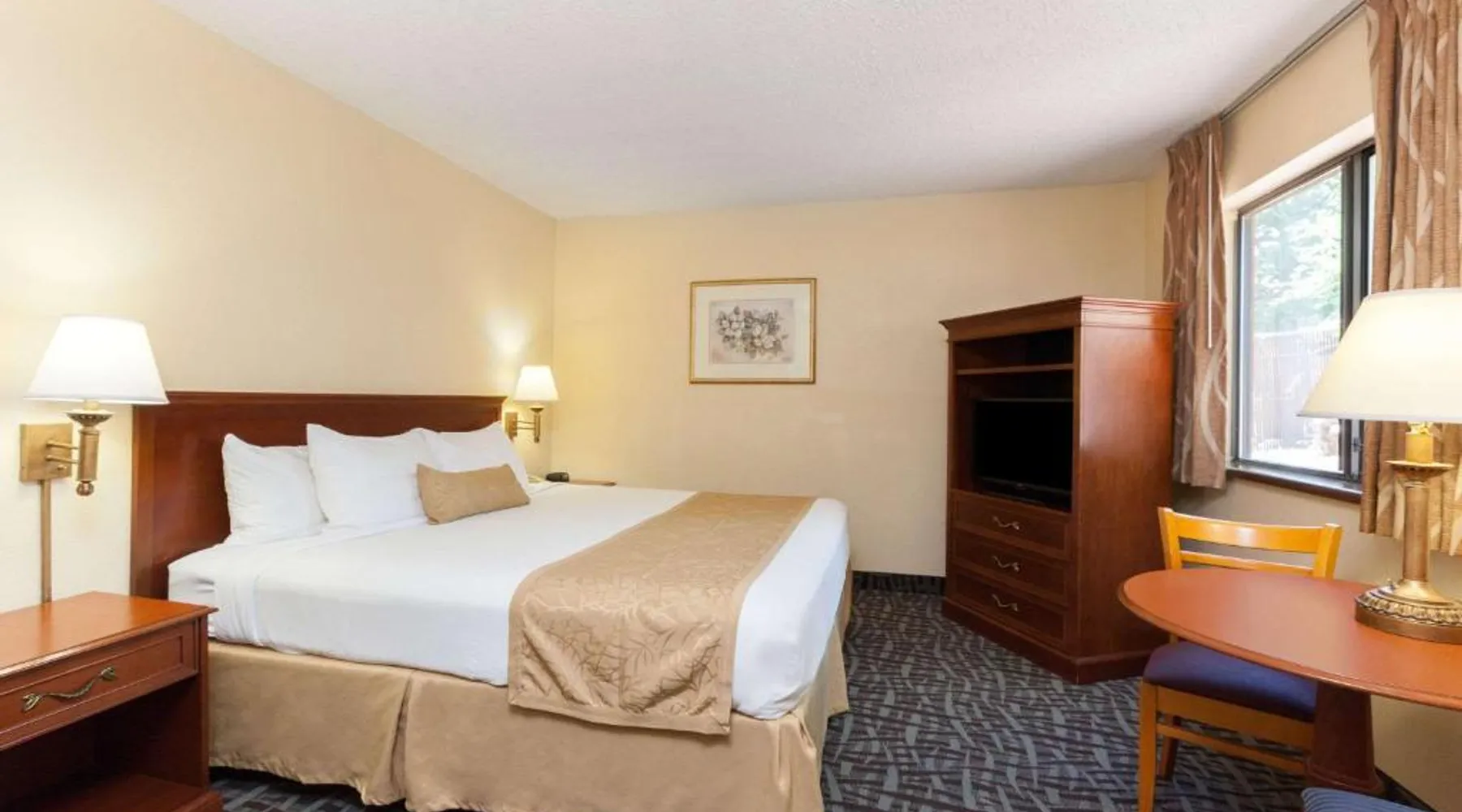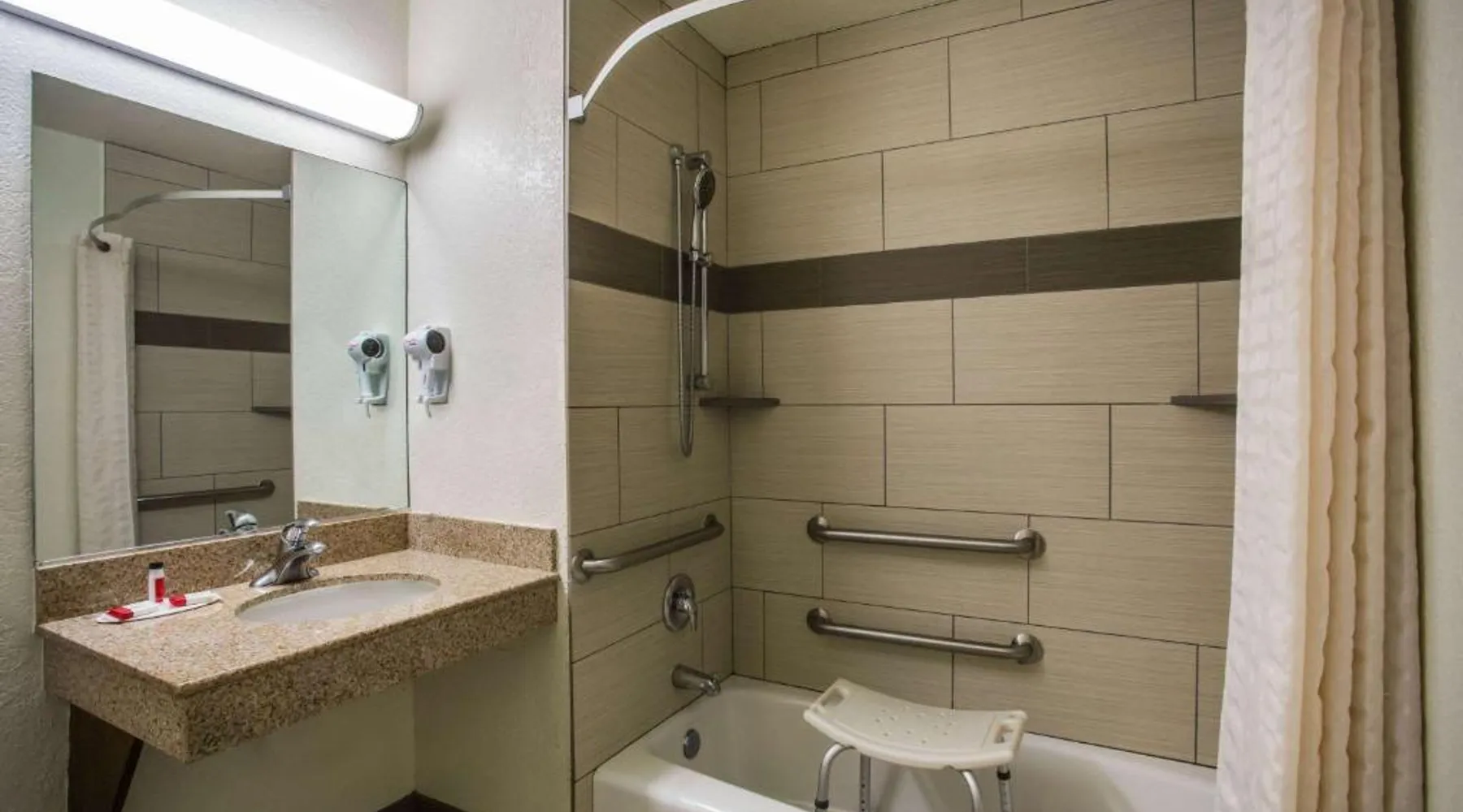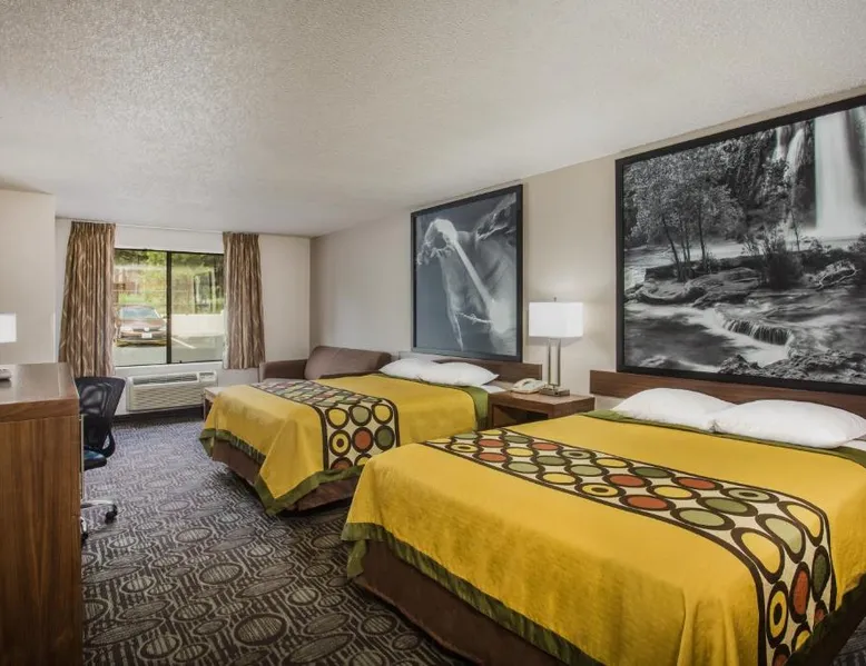 Located just off I-40 and 1 mile from Flagstaff Mall, Super 8 by Wyndham Flagstaff offers mountain views. Free Wi-Fi is available in all areas. The spacious rooms of the Super 8 by Wyndham Flagstaff all feature a coffee maker and cable TV with free HBO. A work desk and ironing facilities are included. Coin-operated laundry facilities are open to all guests. The front desk is open at all times to help with any needs. Downtown Flagstaff is 4 miles from the Super 8 by Wyndham Flagstaff. The Walnut Canyon National Monument is less than 8 miles away. Free WiFi, a cable TV and an private bathroom area featured in this room.