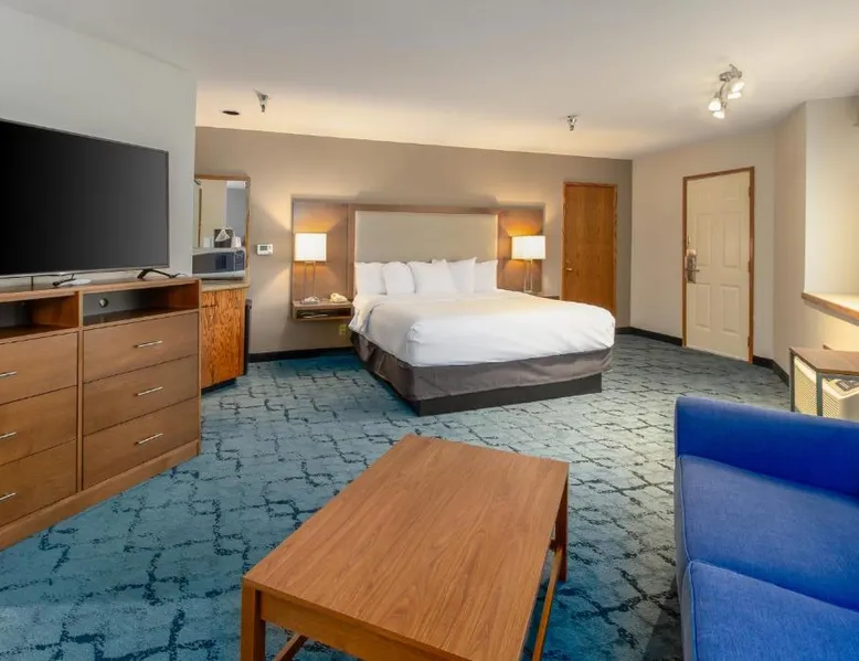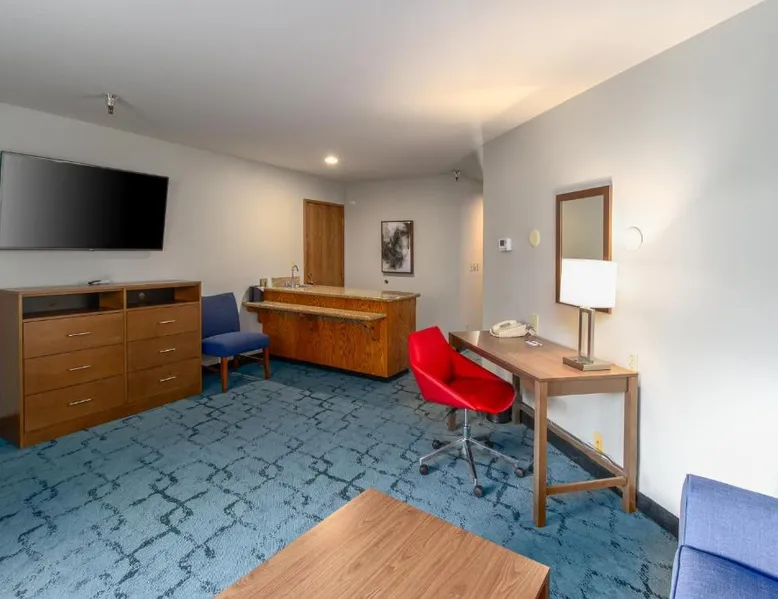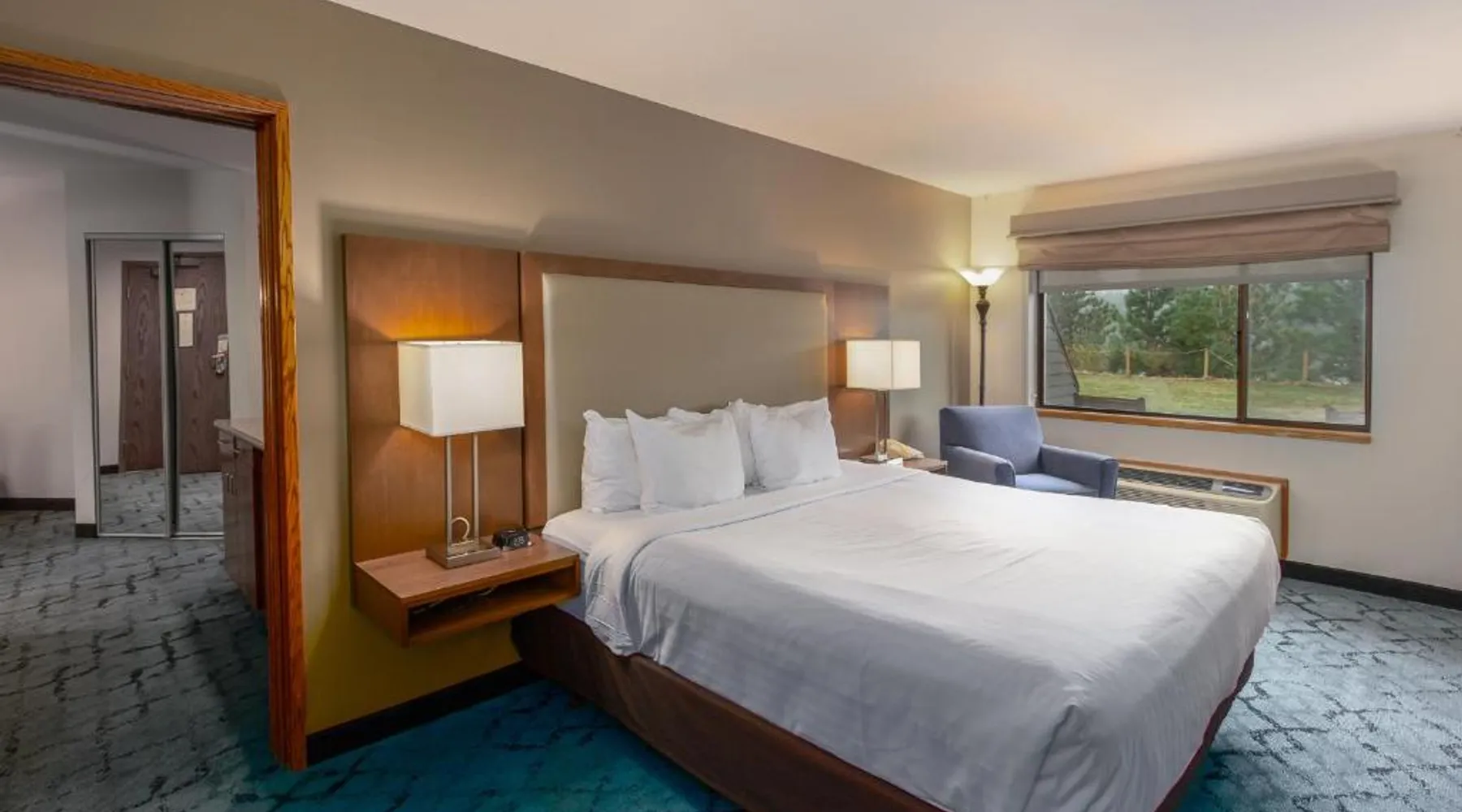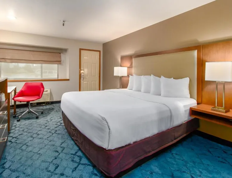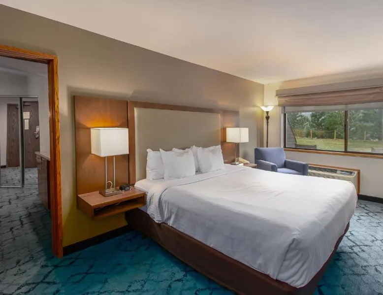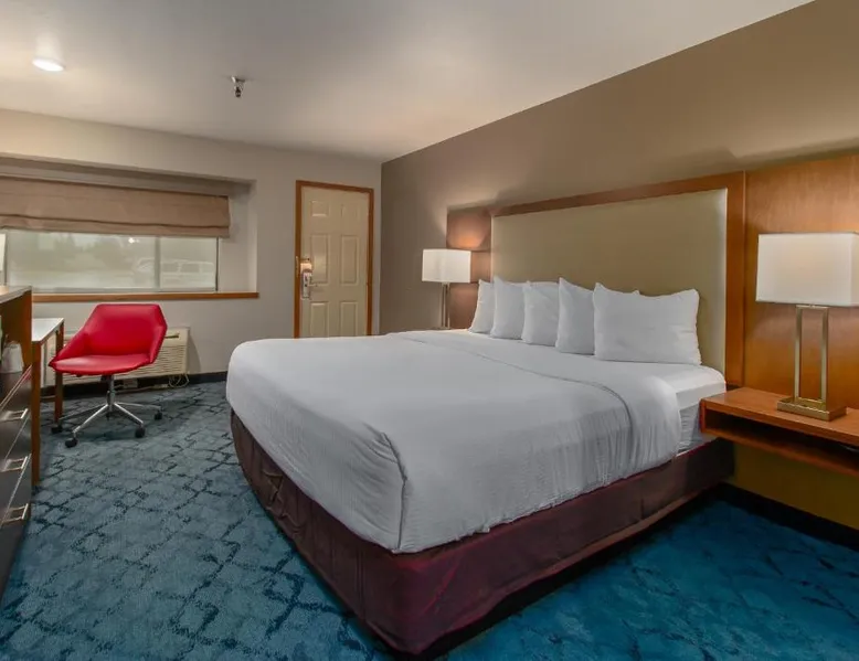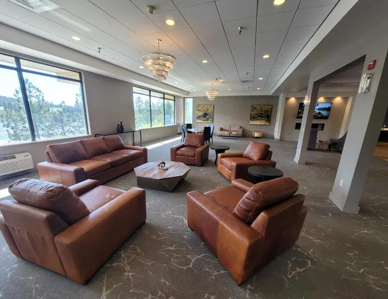 Located on the Upper Spokane River, this hotel is 15 minutes’ drive from Coeur d’Alene. Guest rooms feature cable TV and guests can enjoy an on site restaurant and lounge. Free WiFi is available in all rooms at the Red Lion Templin’s Hotel on the River. A microwave and small fridge are also offered. Free toiletries and a hair dryer are provided in the private bathroom. An indoor pool is available year round and fitness center is available for guest use. A business center is also provided for added convenience. A marina and private beach area is on site and the Red Lion River Queen Riverboat Cruises are also located on the property. The Dam Restaurant and Bar: Each morning during your stay with us, you can wake up to a full-service breakfast to get energized for your day. A favorite among visitors and Post Falls locals alike, The Dam Restaurant and Bar offers classic American favorites and contemporary regional cuisine. You'll enjoy seasonal outdoor dining on our patio or the intimacy of a table positioned on a perch to enjoy our panoramic views of our Marina and the Spokane River. Our Dam Restaurant and Bar offers fabulous cocktails, fine wines and a wide variety of beer options in an ideal atmosphere featuring large TV's, a lounge and of course our extraordinary view. Silverwood is 30 minutes’ drive from the Templin Red Lion on the River. The Washington/Idaho border is 10 minutes’ drive away. Spokane is 30 minutes’ drive from the property. The pool with a view is the standout feature of this suite. Boasting a private entrance, this air-conditioned suite features 1 living room, 1 separate bedroom and 1 bathroom with a bath and a hairdryer. The suite has carpeted floors, a seating area with a flat-screen TV with cable channels, a wardrobe, tumble dryer, as well as heating. The unit has 1 bed.