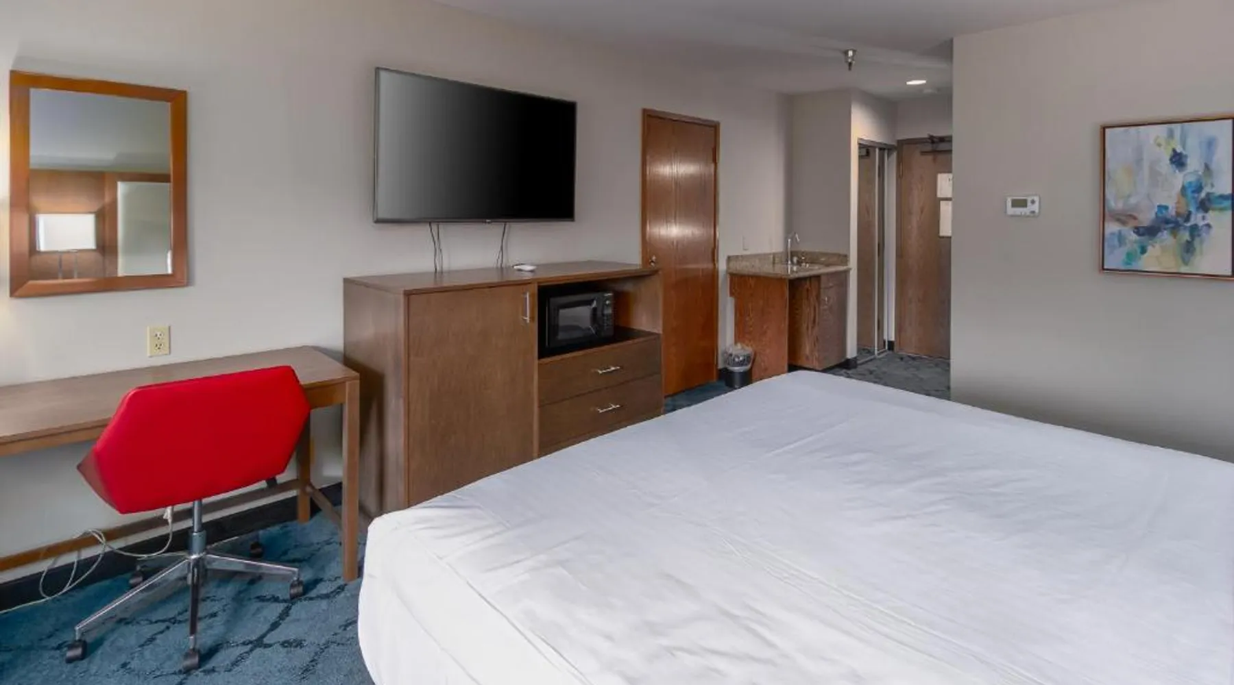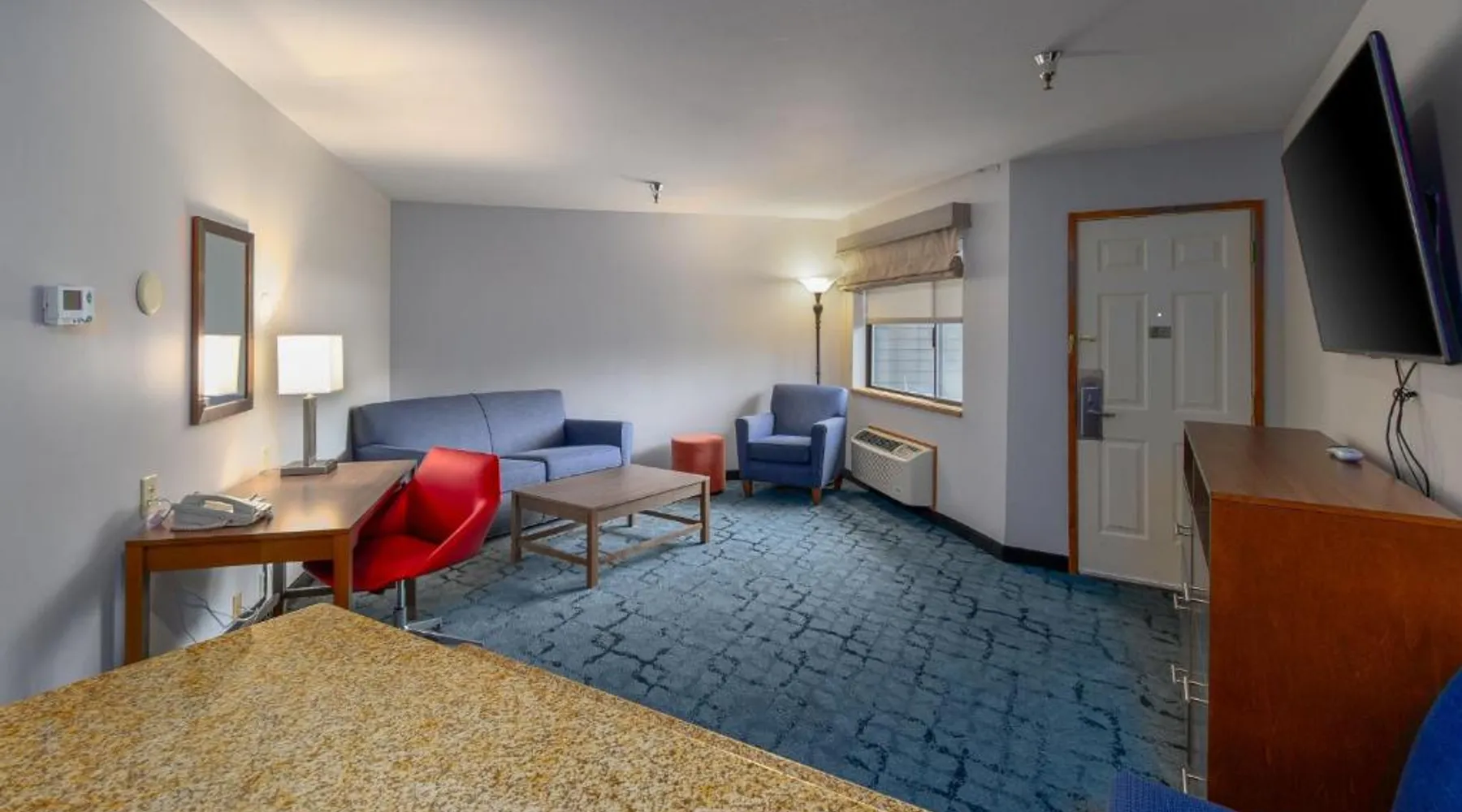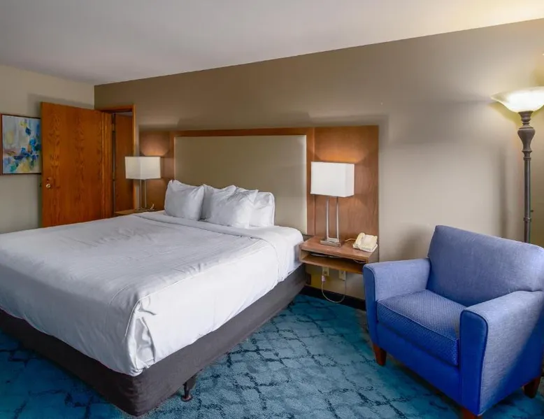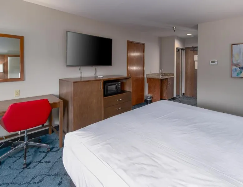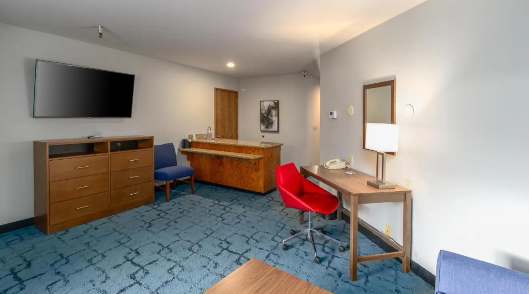 Located on the Upper Spokane River, this hotel is 15 minutes’ drive from Coeur d’Alene. Guest rooms feature cable TV and guests can enjoy an on site restaurant and lounge. Free WiFi is available in all rooms at the Red Lion Templin’s Hotel on the River. A microwave and small fridge are also offered. Free toiletries and a hair dryer are provided in the private bathroom. An indoor pool is available year round and fitness center is available for guest use. A business center is also provided for added convenience. A marina and private beach area is on site and the Red Lion River Queen Riverboat Cruises are also located on the property. The Dam Restaurant and Bar: Each morning during your stay with us, you can wake up to a full-service breakfast to get energized for your day. A favorite among visitors and Post Falls locals alike, The Dam Restaurant and Bar offers classic American favorites and contemporary regional cuisine. You'll enjoy seasonal outdoor dining on our patio or the intimacy of a table positioned on a perch to enjoy our panoramic views of our Marina and the Spokane River. Our Dam Restaurant and Bar offers fabulous cocktails, fine wines and a wide variety of beer options in an ideal atmosphere featuring large TV's, a lounge and of course our extraordinary view. Silverwood is 30 minutes’ drive from the Templin Red Lion on the River. The Washington/Idaho border is 10 minutes’ drive away. Spokane is 30 minutes’ drive from the property. The pool with a view is the standout feature of this suite. Boasting a private entrance, this air-conditioned suite features 1 living room, 1 separate bedroom and 1 bathroom with a bath and a hairdryer. The suite has carpeted floors, a seating area with a flat-screen TV with cable channels, a wardrobe, tumble dryer, as well as heating. The unit has 1 bed.