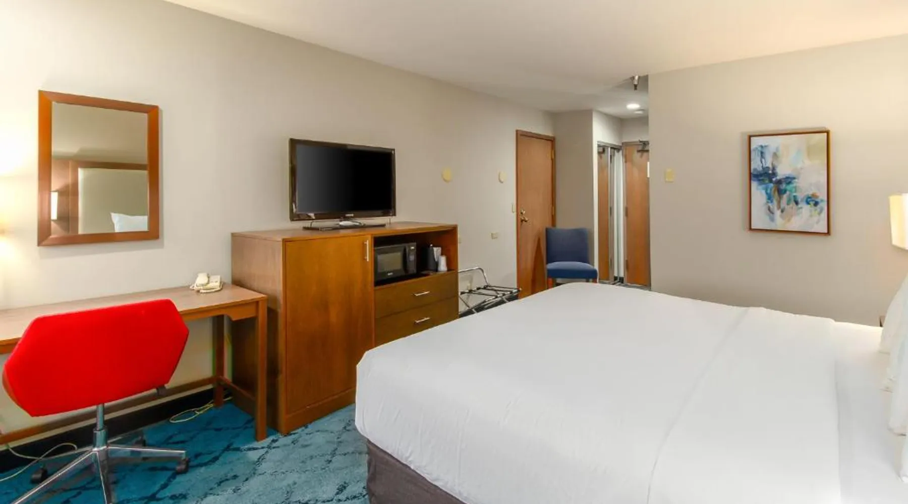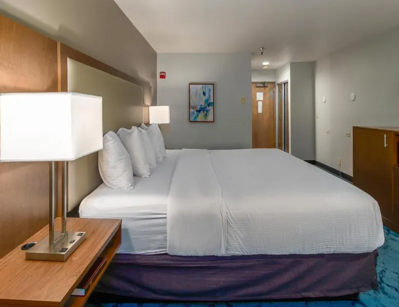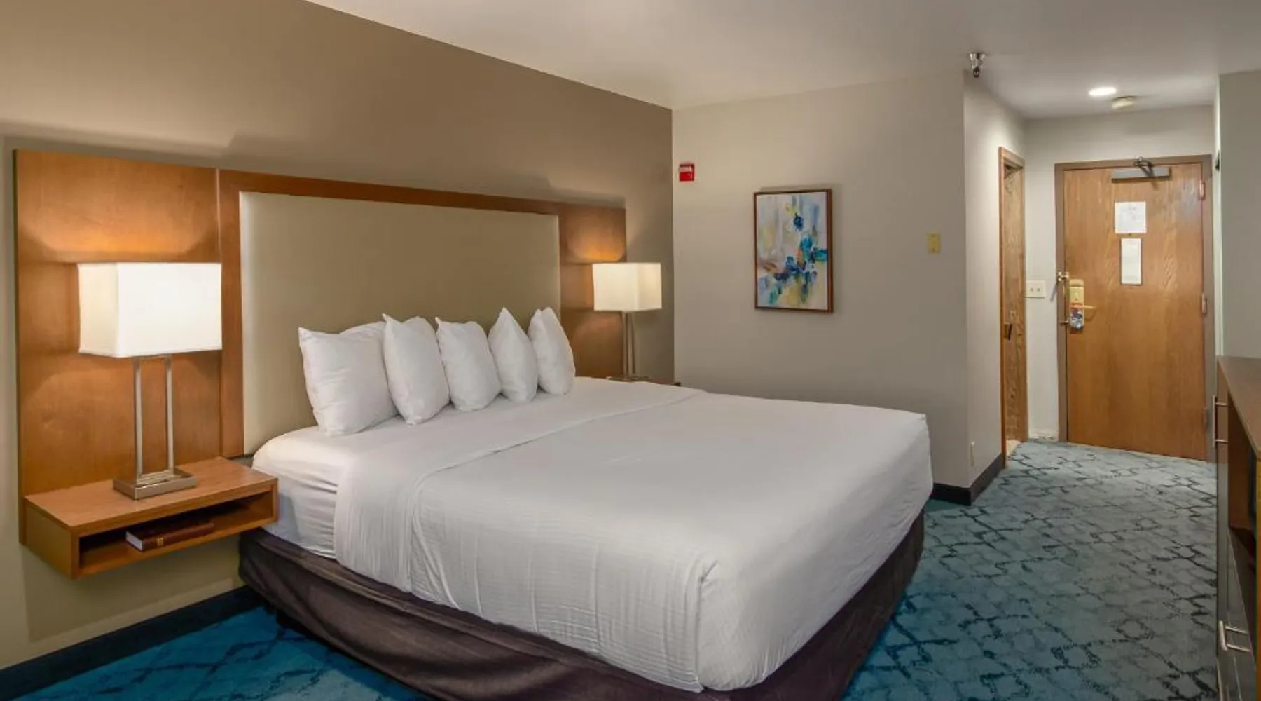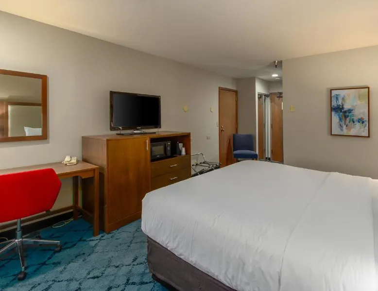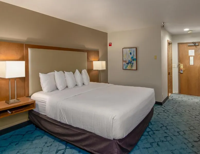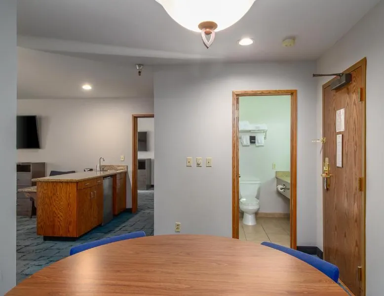Located on the Upper Spokane River, this hotel is 15 minutes’ drive from Coeur d’Alene. Guest rooms feature cable TV and guests can enjoy an on site restaurant and lounge. Free WiFi is available in all rooms at the Red Lion Templin’s Hotel on the River. A microwave and small fridge are also offered. Free toiletries and a hair dryer are provided in the private bathroom. An indoor pool is available year round and fitness center is available for guest use. A business center is also provided for added convenience. A marina and private beach area is on site and the Red Lion River Queen Riverboat Cruises are also located on the property. The Dam Restaurant and Bar: Each morning during your stay with us, you can wake up to a full-service breakfast to get energized for your day. A favorite among visitors and Post Falls locals alike, The Dam Restaurant and Bar offers classic American favorites and contemporary regional cuisine. You'll enjoy seasonal outdoor dining on our patio or the intimacy of a table positioned on a perch to enjoy our panoramic views of our Marina and the Spokane River. Our Dam Restaurant and Bar offers fabulous cocktails, fine wines and a wide variety of beer options in an ideal atmosphere featuring large TV's, a lounge and of course our extraordinary view. Silverwood is 30 minutes’ drive from the Templin Red Lion on the River. The Washington/Idaho border is 10 minutes’ drive away. Spokane is 30 minutes’ drive from the property. The pool with a view is the standout feature of this suite. Boasting a private entrance, this air-conditioned suite features 1 living room, 1 separate bedroom and 1 bathroom with a bath and a hairdryer. The suite has carpeted floors, a seating area with a flat-screen TV with cable channels, a wardrobe, tumble dryer, as well as heating. The unit has 1 bed.