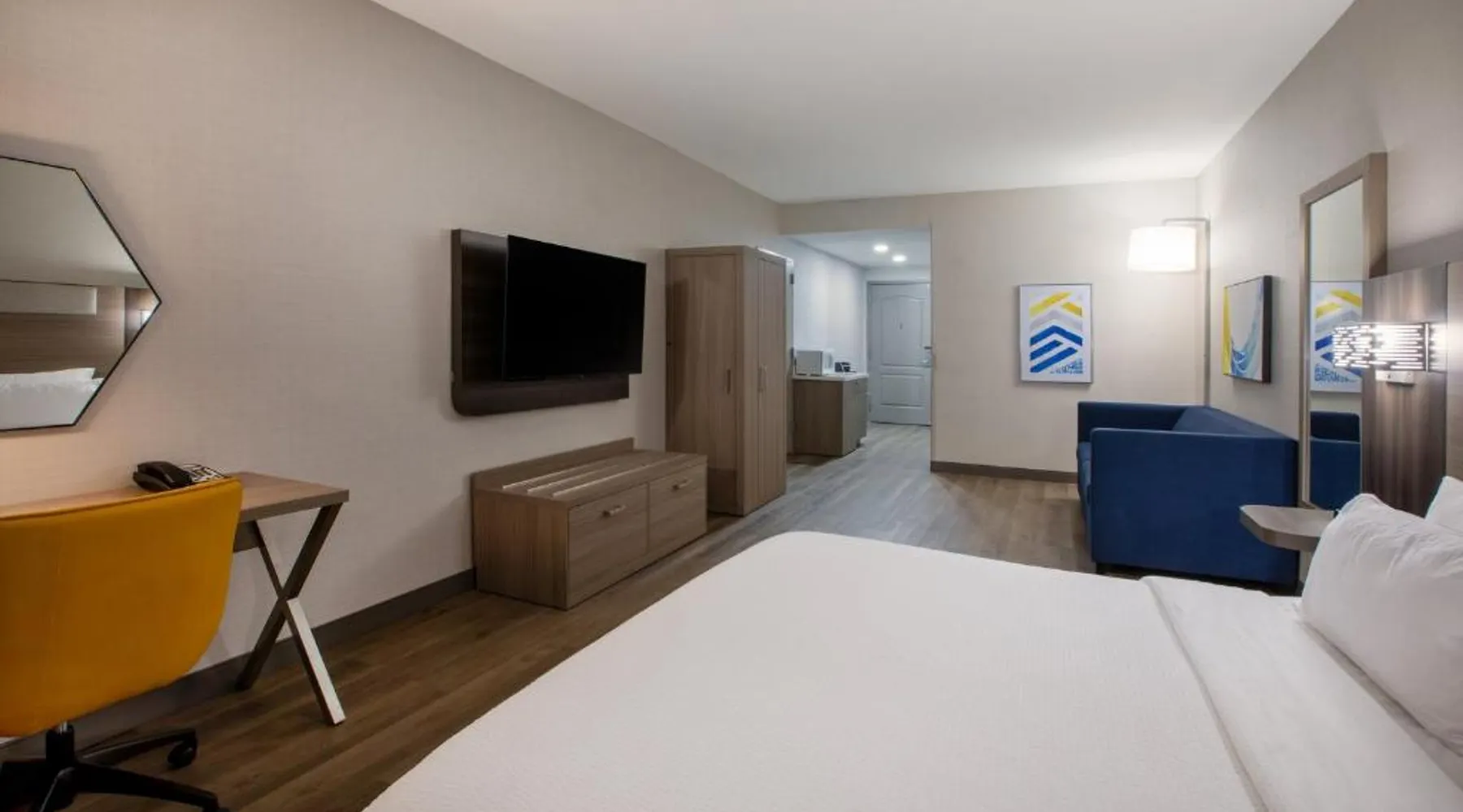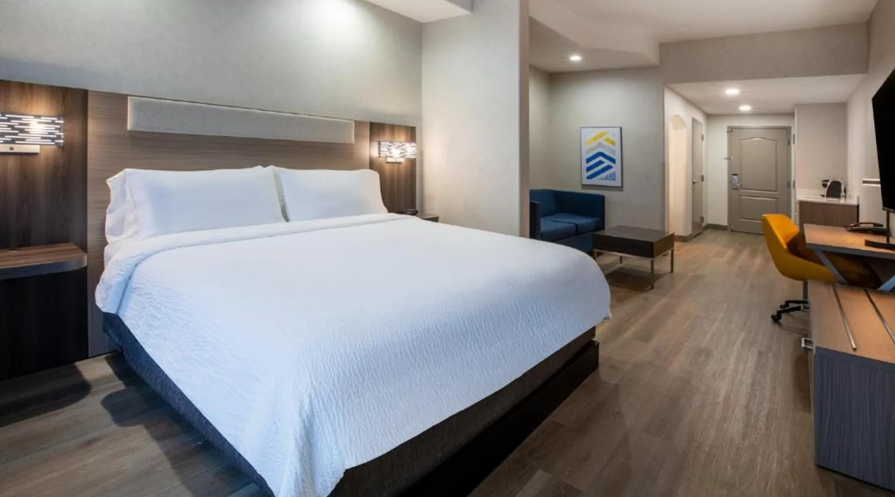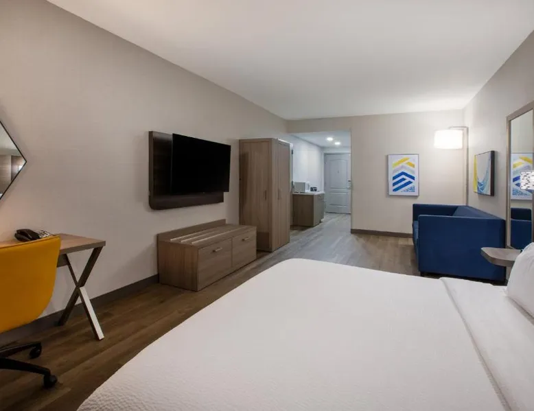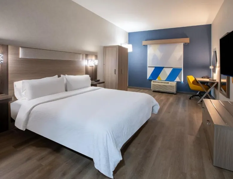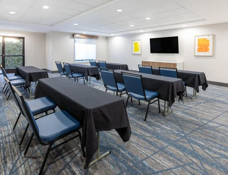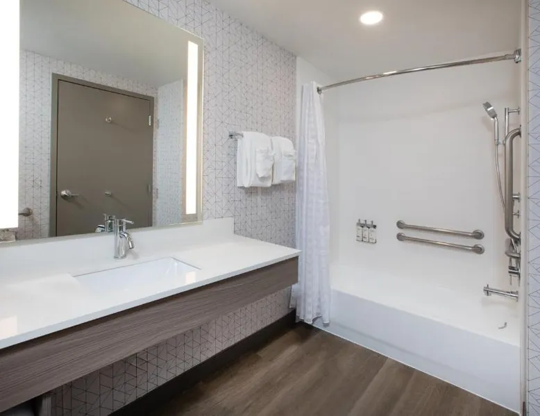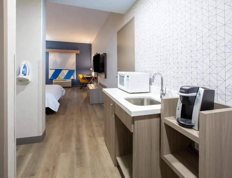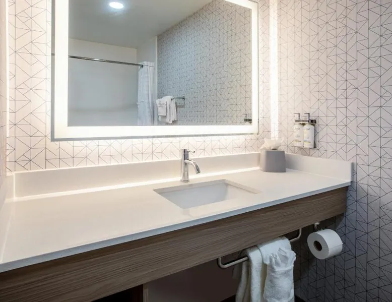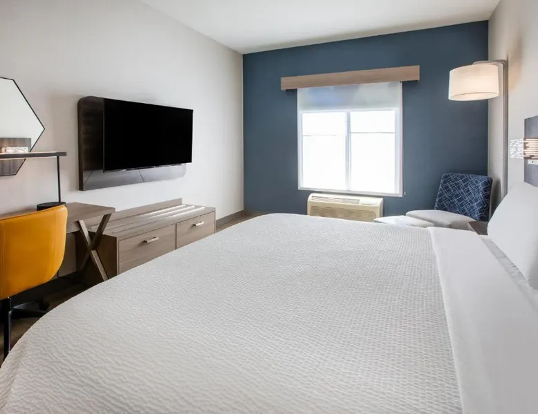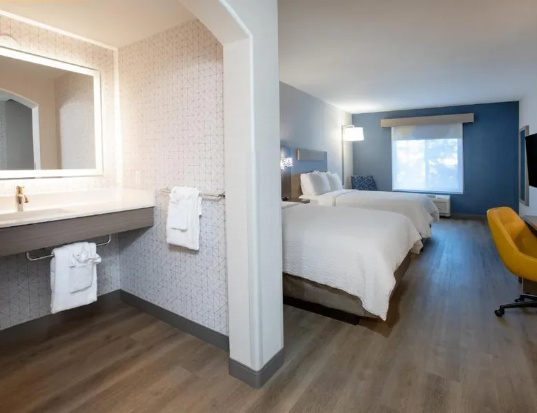 Comfortable Accommodations: Holiday Inn Express & Suites Lathrop by IHG in Lathrop offers family rooms with air-conditioning, private bathrooms, and modern amenities including free WiFi, flat-screen TVs, and work desks. Wellness and Leisure: Guests can enjoy spa facilities, a wellness center, fitness center, sun terrace, and indoor swimming pool. Additional amenities include a hot tub, sauna, and barbecue facilities. Dining and Services: A buffet breakfast is provided each morning. The hotel features a lounge, coffee shop, and outdoor seating area. Private check-in and check-out, a 24-hour front desk, and free on-site parking enhance the stay. Location and Attractions: Located 6.8 mi from Stockton Metropolitan Airport, the hotel is 12 mi from University of the Pacific and 28 mi from Newport Casino. Highly rated for staff, room cleanliness, and breakfast. Offering free Wi-Fi, this air-conditioned disability access room includes a flat-screen cable TV, a work desk, a seating area, a microwave, a refrigerator, a coffee maker and ironing facilities.